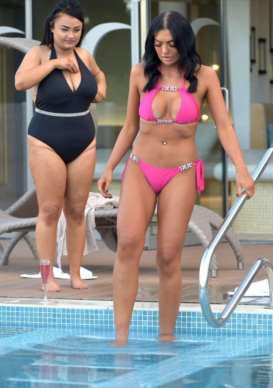 Abbie Holborn y Faith Mullen de Geordie Shore pasaron la tarde poniéndose al día en un retiro de Spa, 30/10/2018. El par disfrutó de una tarde en el Rockliffe Hall Spa en Darlington mientras ponían al día los chismes de Geordie Shore y disfrutaban de una copa de vino mientras se relajaban en la piscina al aire libre.