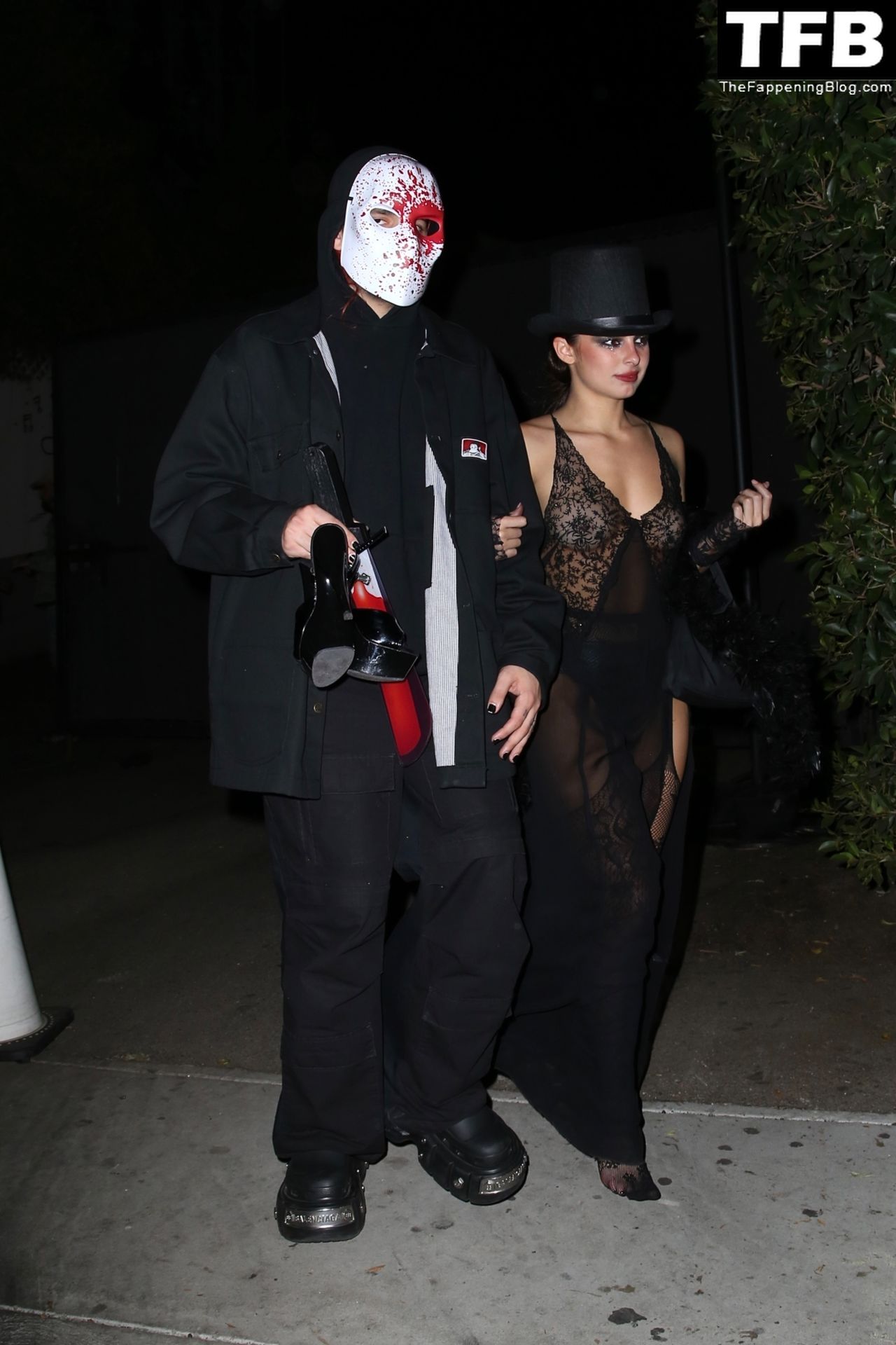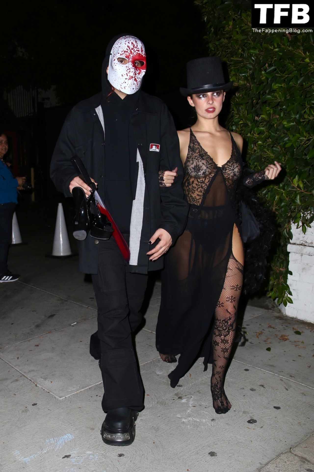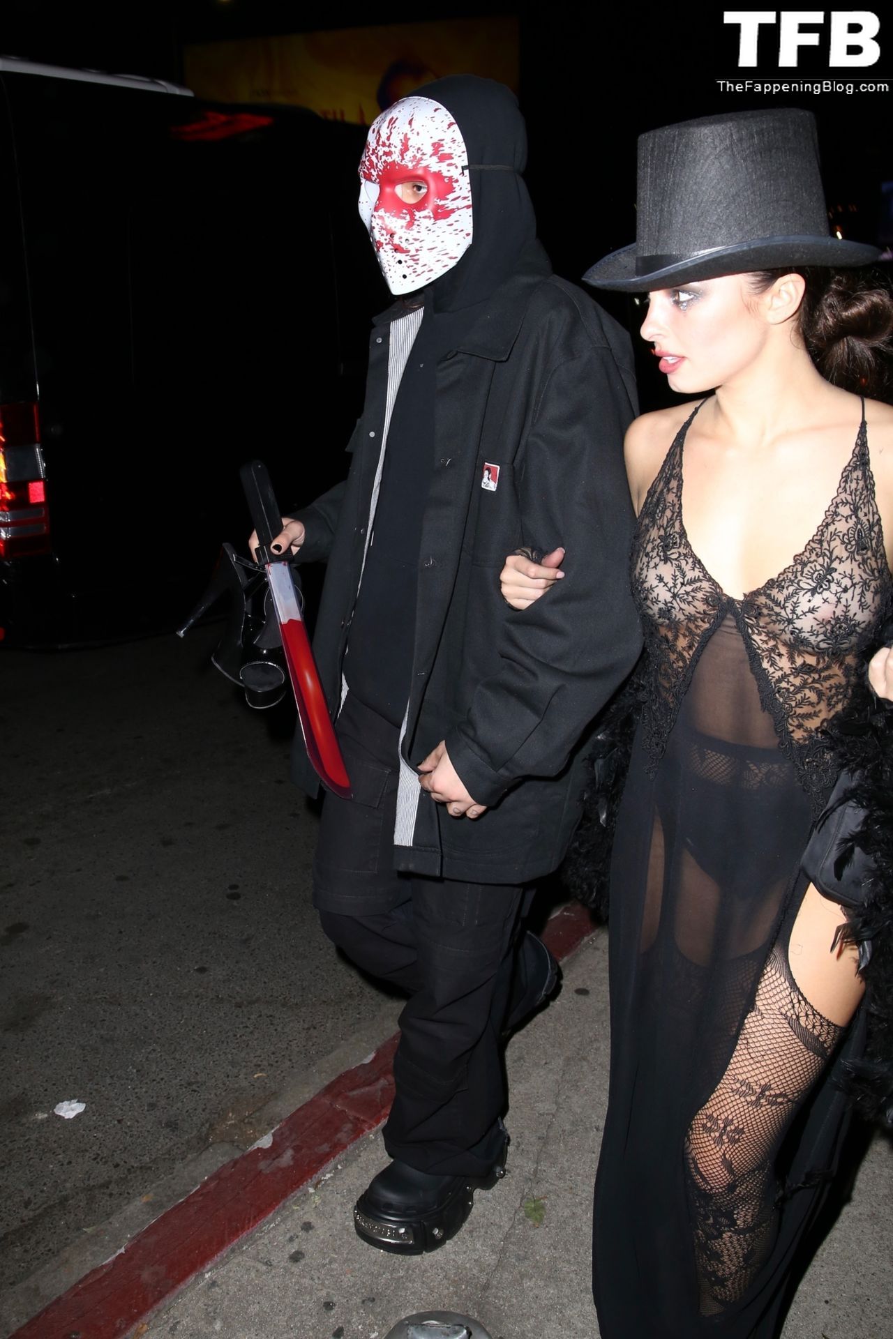 Addison Rae luce un conjunto negro de encaje mientras asiste y se va de una fiesta en el Chateau Marmont en West Hollywood, 29/10/2022.