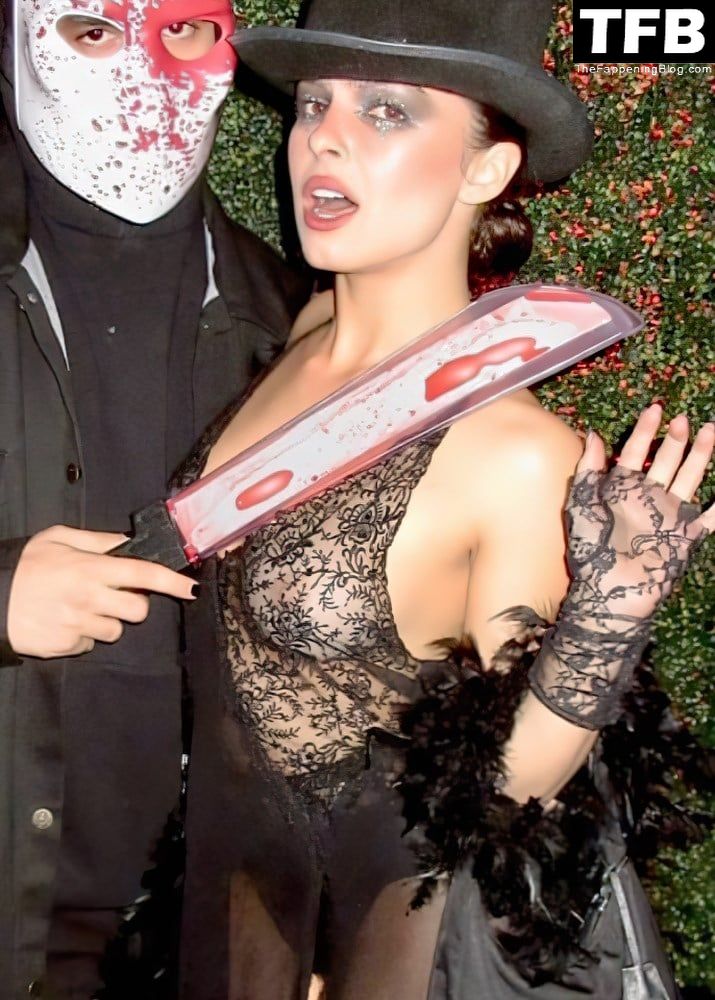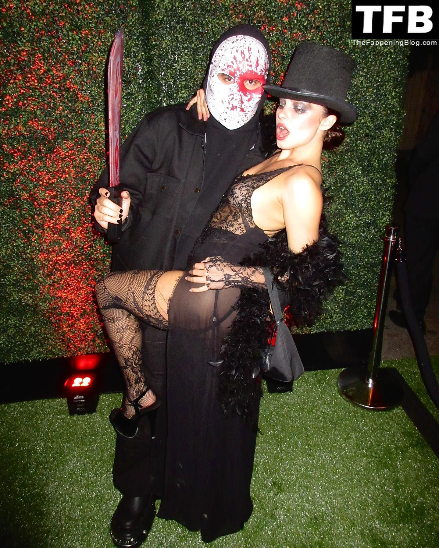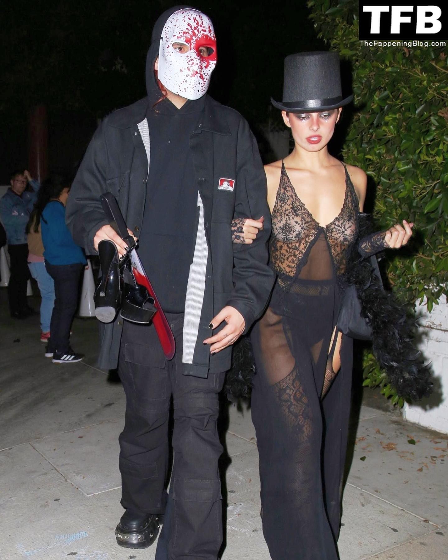 Addison Rae luce un conjunto negro de encaje mientras asiste y se va de una fiesta en el Chateau Marmont en West Hollywood, 29/10/2022.
