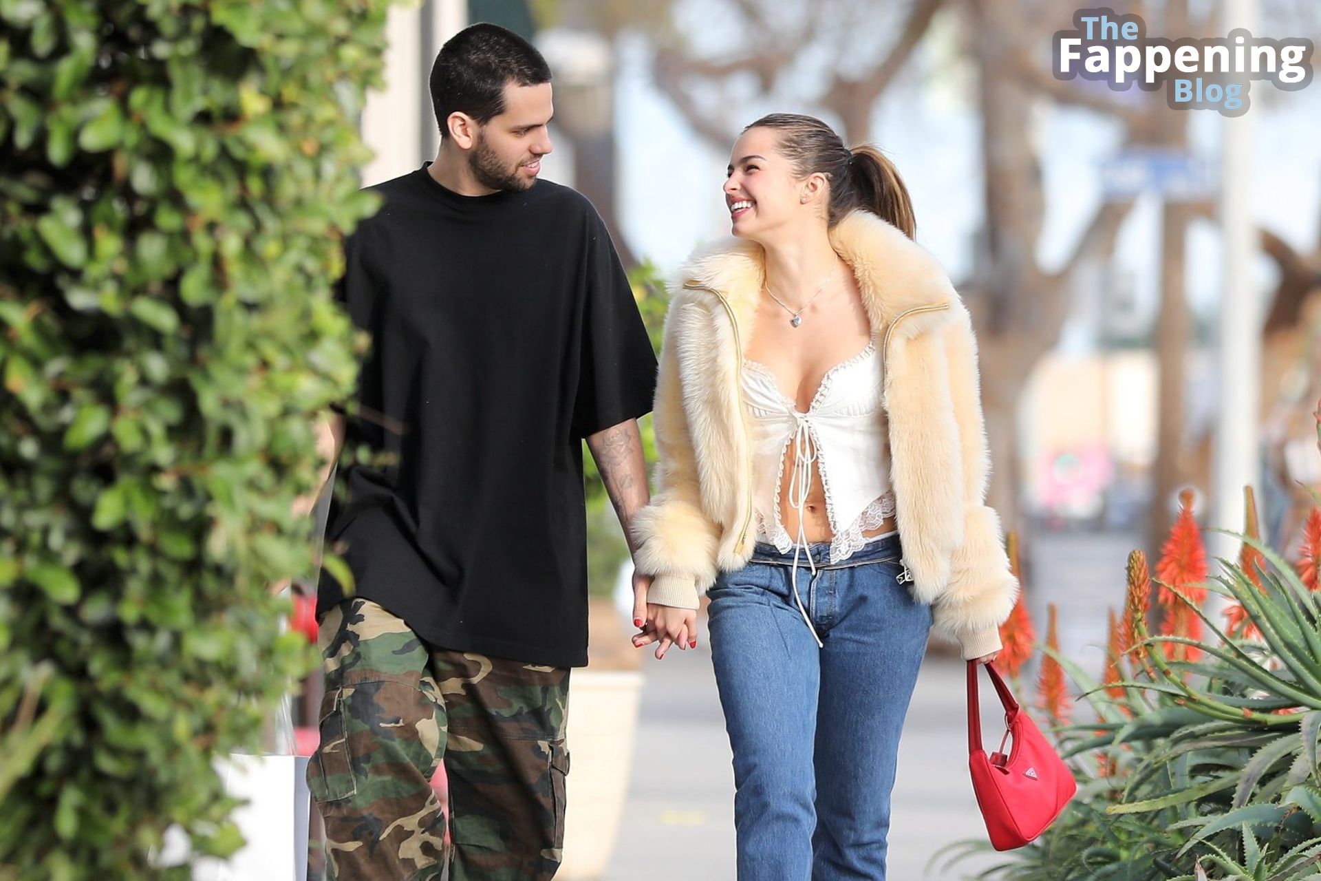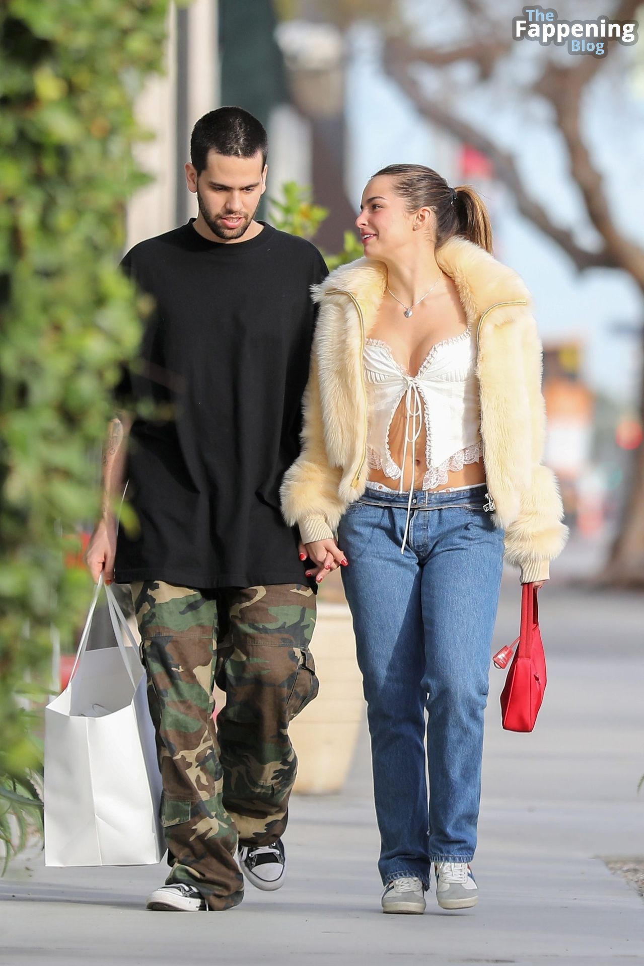 La estrella de TikTok convertida en actriz Addison Rae muestra sus sexys pechos mientras compra con su novio en Los Ángeles, 01/12/203.