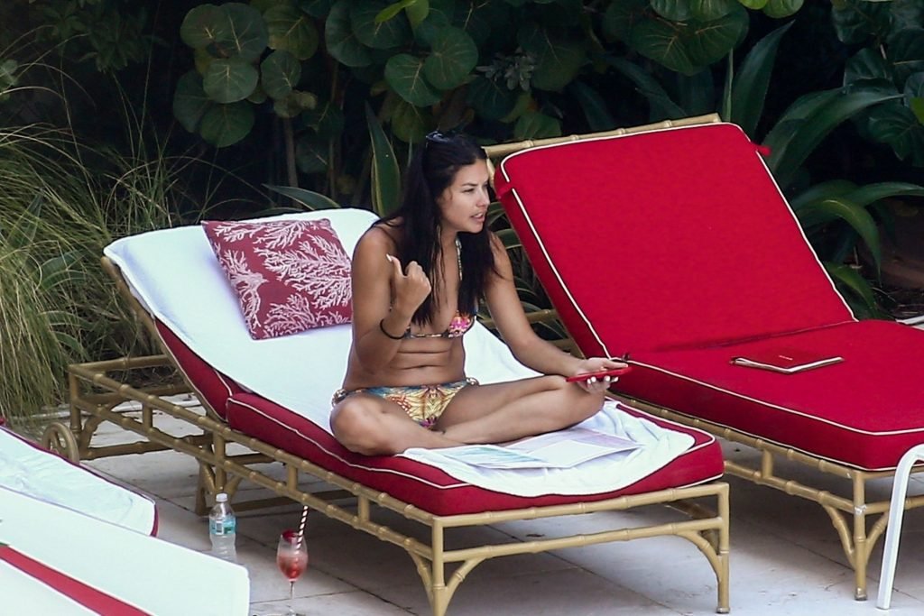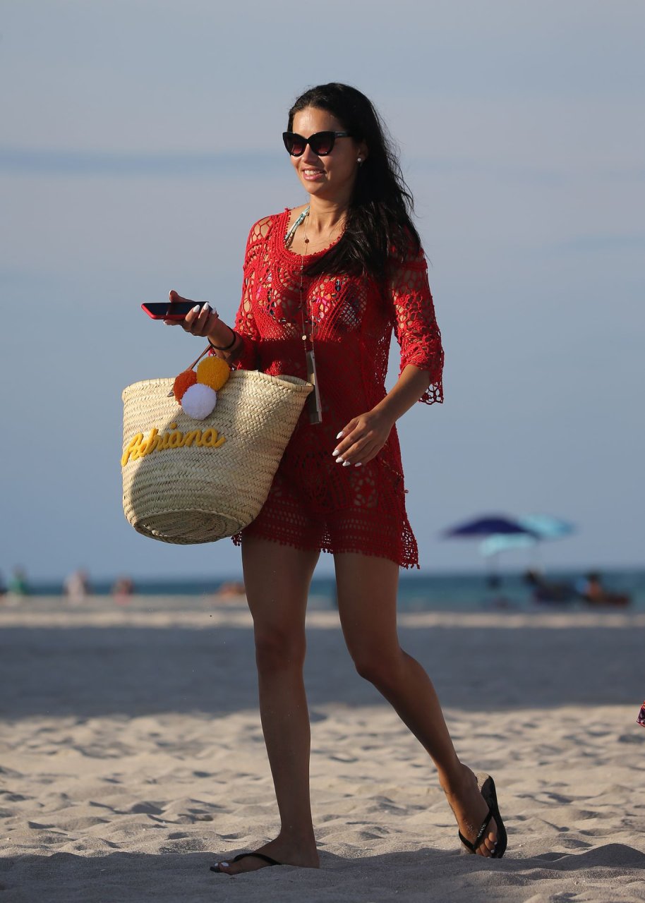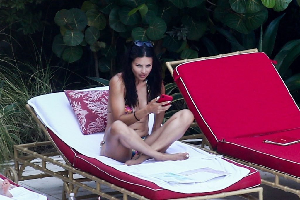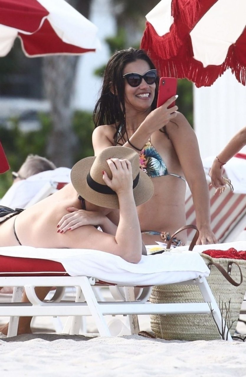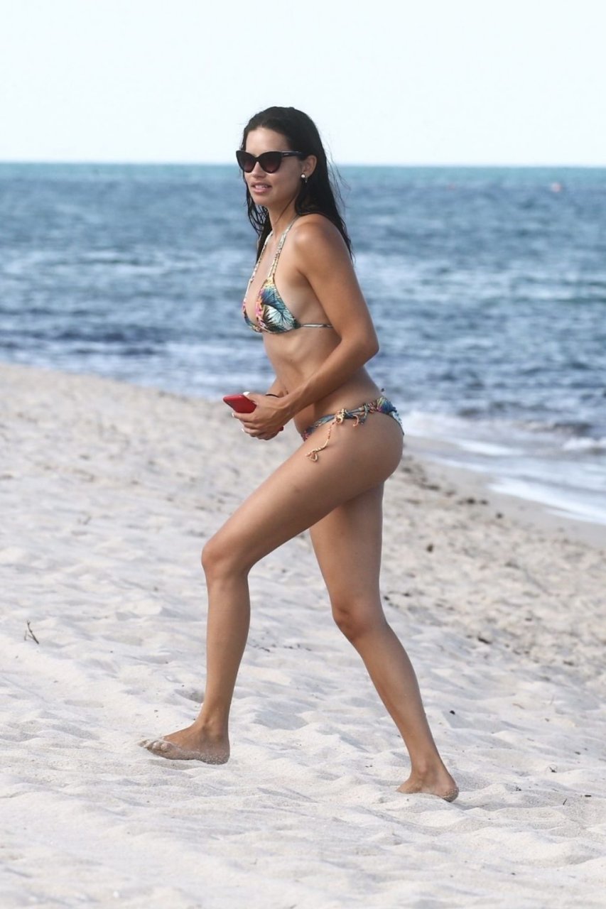 La modelo/actriz brasileña Adriana Lima está en Miami Beach disfrutando del sol con su familia, ¡13/08/2019! Adriana luce un traje de baño con estampado floral que acentúa la figura atlética de la modelo. La bomba toma algunas fotos de un adorable miembro de la familia mientras descansa junto a la playa.