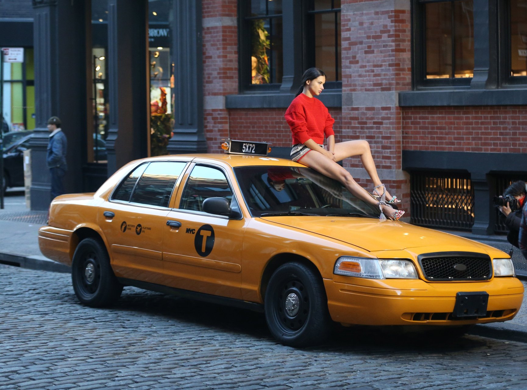 Adriana Lima posa en un taxi con pantalones cortos reveladores durante una sesión de fotos en la ciudad de Nueva York, 20/04/2018. La Parte 1 está aquí. Adriana Lima es una supermodelo brasileña de alta moda. Edad: 36.