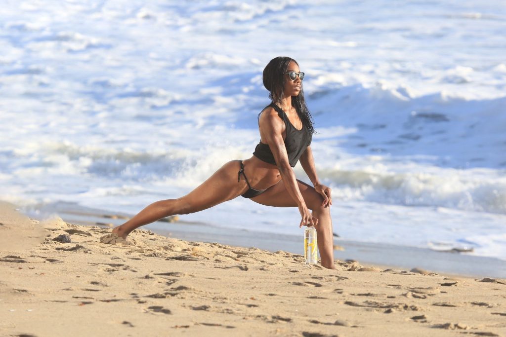Adrianne Nina se quita la parte superior en el set de una sesión de fotos en 138 Water Beach para celebrar las fiestas, un par de días antes del Día de Acción de Gracias en Malibu, 26/11/2019.