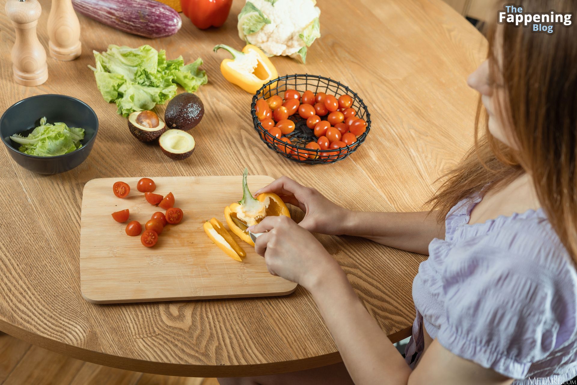 Fotos de esta adorable chica descalza, Afina Ray, desnudándose en la cocina. Pero no esperes ver la cena en la mesa; en su lugar, encontrarás a la modelo de 24 años Afina Ray tumbada allí con las piernas bien abiertas.