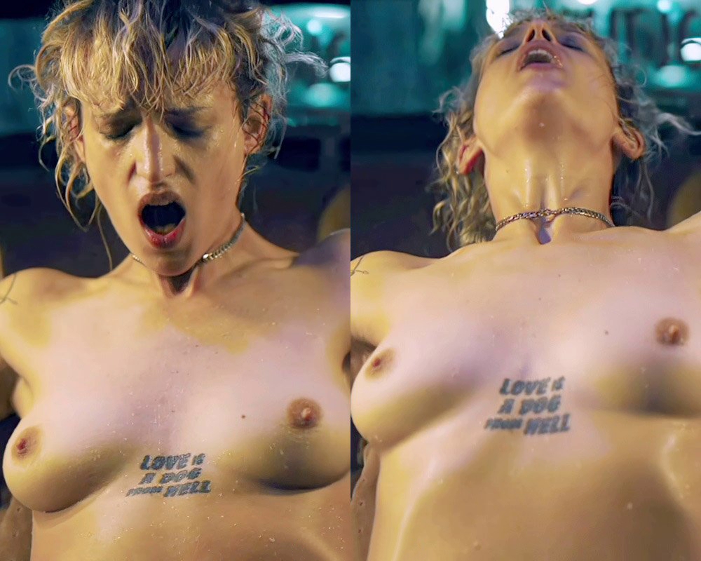 Vemos a Agathe retorciéndose de placer mientras “tiene sexo” con el coche, mostrando más pechos desnudos mientras Rousselle se recuesta en el asiento trasero con las piernas sexys abiertas y los brazos extendidos y envueltos en los cinturones de seguridad.