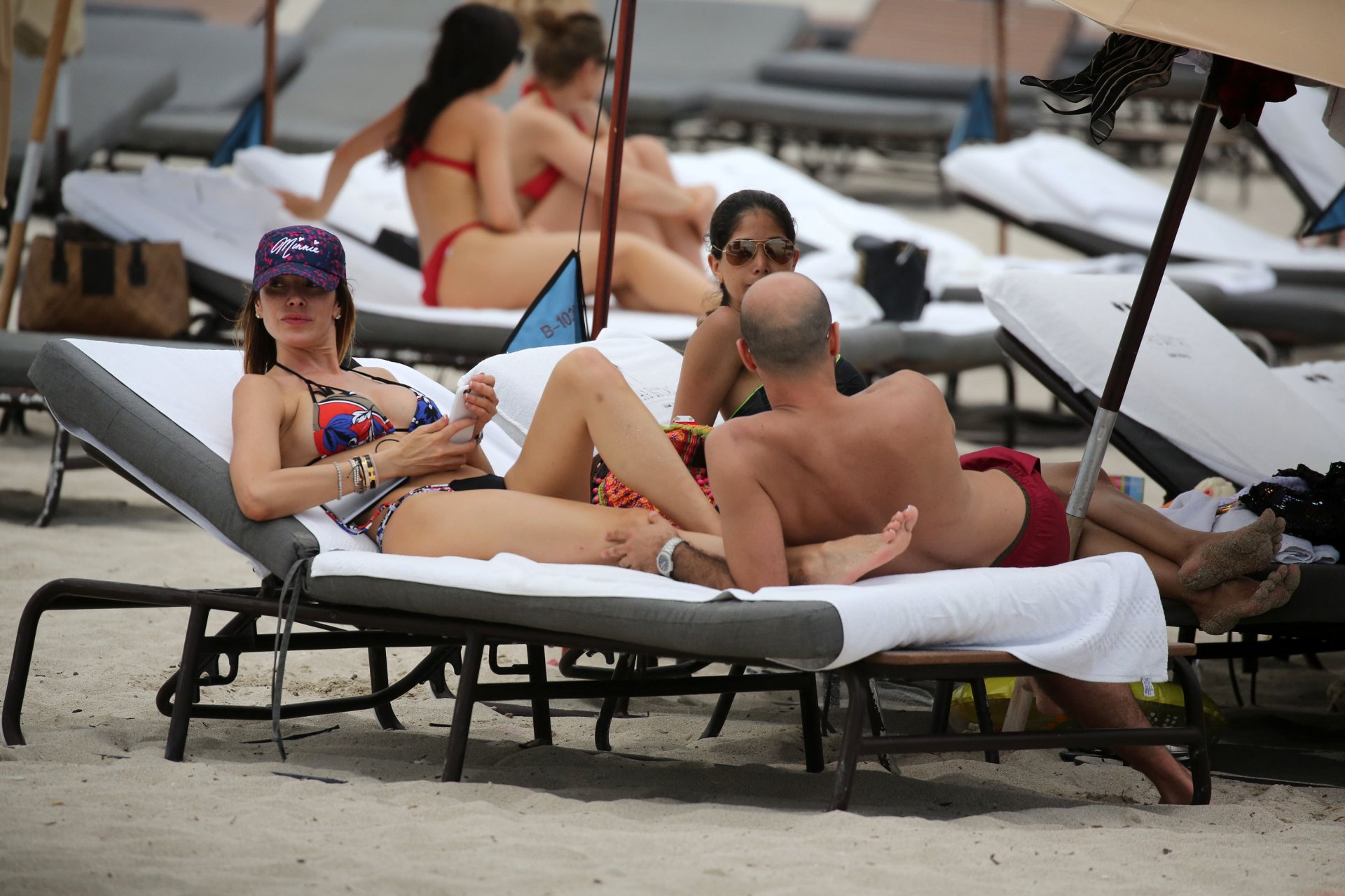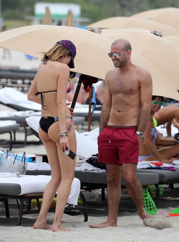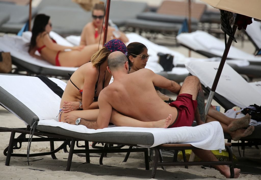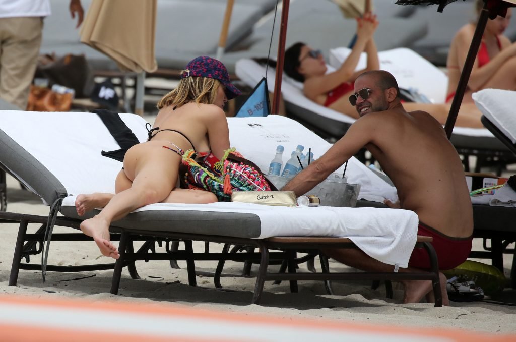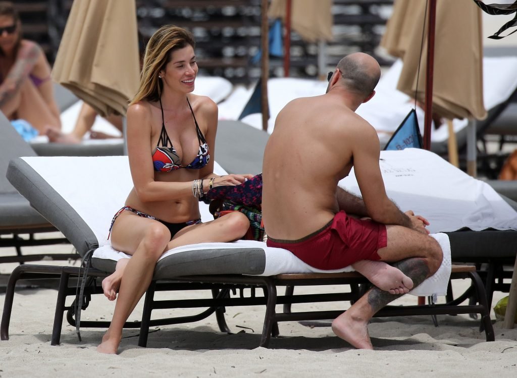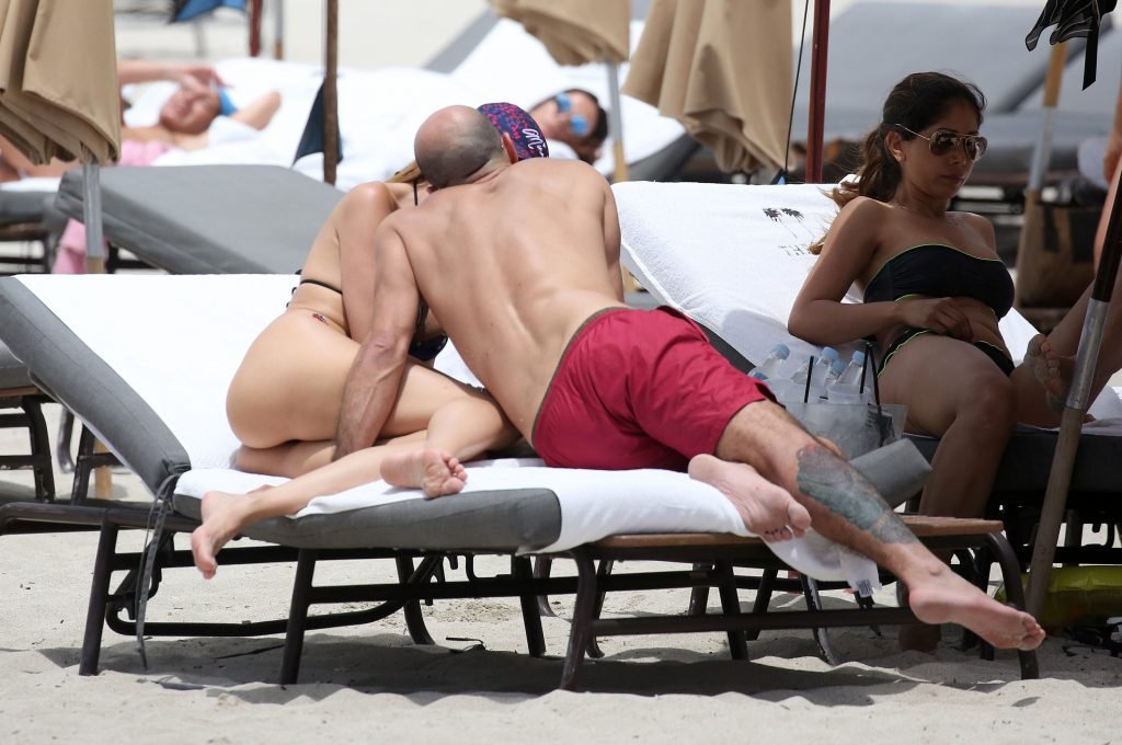 Aida Yespica, de 35 años, vestida con bikini, muestra muestras públicas de afecto con su hombre Roger Jenkins en la playa de Miami, 01/05/2018. Aida fue vista divirtiéndose y soplando burbujas mientras estaba en la playa. Tiene un trasero súper redondo y pechos grandes. Aida María Yespica es una personalidad de televisión (Grande Fratello VIP), bailarina, modelo y actriz (Natale in crociera) de Barquisimeto, Venezuela. Aida aparece regularmente en programas de televisión sobre moda, publicidad como invitada o como presentadora.