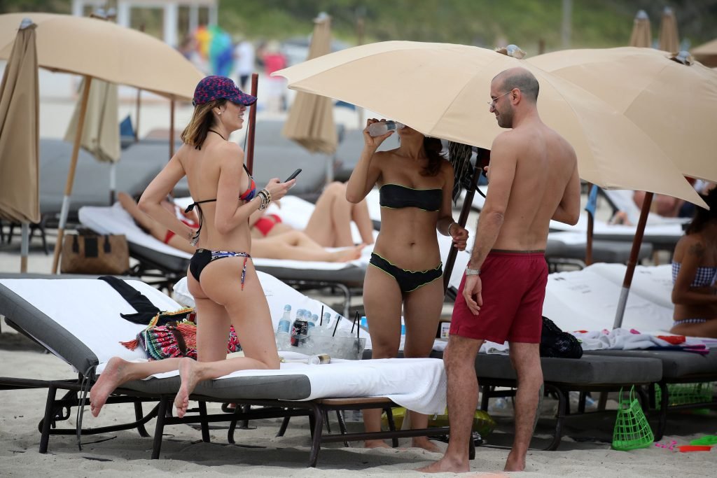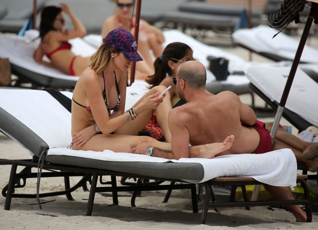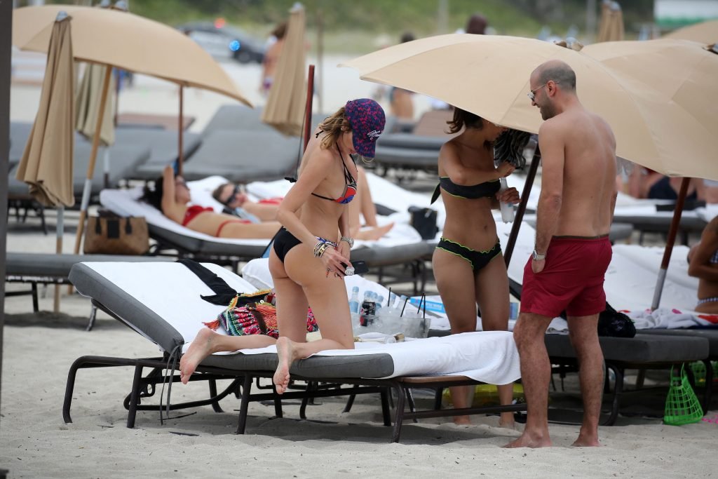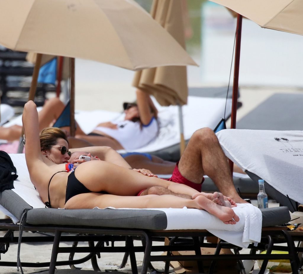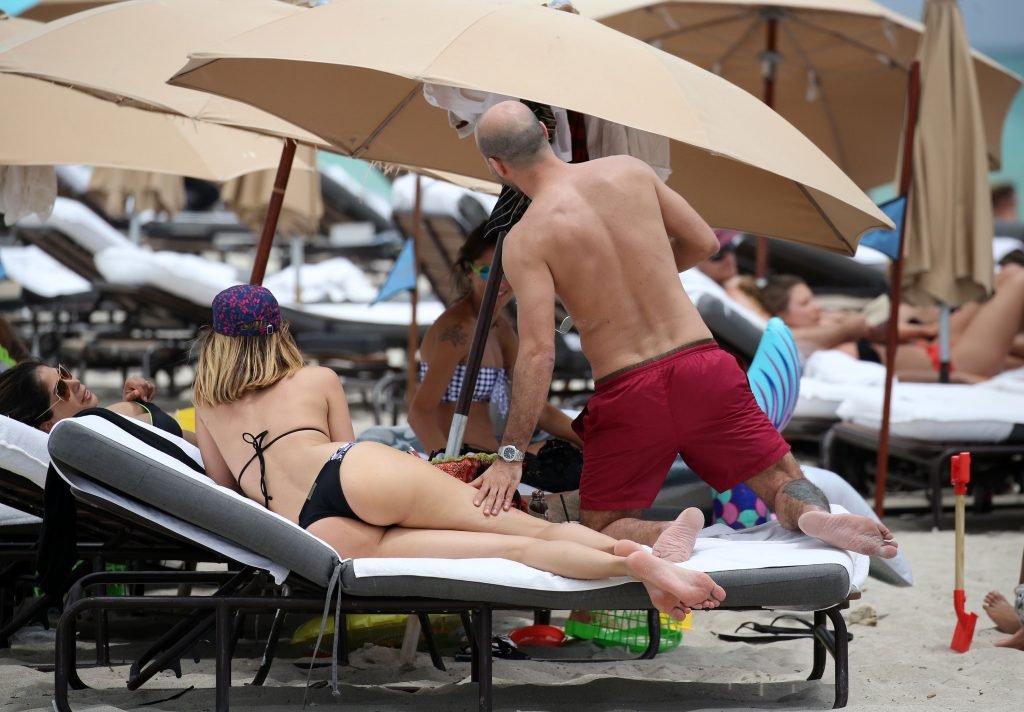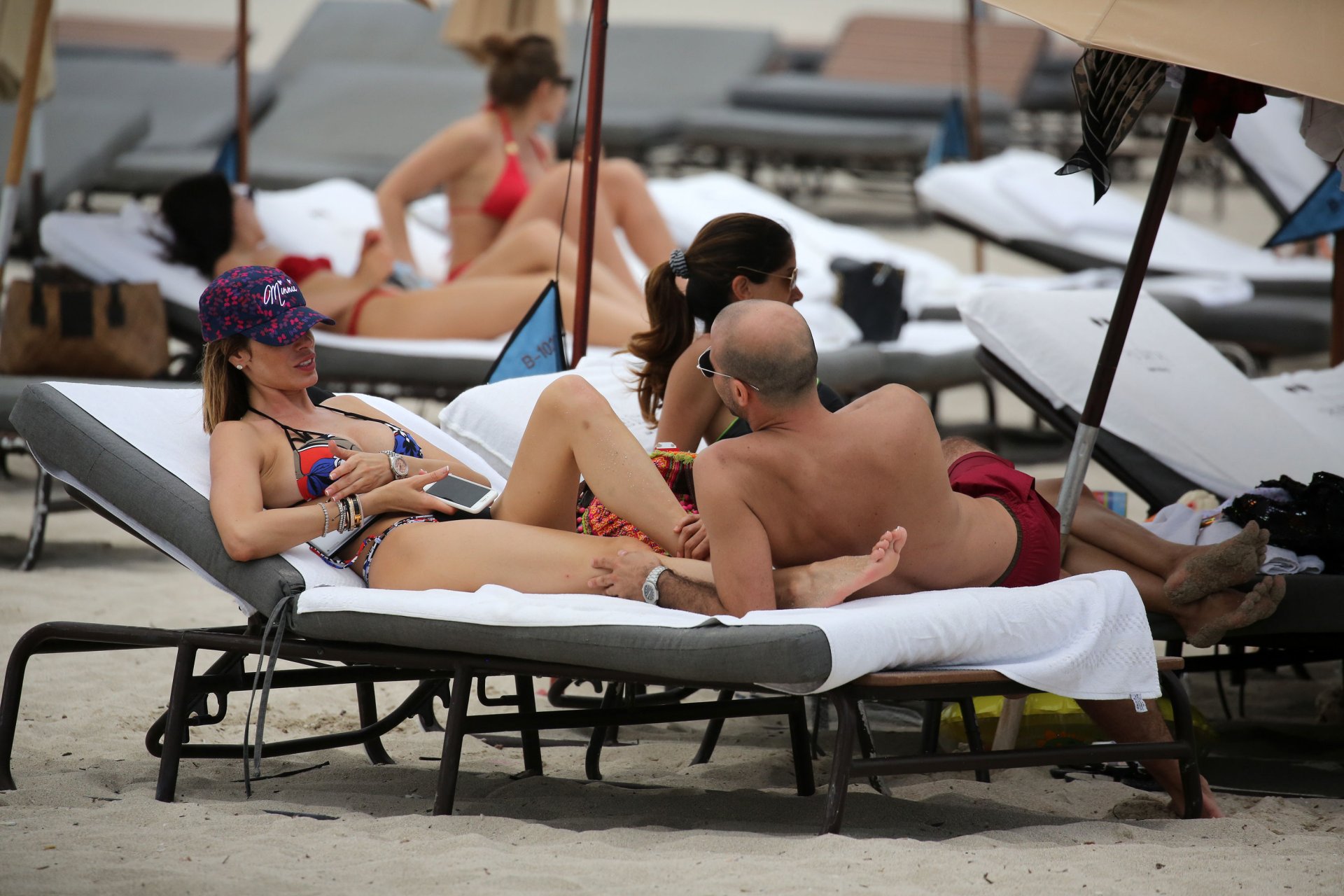 Aida Yespica, de 35 años, vestida con bikini, muestra muestras públicas de afecto con su hombre Roger Jenkins en la playa de Miami, 01/05/2018. Aida fue vista divirtiéndose y soplando burbujas mientras estaba en la playa. Tiene un trasero súper redondo y pechos grandes. Aida María Yespica es una personalidad de televisión (Grande Fratello VIP), bailarina, modelo y actriz (Natale in crociera) de Barquisimeto, Venezuela. Aida aparece regularmente en programas de televisión sobre moda, publicidad como invitada o como presentadora.