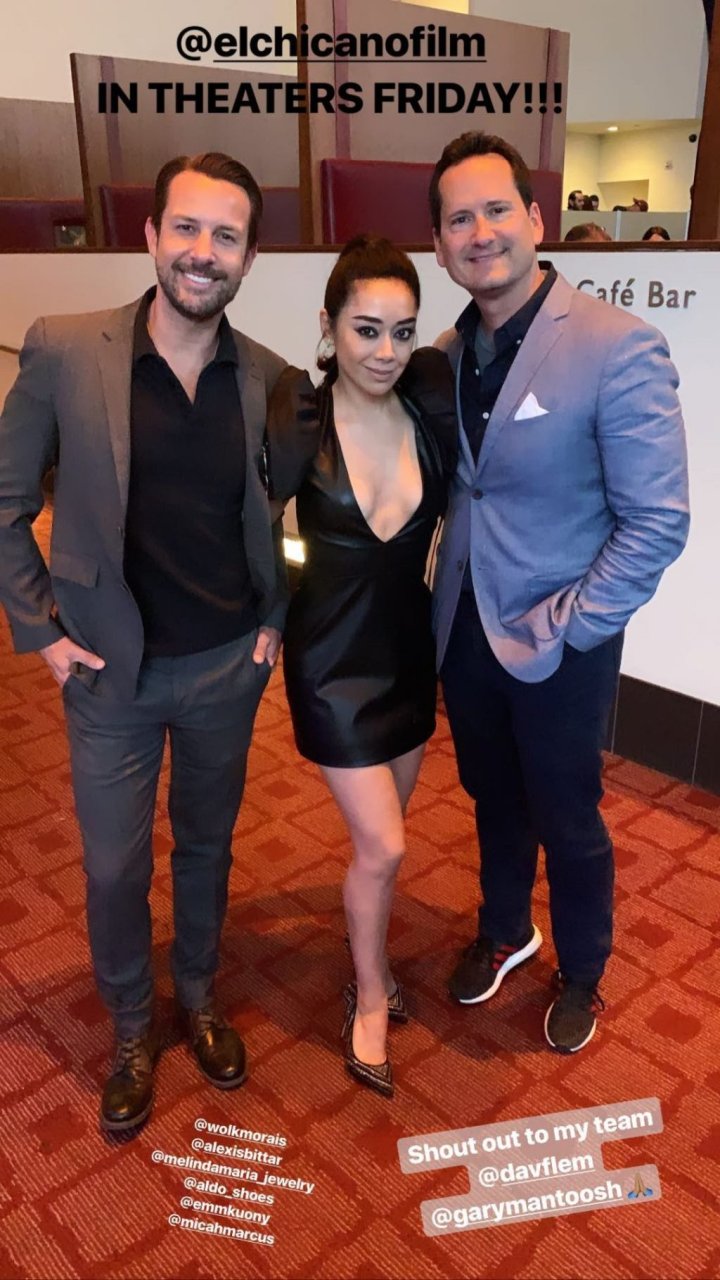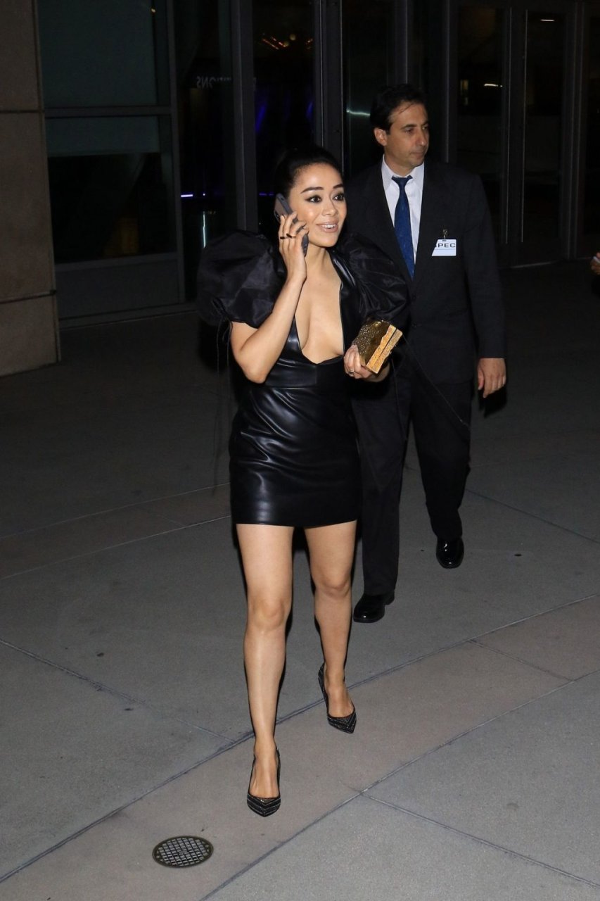 Aimee Garcia llega a una proyección especial de “El Chicano” en ArcLight Cinemas en Hollywood, 30/04/2019. La mujer de 40 años mostró su escote con un vestido de cuero negro.
