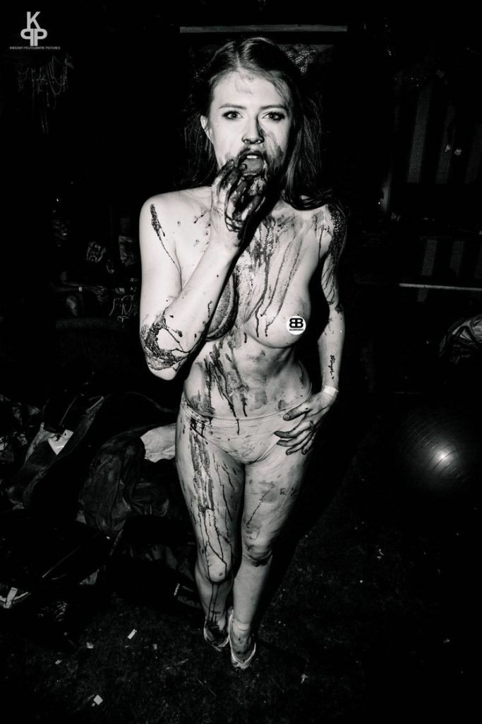 "Ella se excita al hacer que la gente reaccione al verla desnuda, lo que la exime de tener que desarrollar talento o intelecto para expresarse magistralmente en cualquier forma de arte en particular, sin mencionar que le permite 'manejar' problemas personales sin tener que superarlos, lo que la dejaría sin carrera."