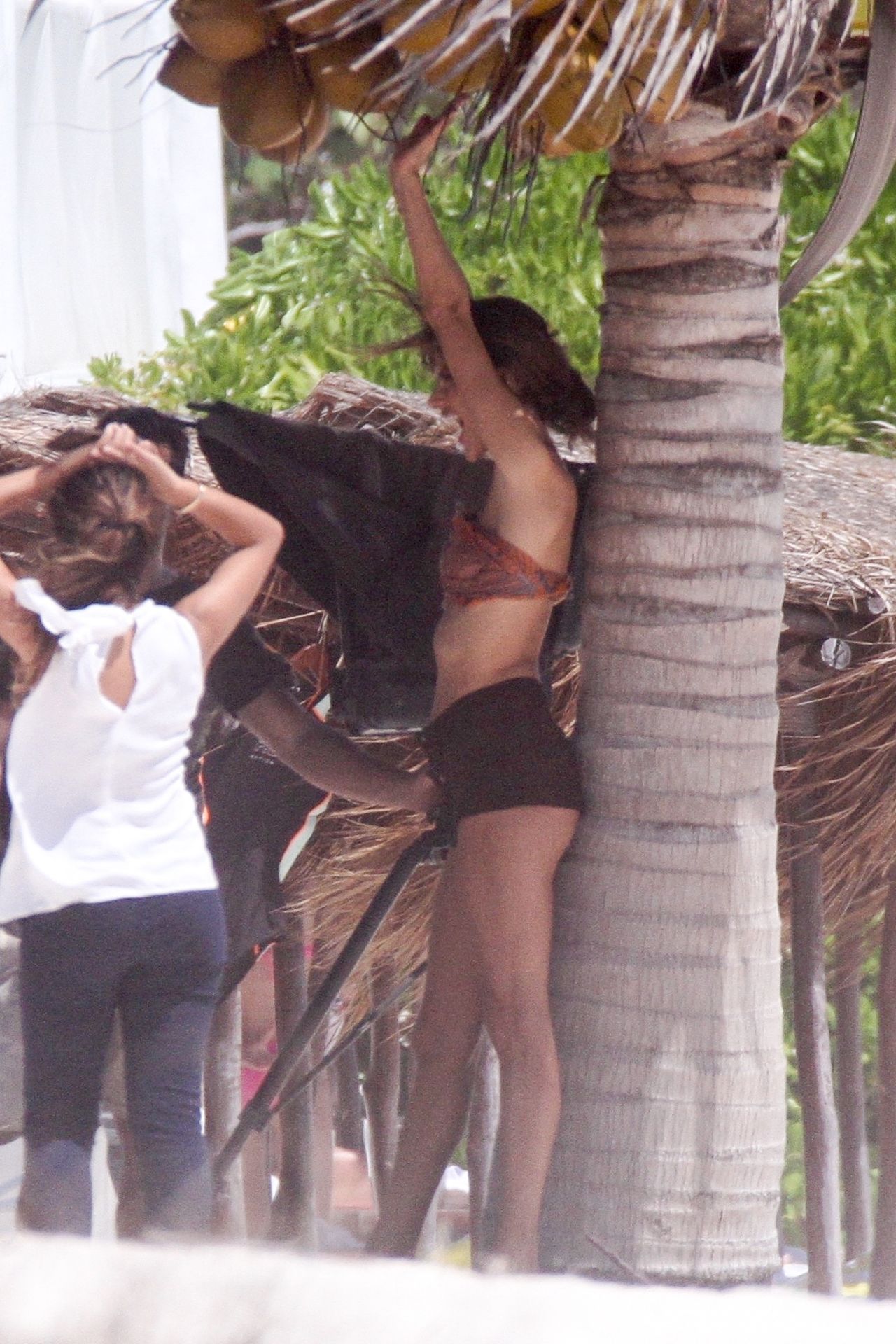 Alessandra Ambrosio volvió a la playa luciendo su figura fantástica para una sesión de fotos de Gal Floripa en Riviera Maya, México, 03/04/2020.