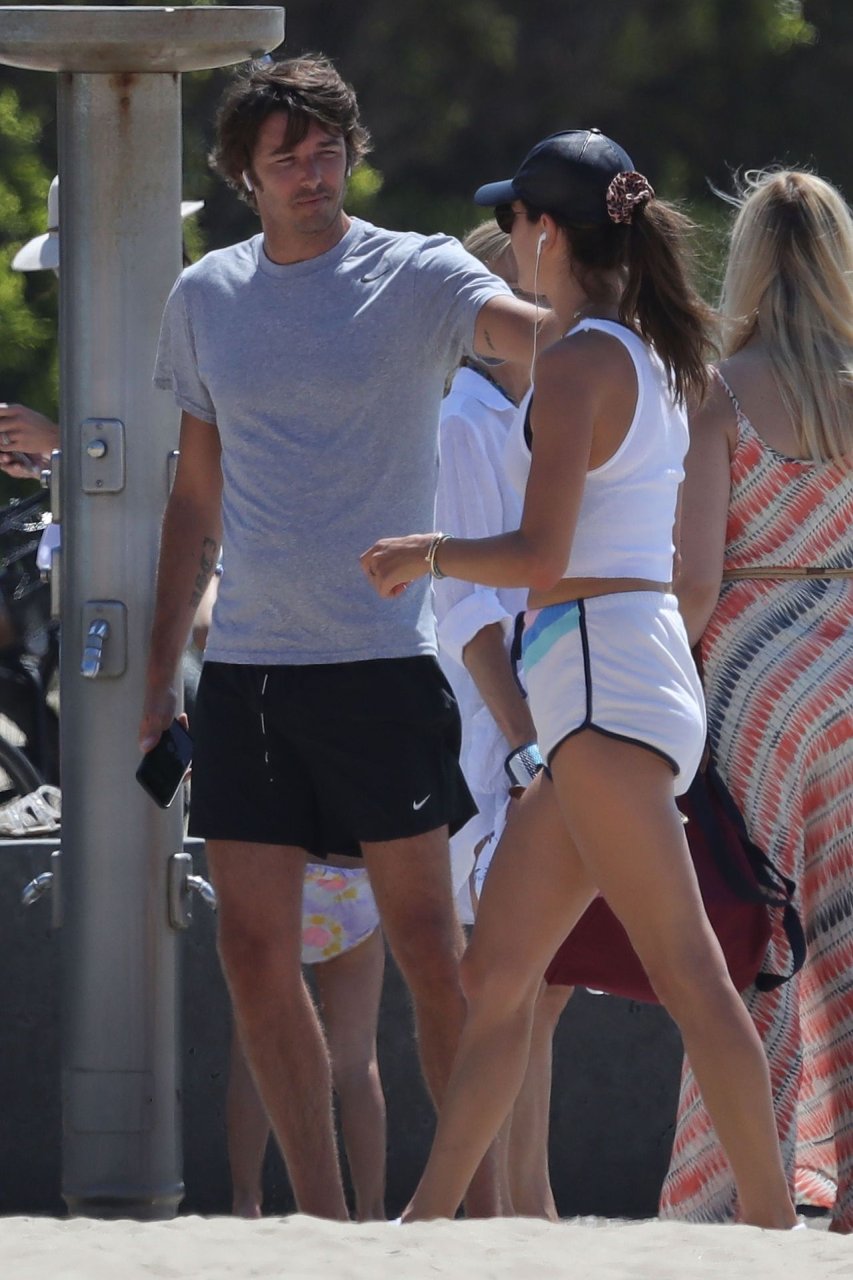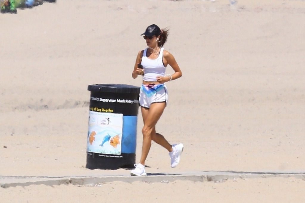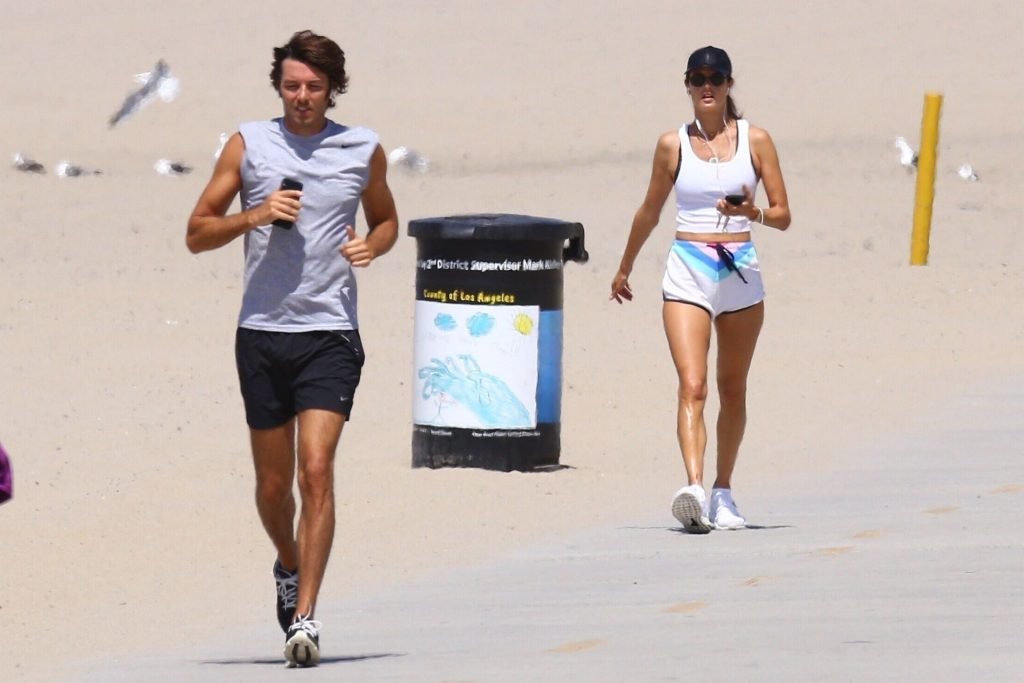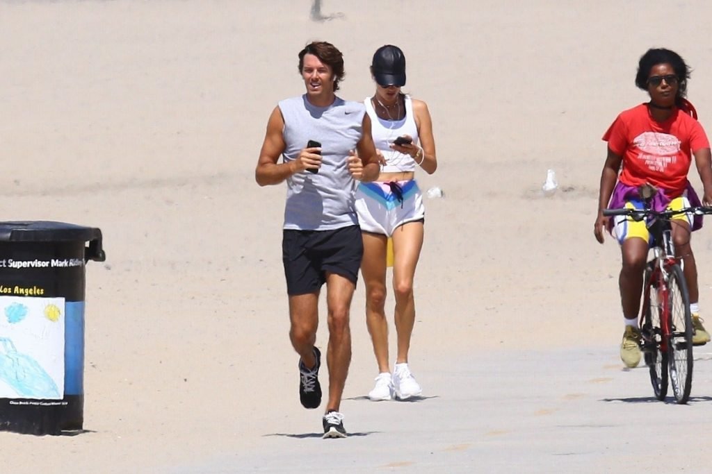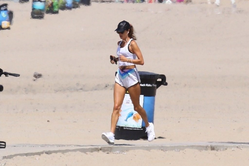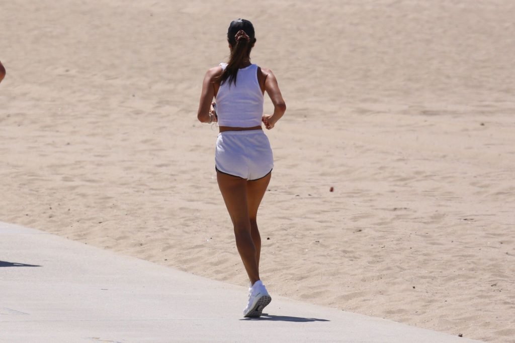 Alessandra Ambrosio y su novio Nicolo Oddi salen a correr juntos por la playa, 08/10/2019. La pareja luce casual mientras disfrutan de su ejercicio con vistas.