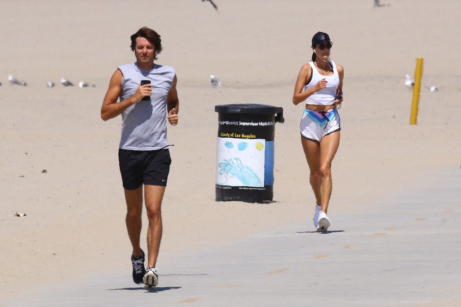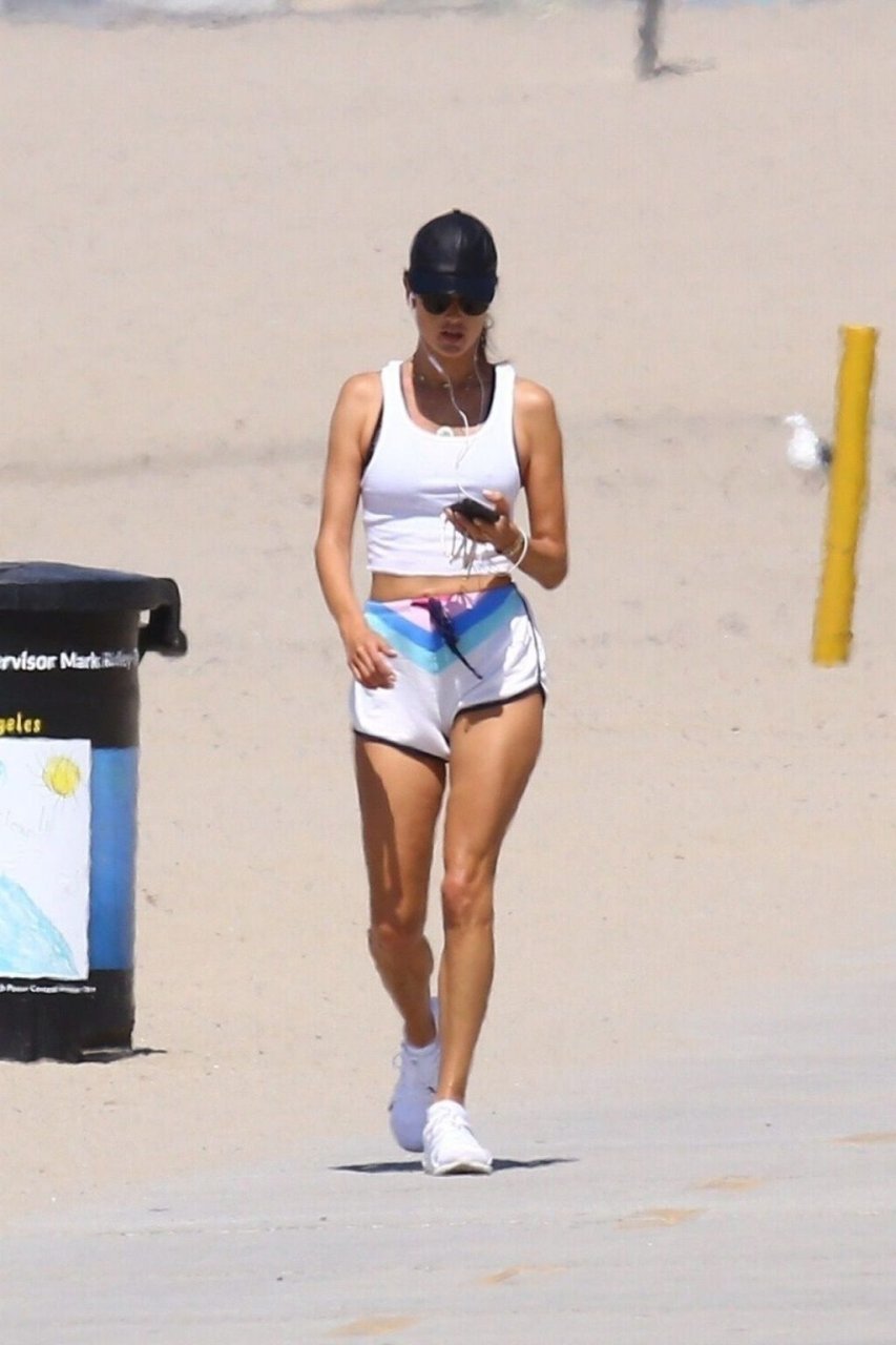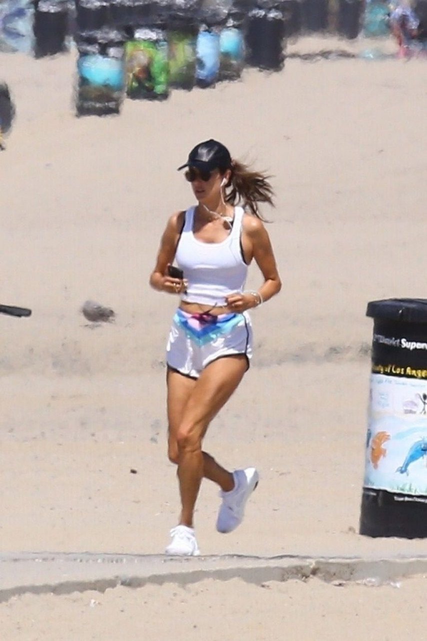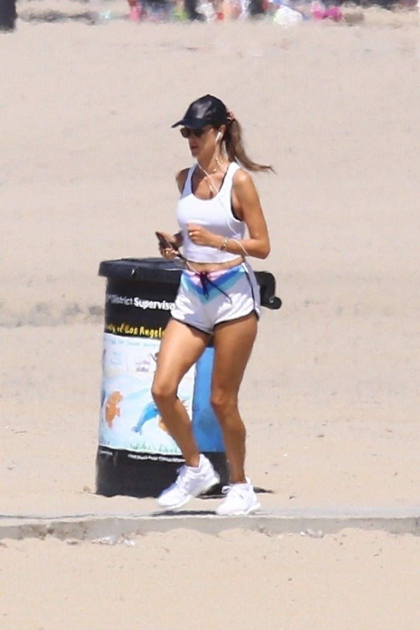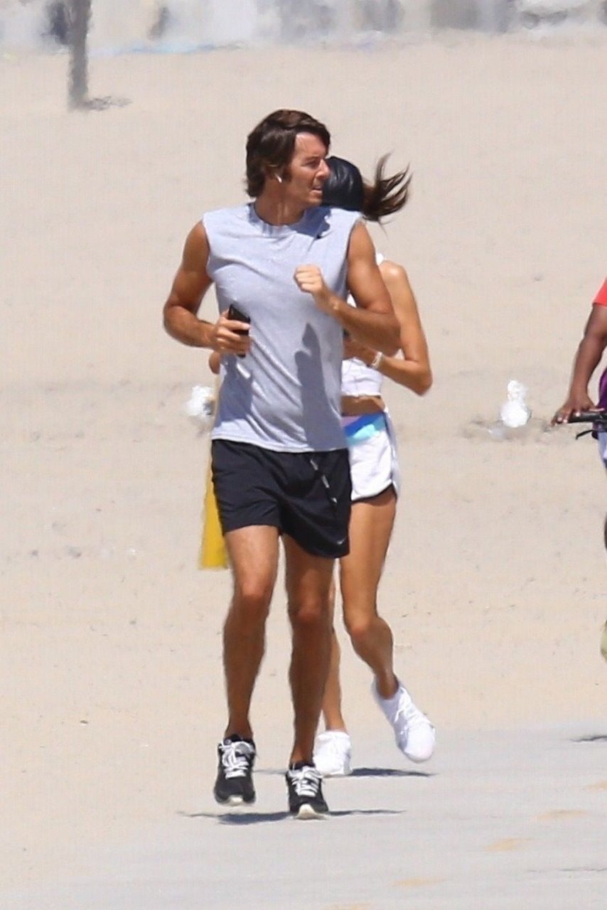Alessandra Ambrosio y su novio Nicolo Oddi salen a correr juntos por la playa, 08/10/2019. La pareja luce casual mientras disfrutan de su ejercicio con vistas.