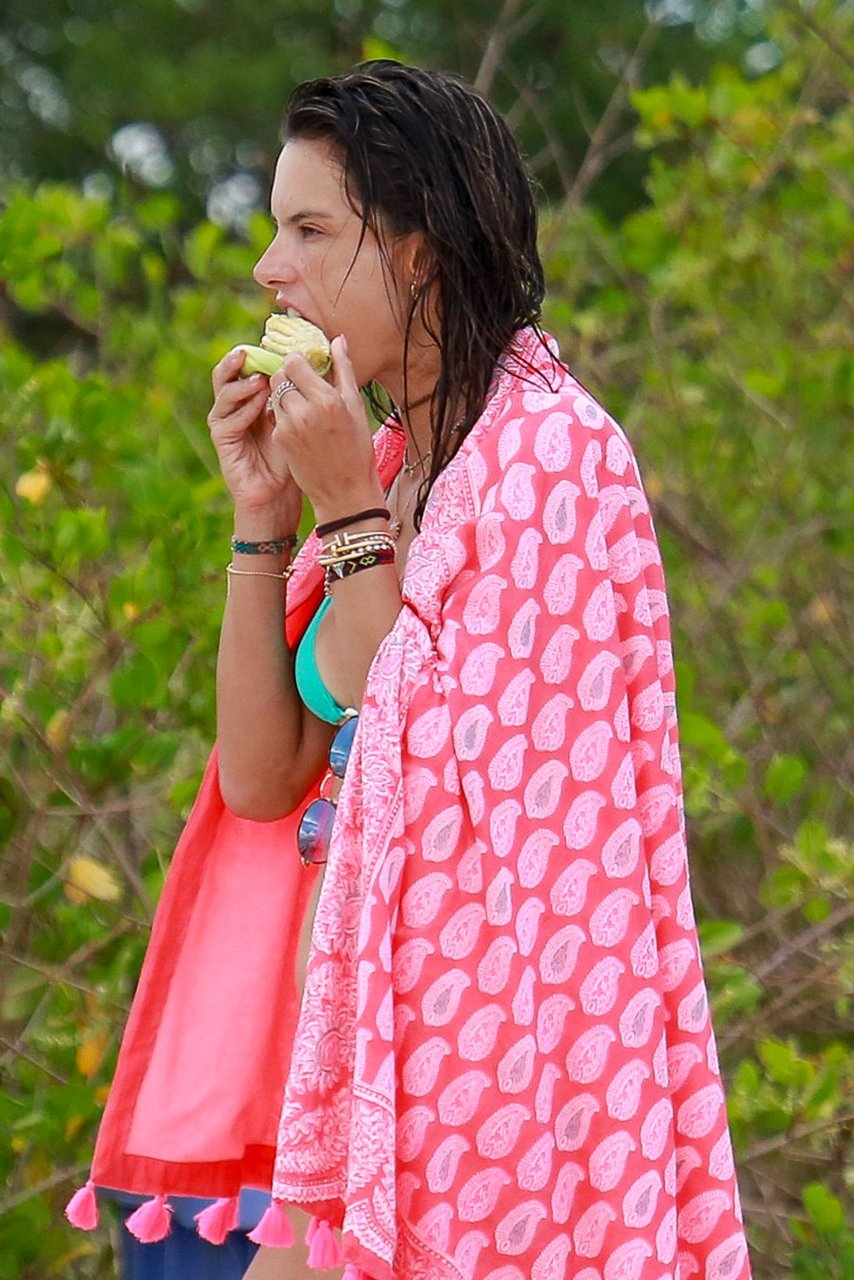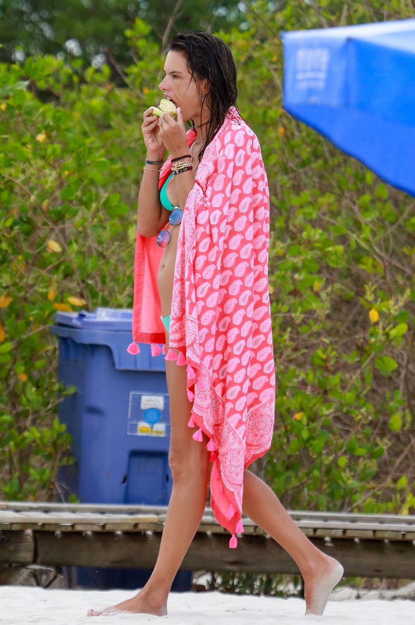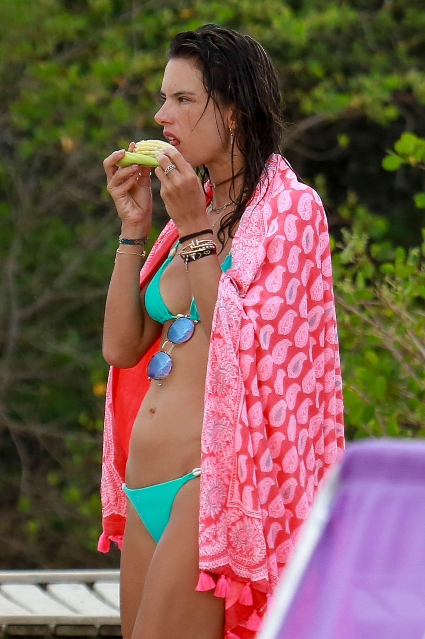 Alessandra Ambrosio lleva un sexy bikini turquesa en la playa de Canasvieiras, Brasil, 01/08/2017. Alessandra Ambrosio (Alessandra Corine Ambrósio) es una modelo brasileña, actriz (Daddy’s Home (2015)). Edad: 35 años, 11 de abril de 1981