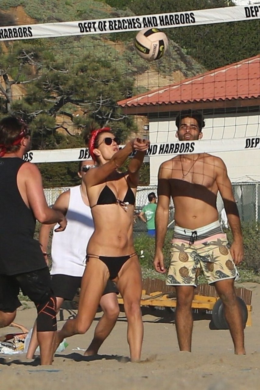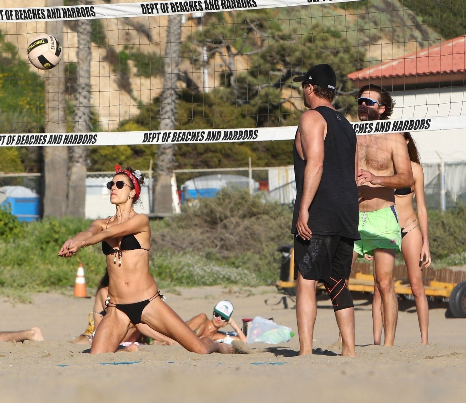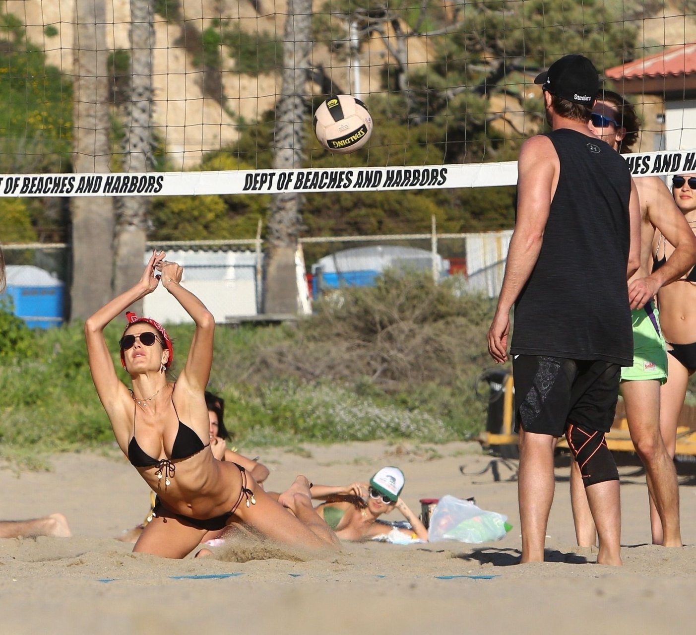Alessandra Ambrosio se muestra luciendo sus increíbles curvas con un coqueto bikini negro durante una tarde en la playa jugando voleibol en Los Ángeles, 18/03/2019.