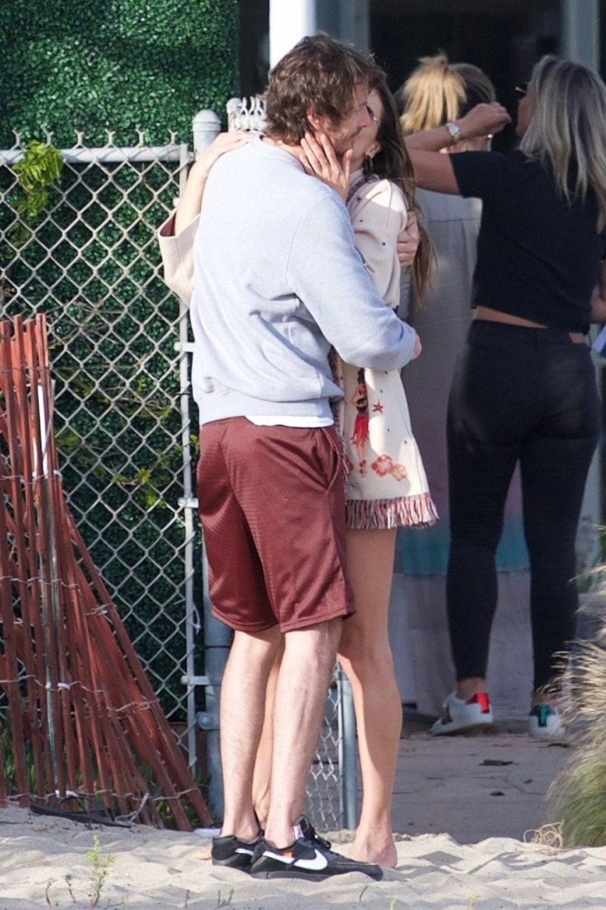 Alessandra Ambrosio festeja con amigos en la playa de Malibu, CA, 07/04/2019. La modelo luego se aparta para disfrutar de un poco de PDA con su novio Nicolo Oddi.