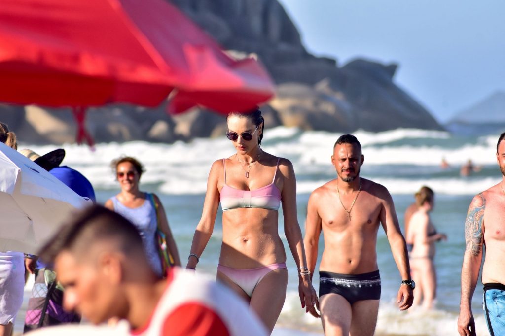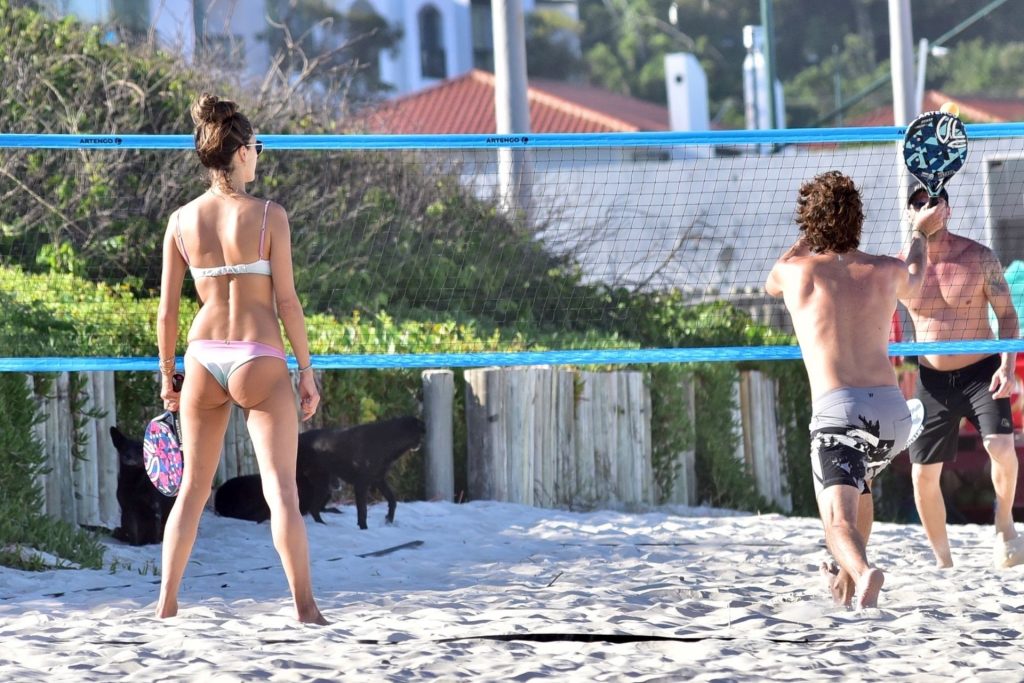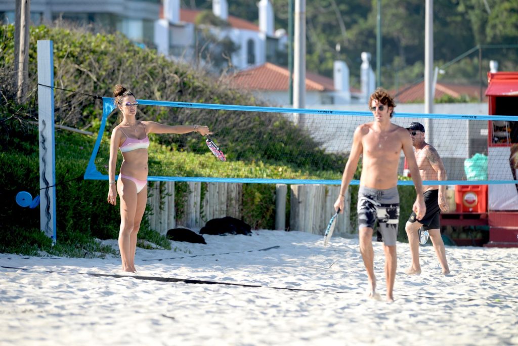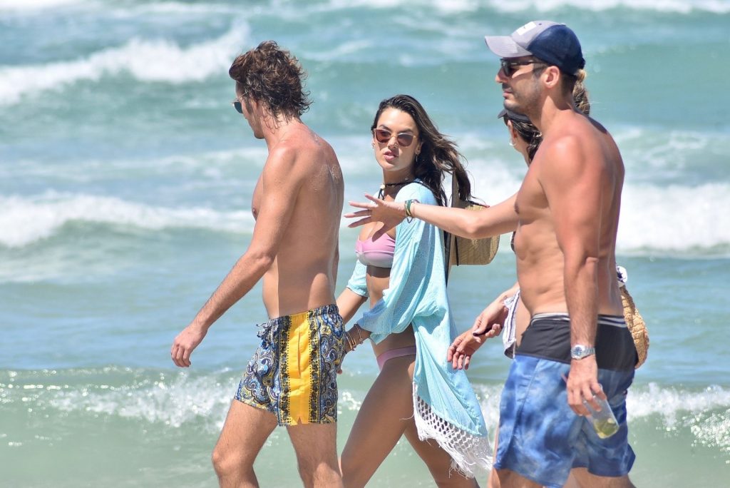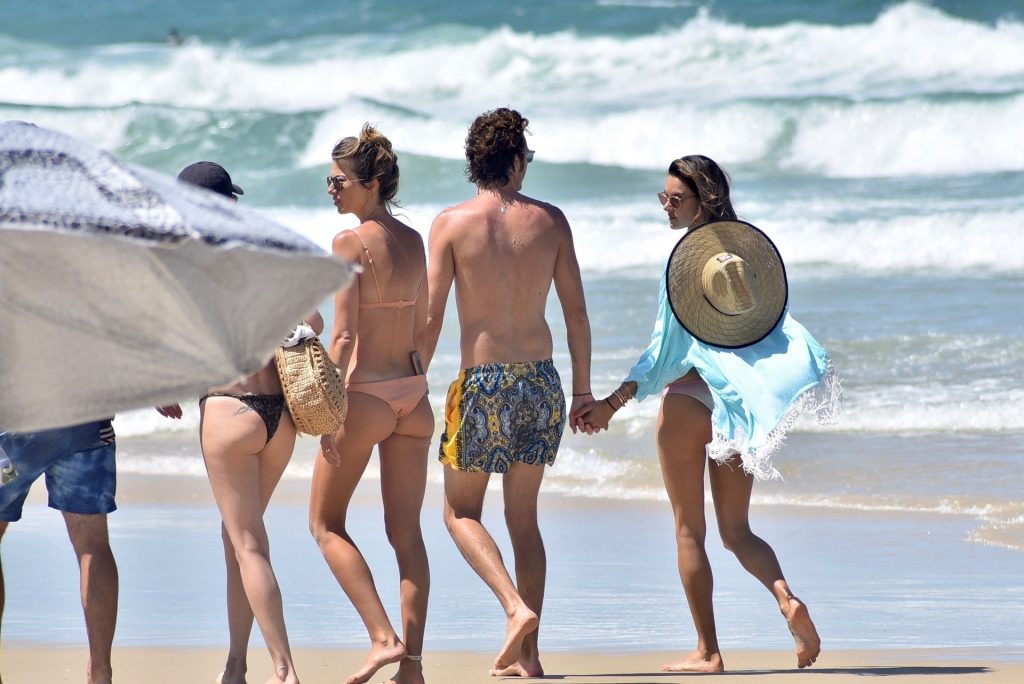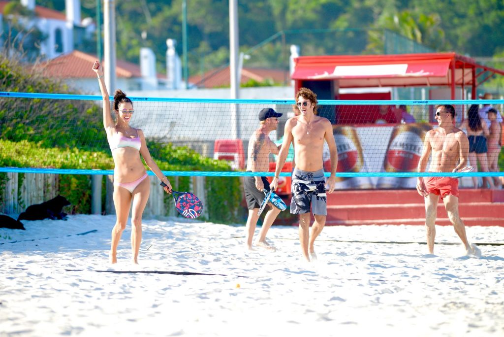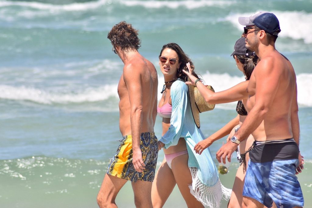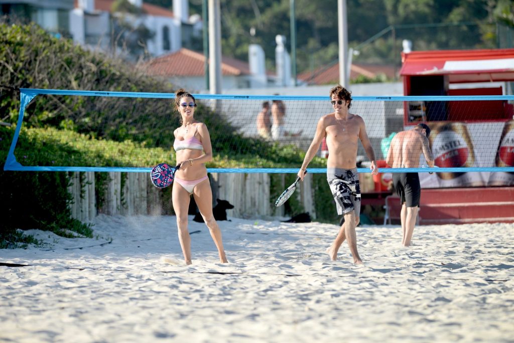La bomba brasileña Alessandra Ambrosio y su novio Nicolo Oddi llaman la atención en la playa de Florianópolis, Brasil, 30/12/2019. La modelo de largas piernas fue vista divirtiéndose con amigos y familiares. Alessandra también muestra su figura con un bikini de dos piezas mientras se la ve jugando tenis de playa.
