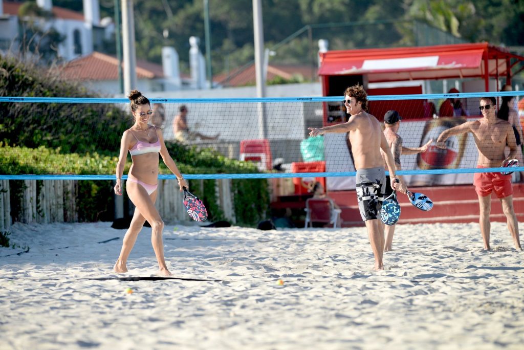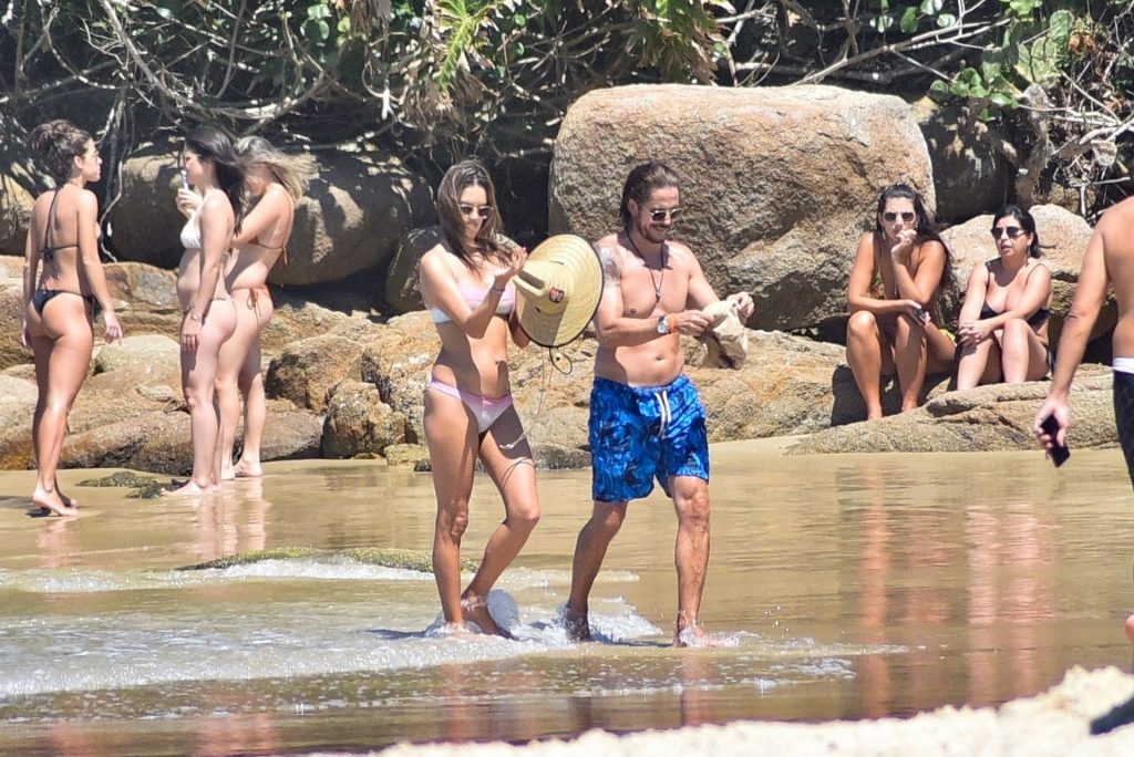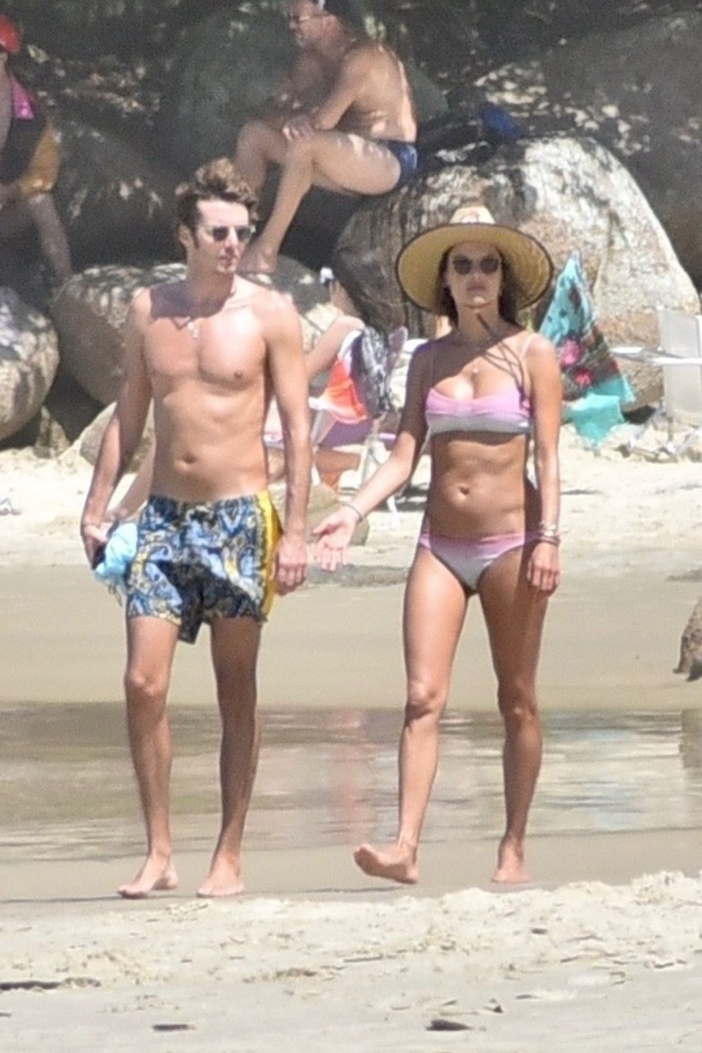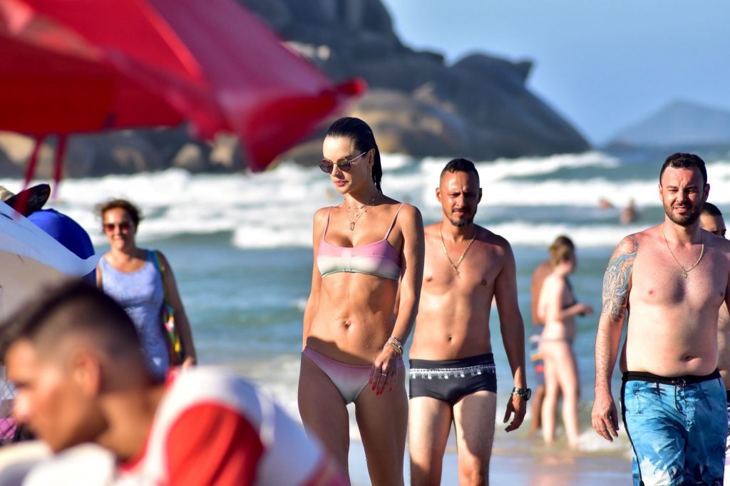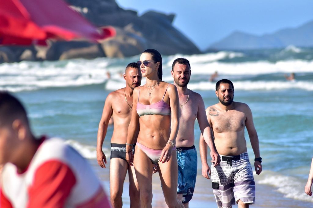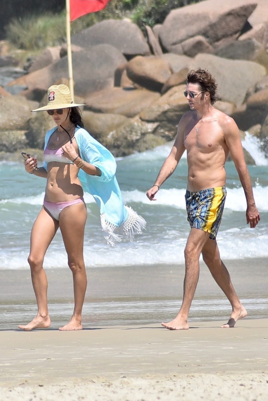 La bomba brasileña Alessandra Ambrosio y su novio Nicolo Oddi llaman la atención en la playa de Florianópolis, Brasil, 30/12/2019. La modelo de largas piernas fue vista divirtiéndose con amigos y familiares. Alessandra también muestra su figura con un bikini de dos piezas mientras se la ve jugando tenis de playa.