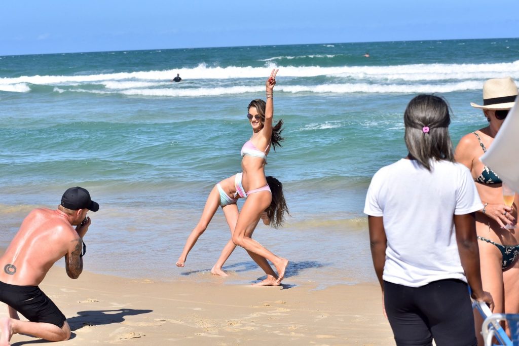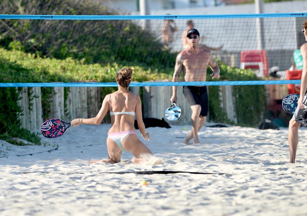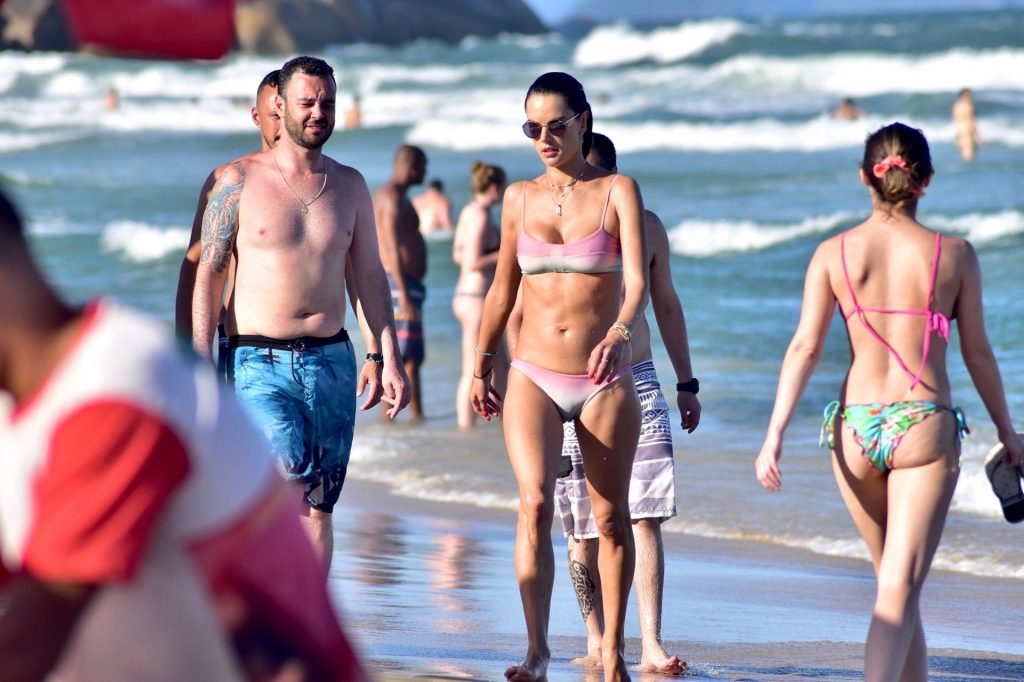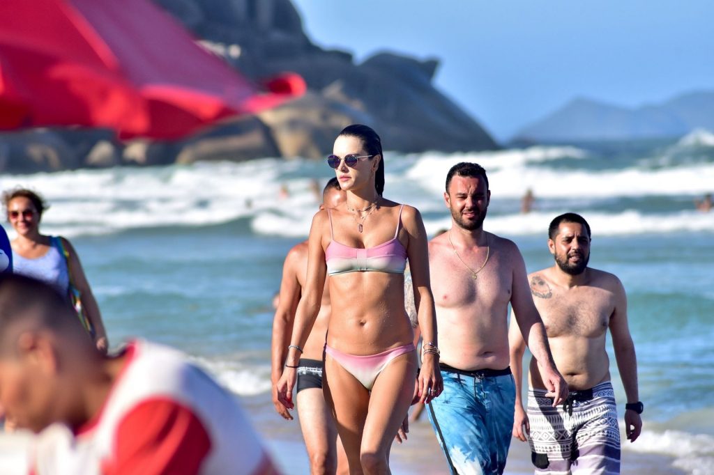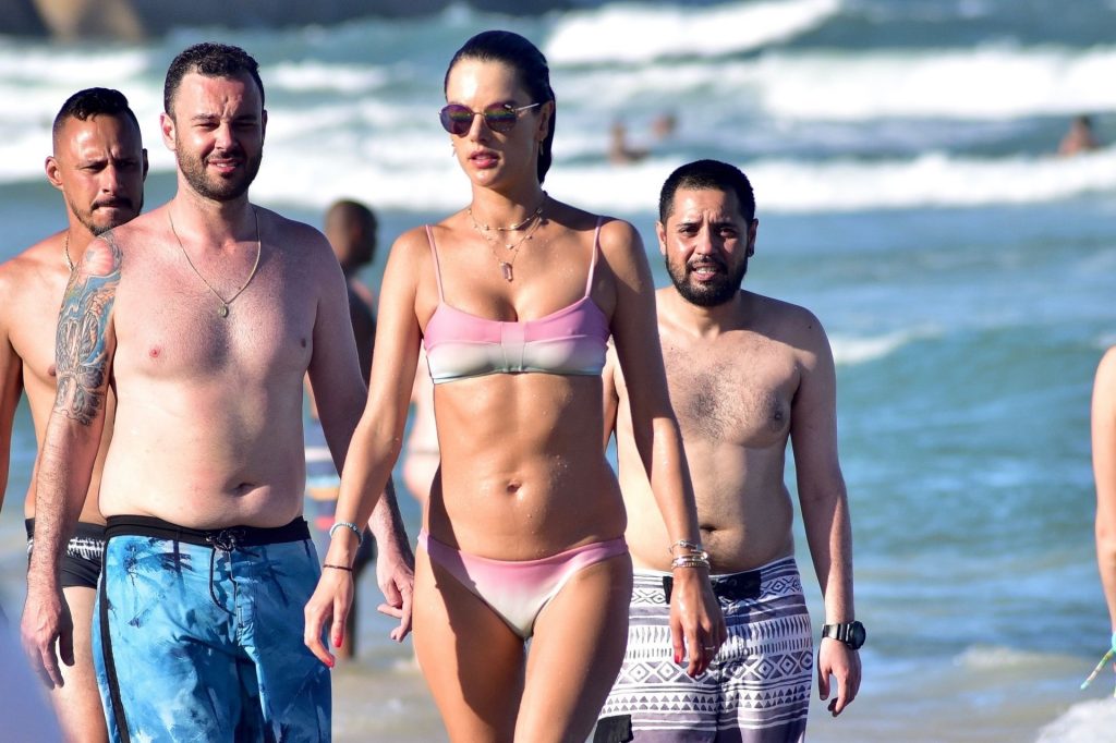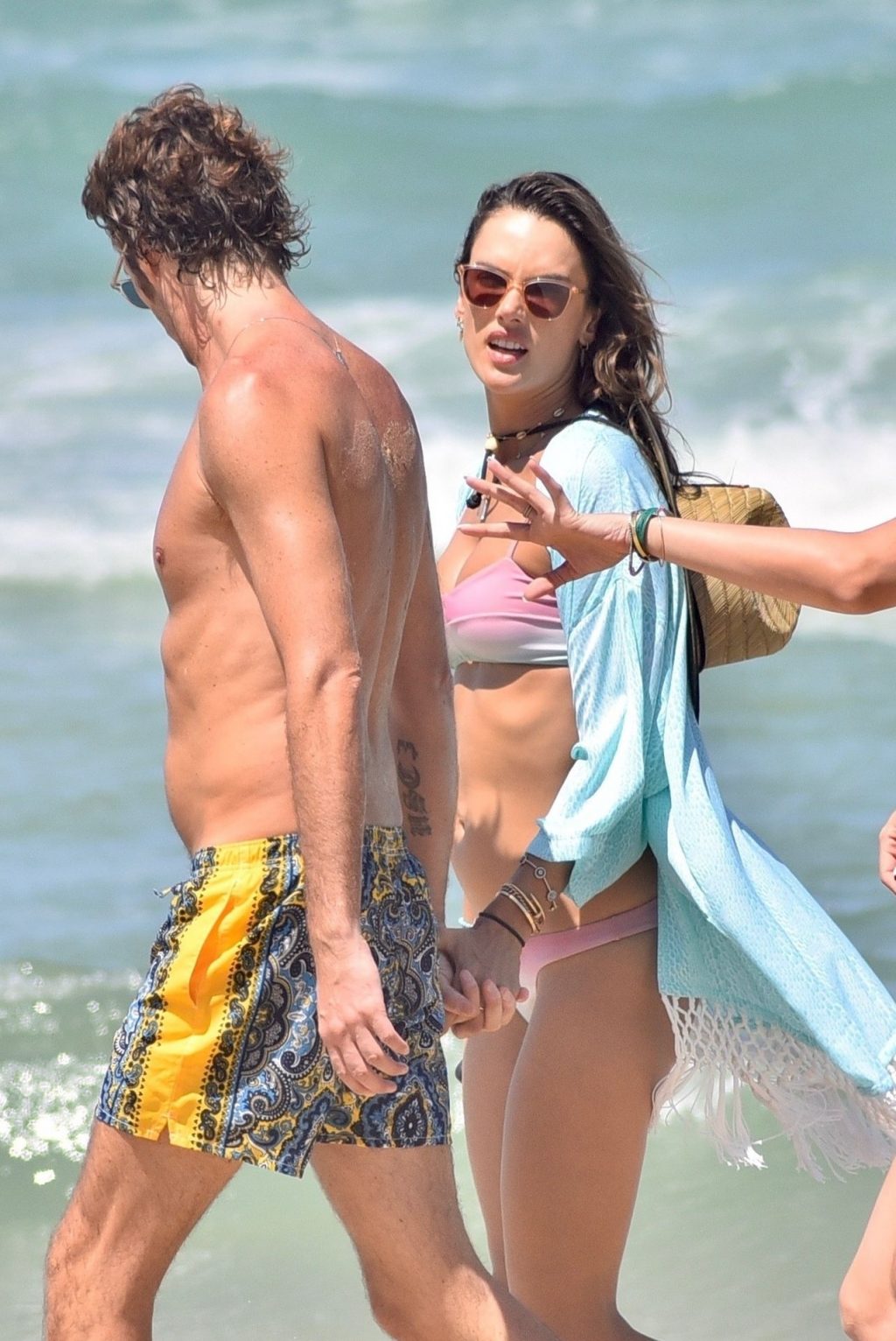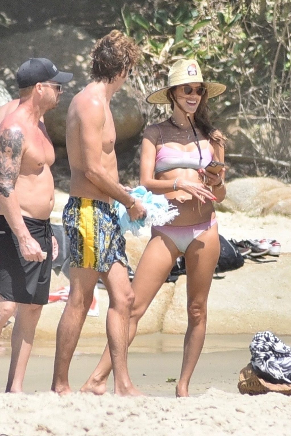 La bomba brasileña Alessandra Ambrosio y su novio Nicolo Oddi llaman la atención en la playa de Florianópolis, Brasil, 30/12/2019. La modelo de largas piernas fue vista divirtiéndose con amigos y familiares. Alessandra también muestra su figura con un bikini de dos piezas mientras se la ve jugando tenis de playa.