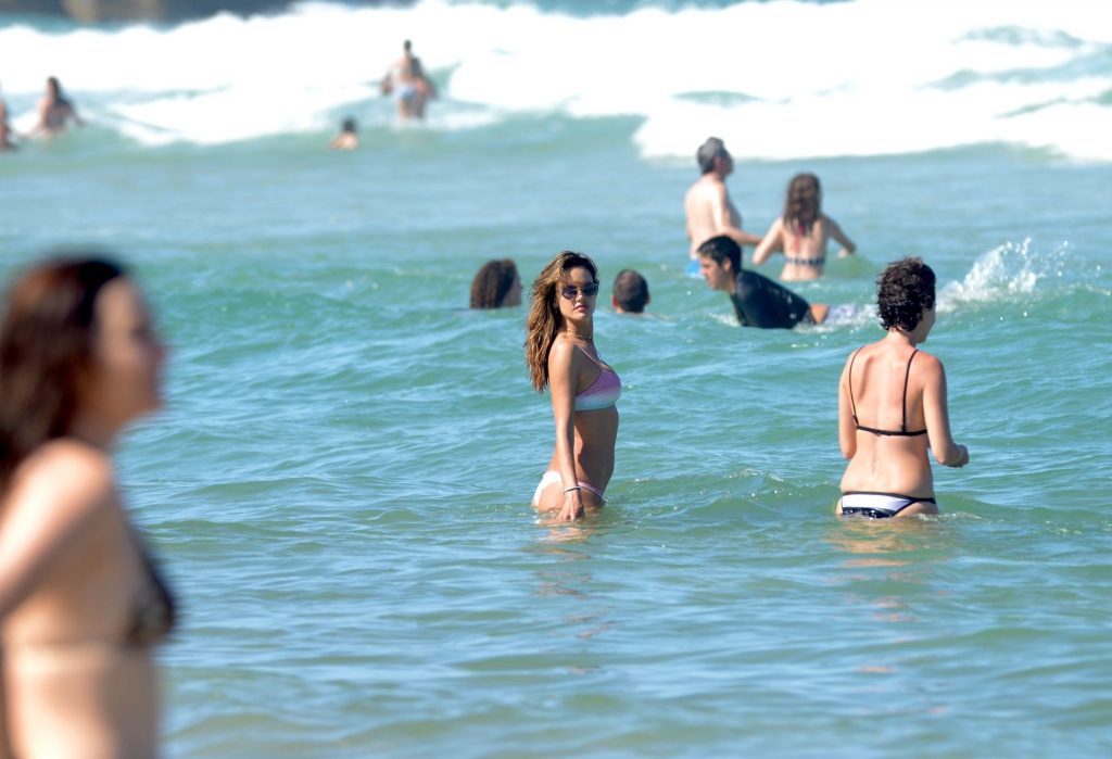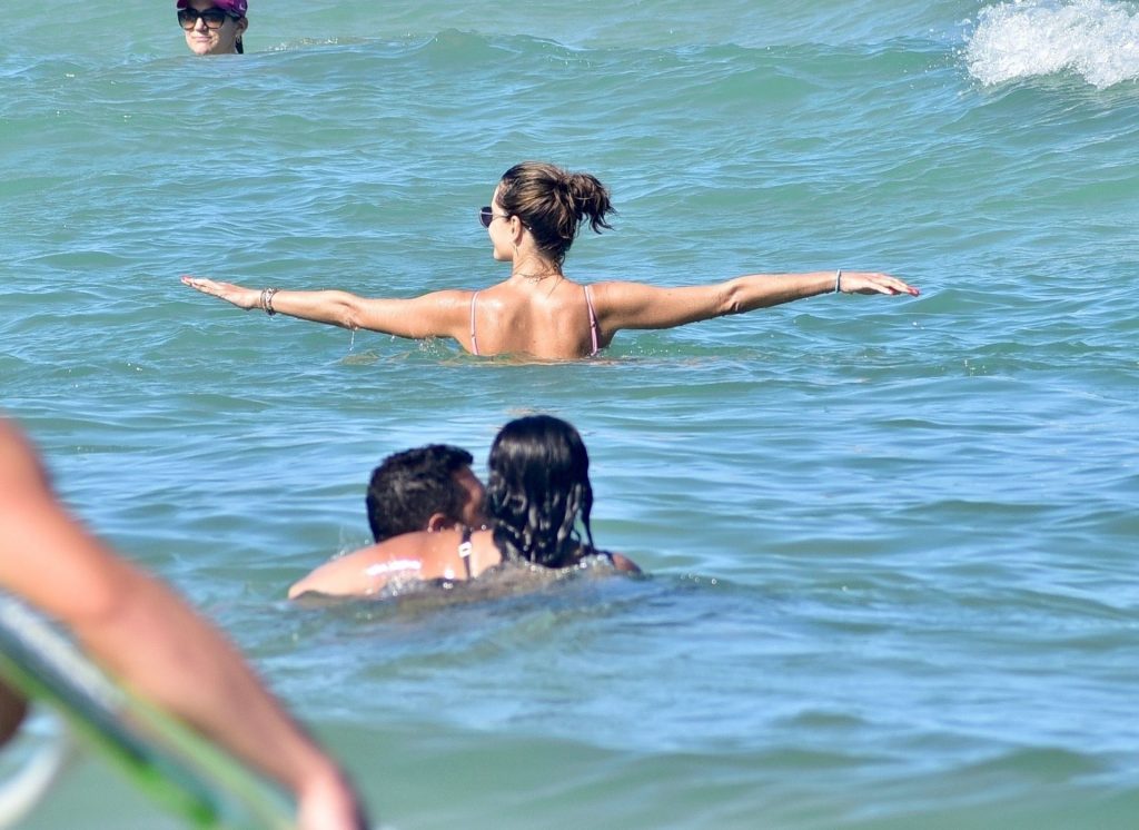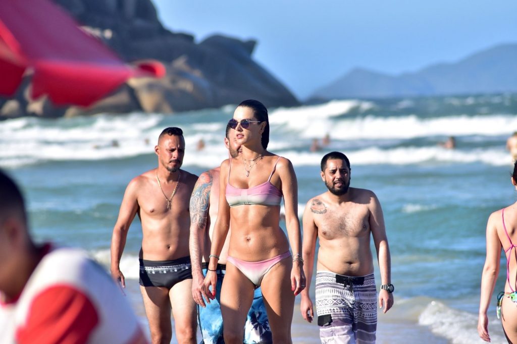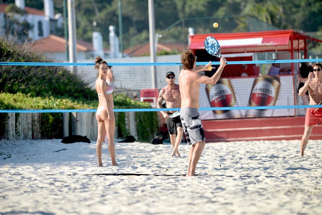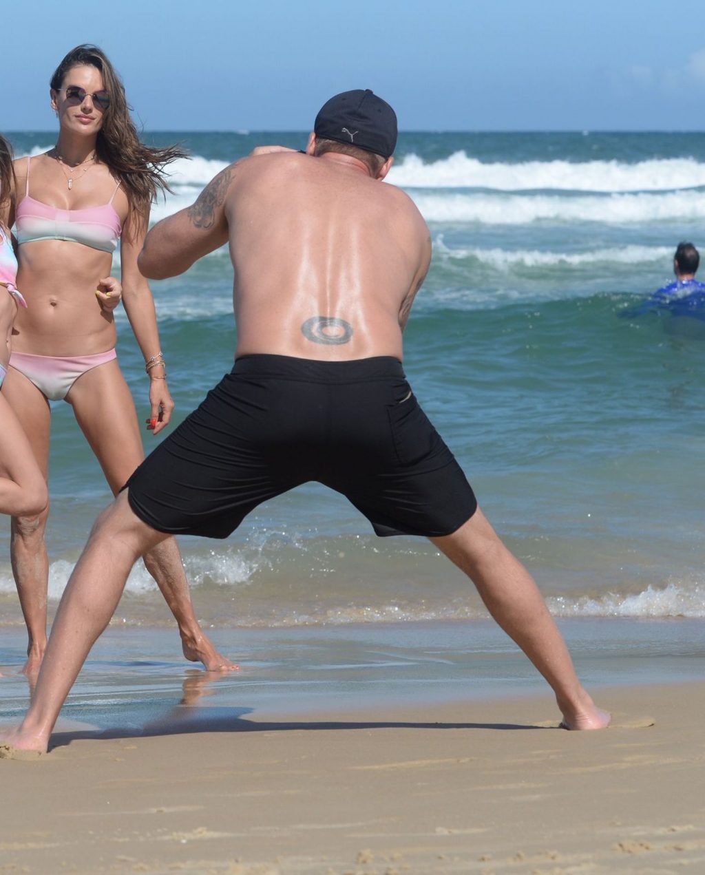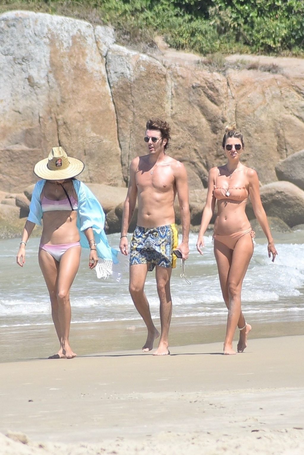 La bomba brasileña Alessandra Ambrosio y su novio Nicolo Oddi llaman la atención en la playa de Florianópolis, Brasil, 30/12/2019. La modelo de largas piernas fue vista divirtiéndose con amigos y familiares. Alessandra también muestra su figura con un bikini de dos piezas mientras se la ve jugando tenis de playa.