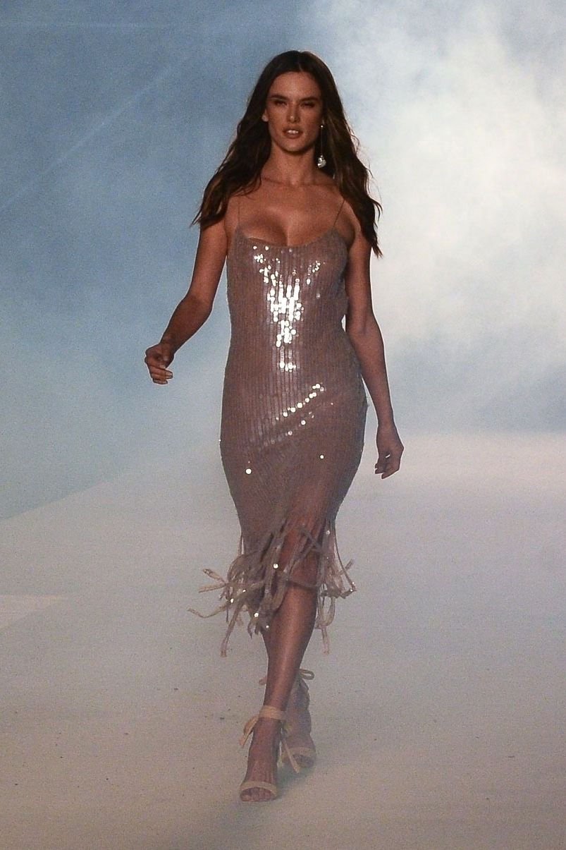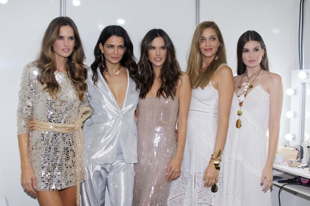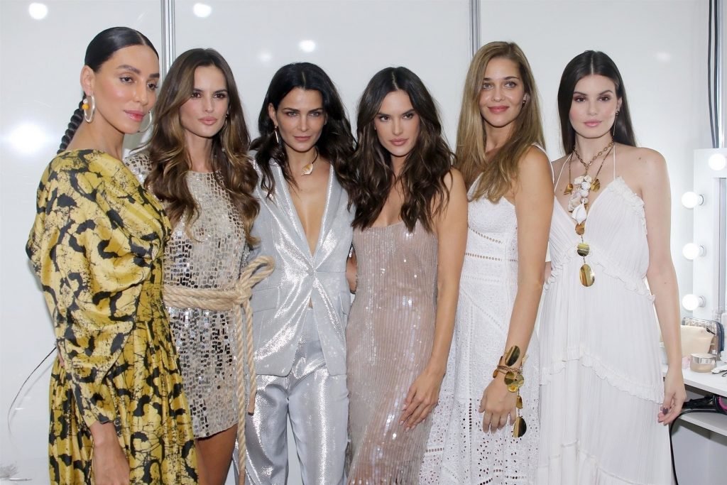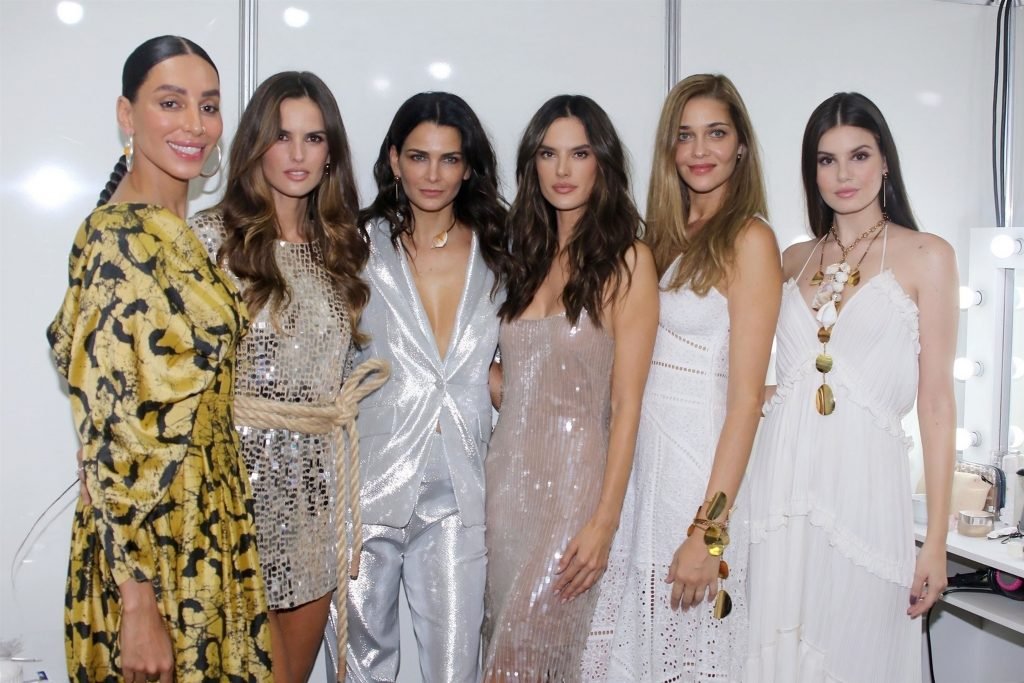 La supermodelo brasileña Alessandra Ambrosio (37) posa fuera de su camerino detrás del escenario en el desfile de moda Le Lis Blanc en Sao Paulo, 18/10/2018.