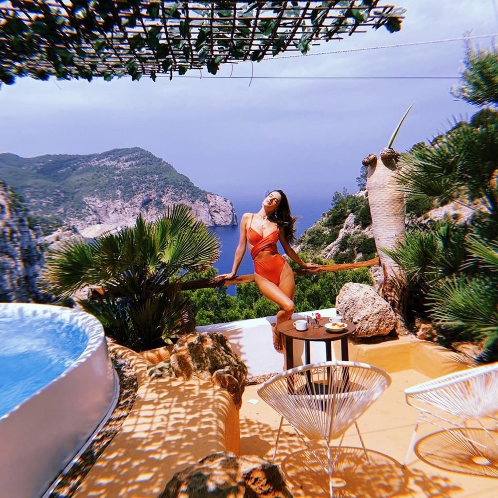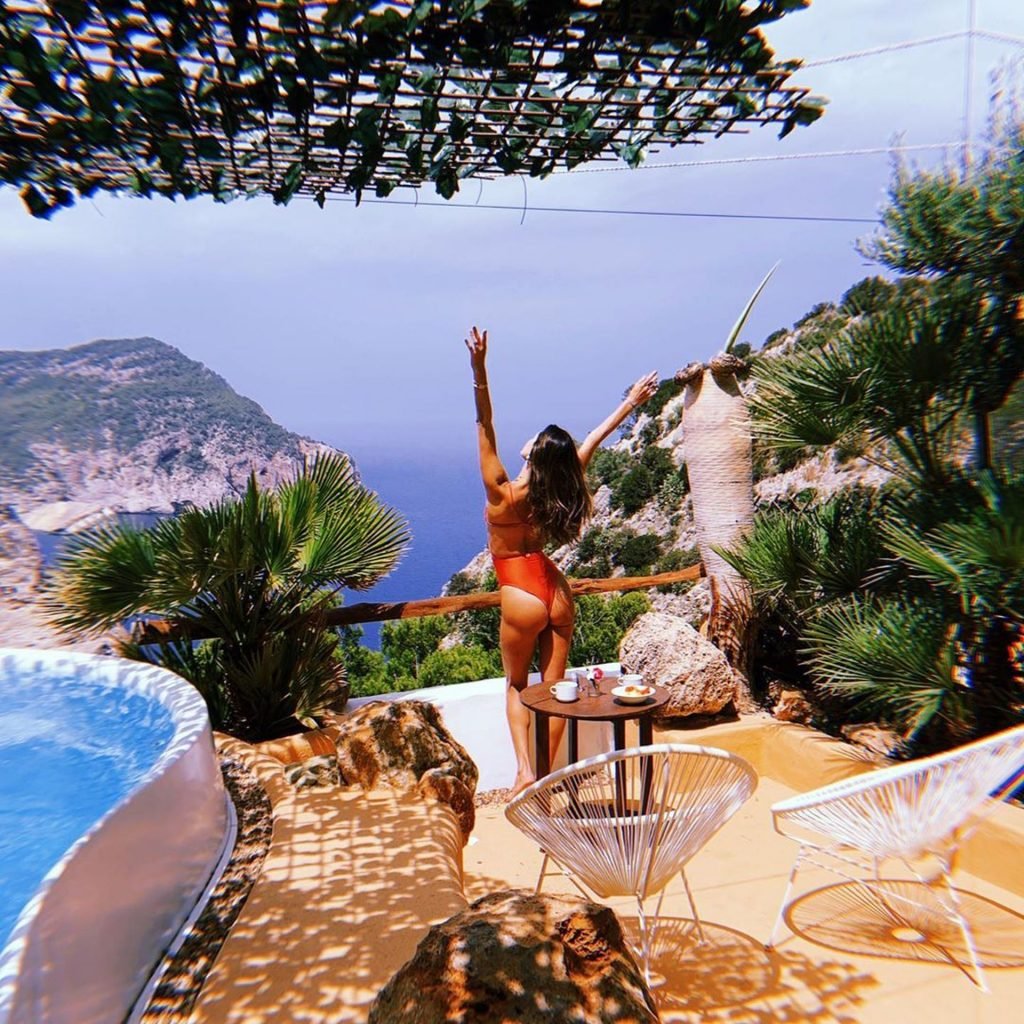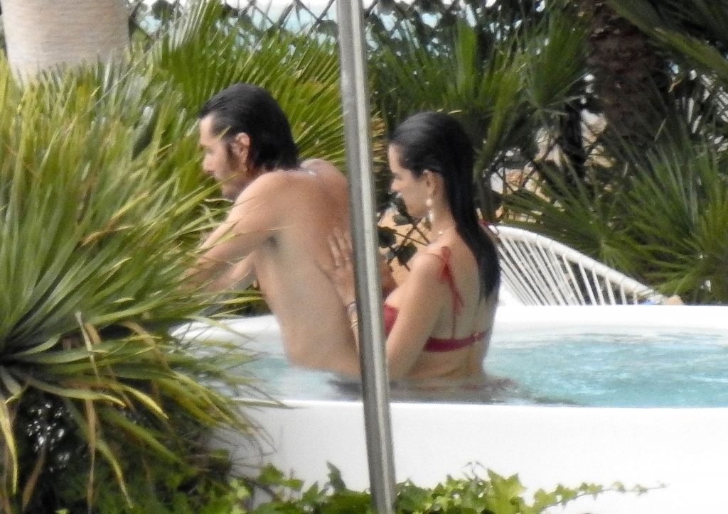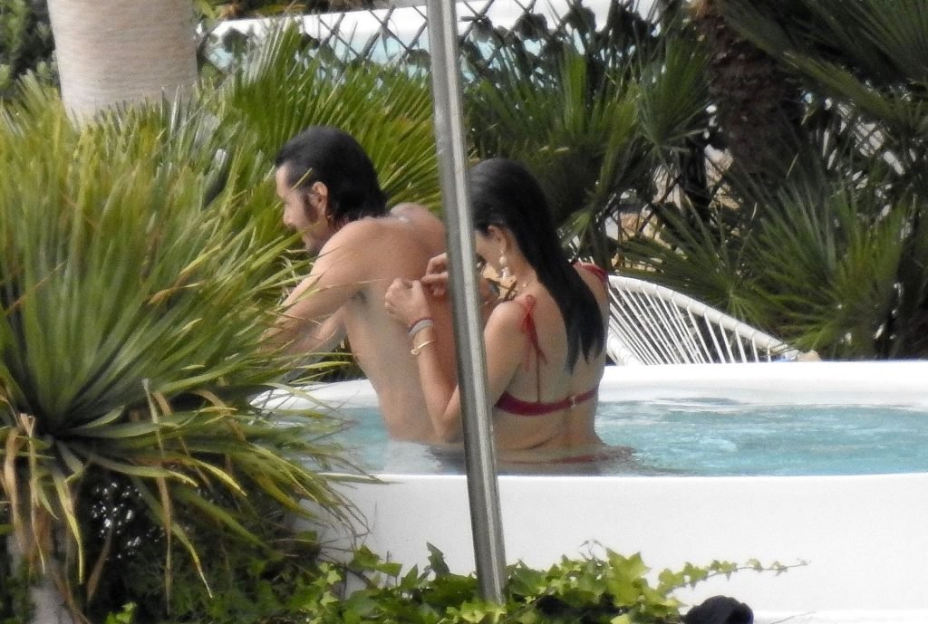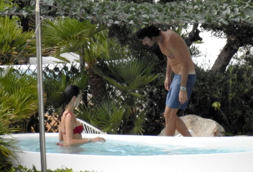 Usando su sexy bikini rojo, la supermodelo brasileña Alessandra Ambrosio se ve muy enamorada y relajada con su novio italiano Nicolo Oddi mientras la pareja se muestra cariñosa junto a la piscina durante sus vacaciones en Ibiza, 07/08/2019.