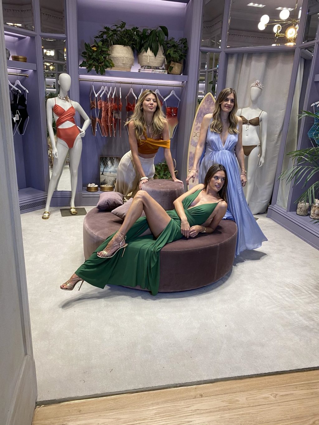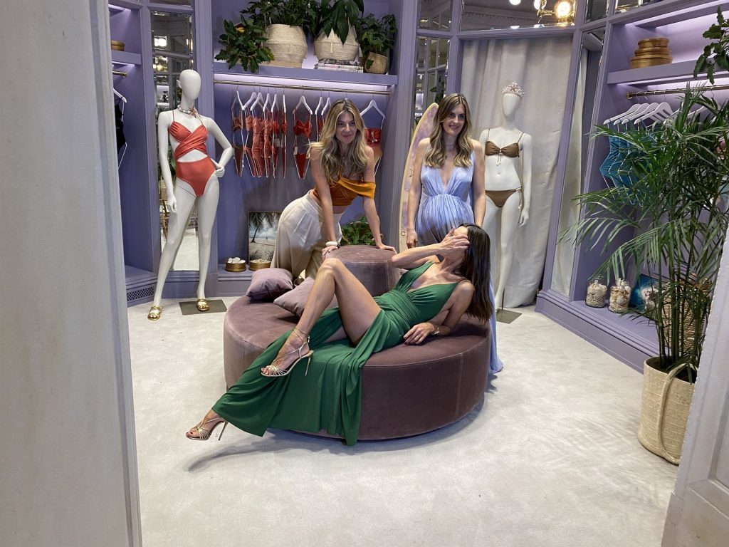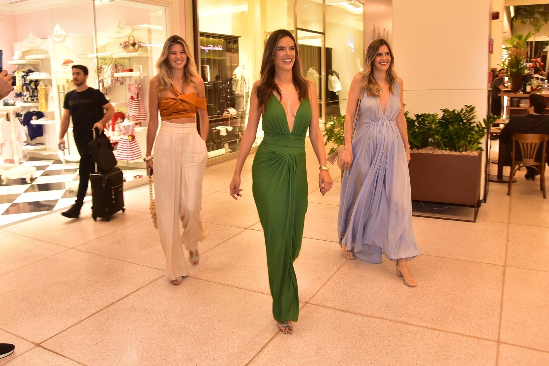 Supermodelo Alessandra Ambrosio abrió esta tarde la primera tienda en Sao Paulo, Brasil, de su marca de bikinis durante un evento promocional donde compartió su sonrisa contagiosa y algo de escote vistiendo un vestido verde de verano, 12/10/2019.