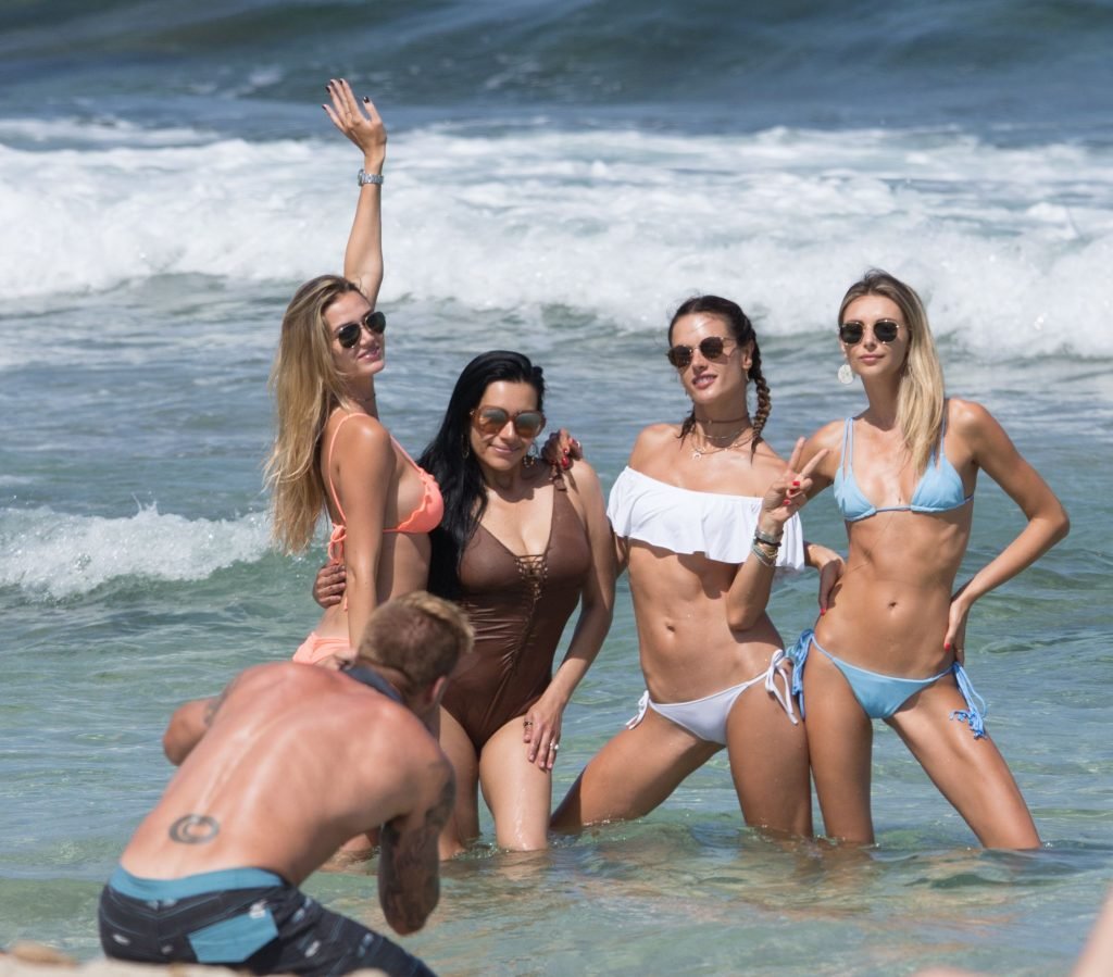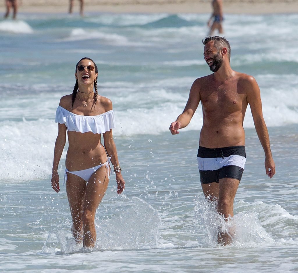 La brasileña Alessandra Ambrosio se divierte con amigos en la playa de Ibiza, 14/07/2017.