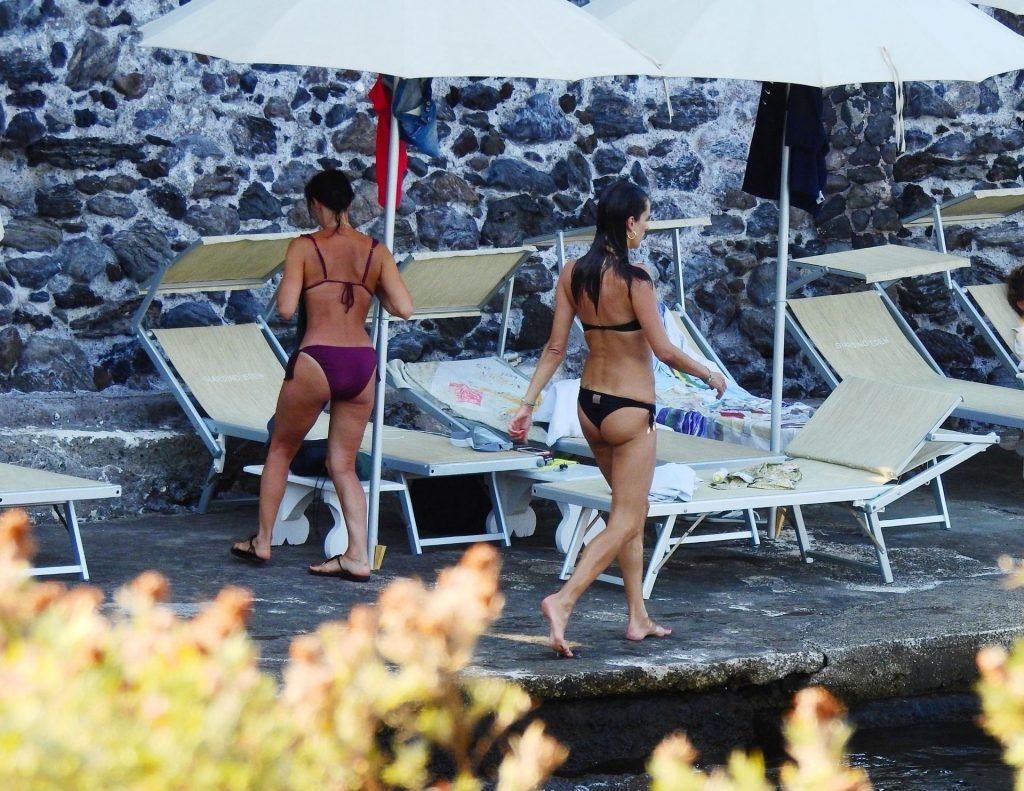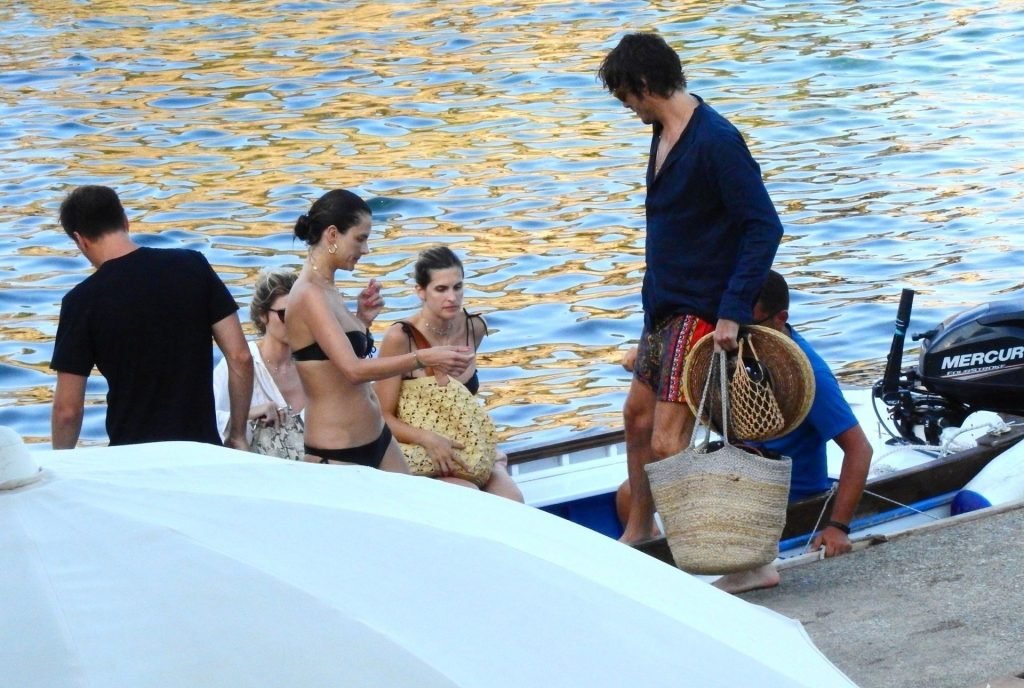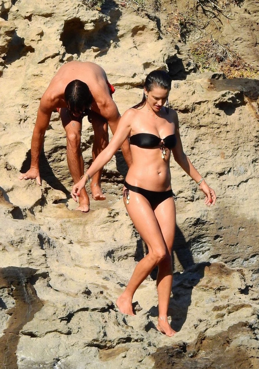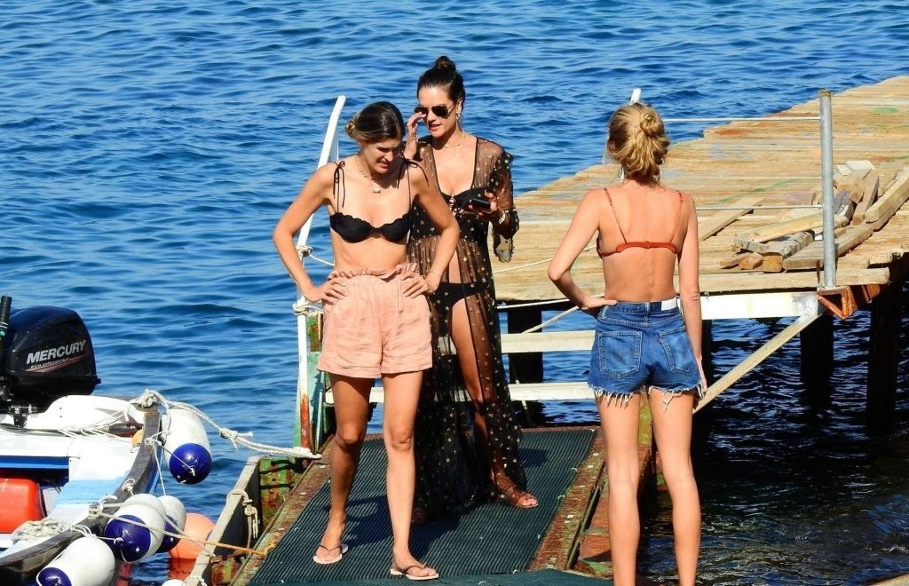 Llevando su pequeño y escaso bikini negro, la supermodelo brasileña de 38 años Alessandra Ambrosio nada con sus hijos y su novio Nicolo Oddi en Ischia durante sus vacaciones de verano en Eden Garden, 26/07/2019.