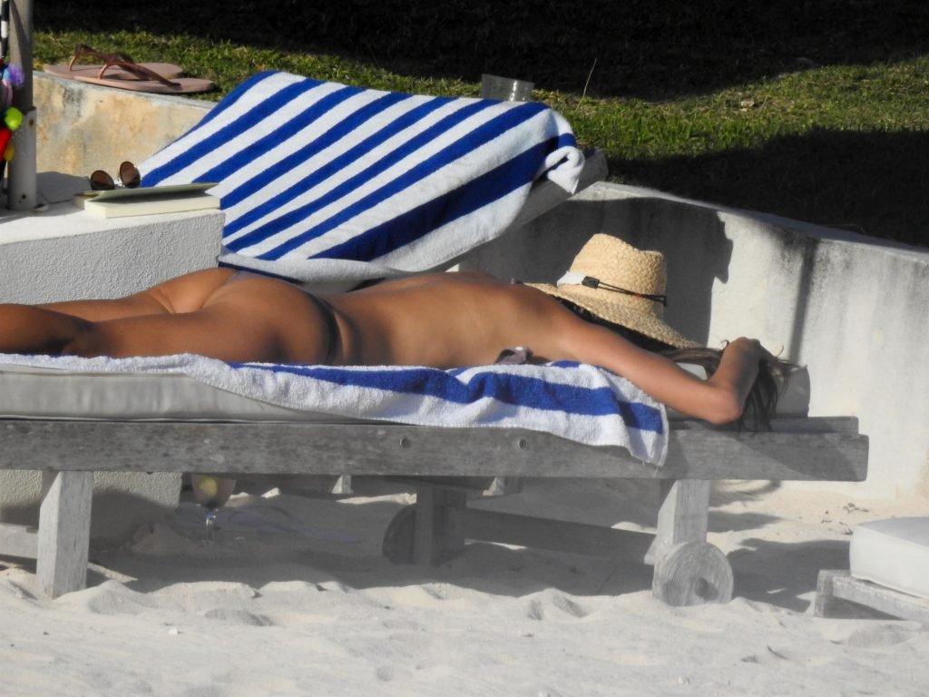 A esta señora le gusta mucho la playa {quizás le gusta que la fotografíen.} ¿Dónde vive? En los últimos dos meses la he visto en fotos de playas en Brasil, Malibu, Miami {creo} y ahora en las Bahamas. ¿Le gusta esquiar? ¿Qué tal Aspen? ¿Escalar montañas? Me encantaría ver una foto de ella escalando el Matterhorn.