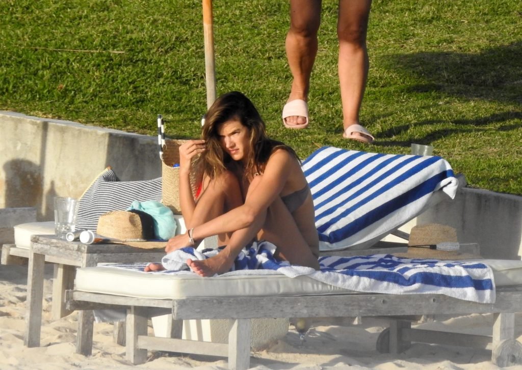 Alessandra Ambrosio, 36, se broncea mientras está de vacaciones en la playa de las Bahamas, 02/09/2018. El ángel de Victoria’s Secret lleva un pequeño bikini morado para divertirse bajo el sol.