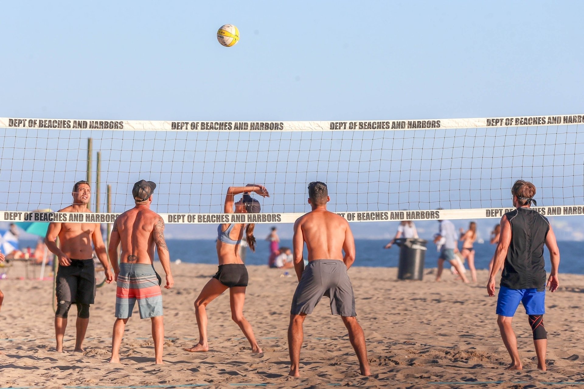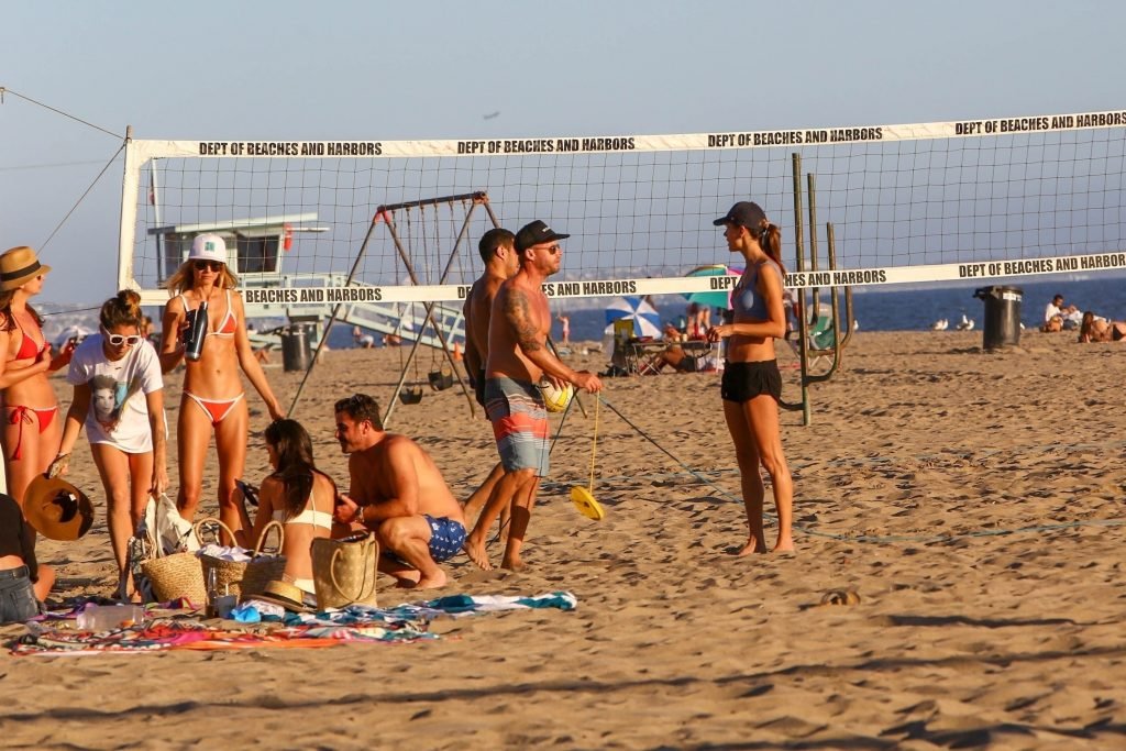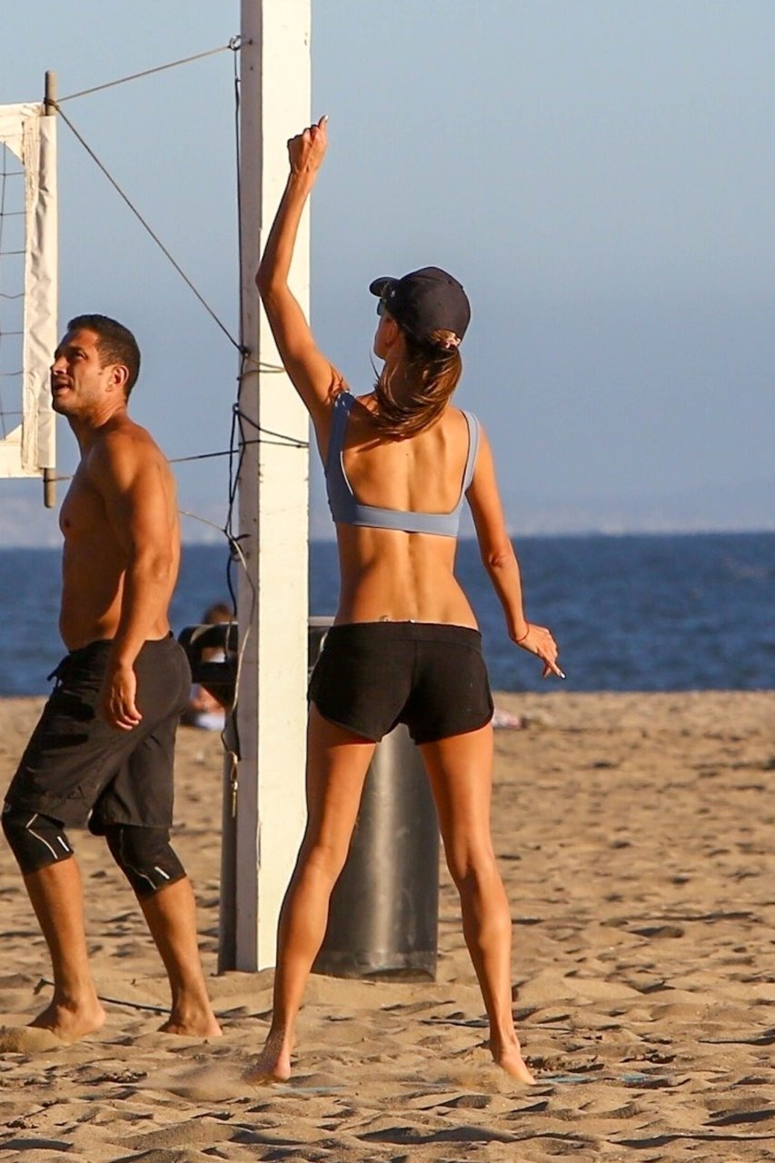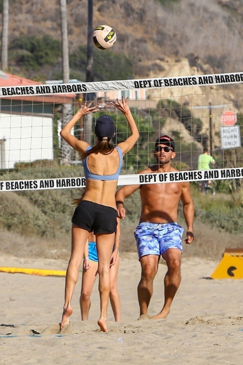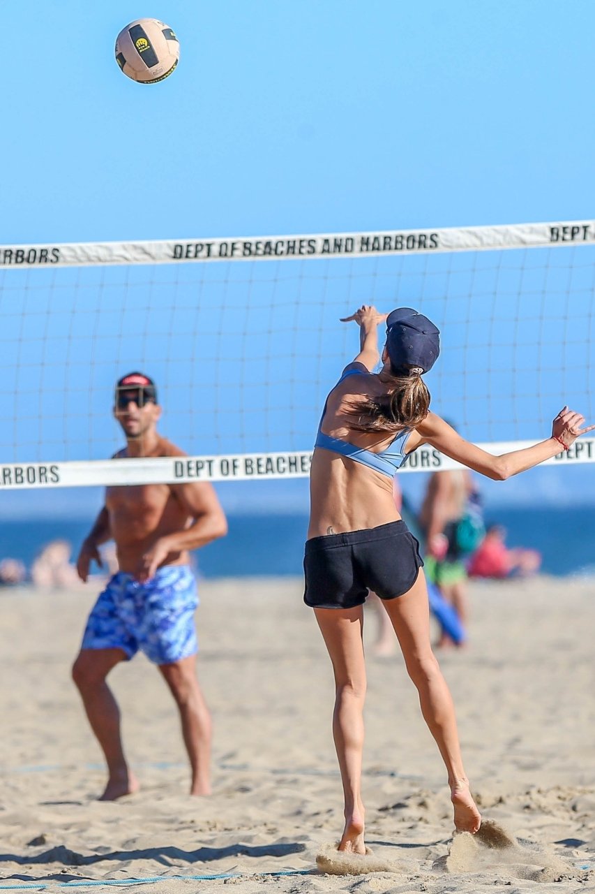 Model Alessandra Ambrosio con sus amigos estaban jugando voleibol en la playa el sábado por la tarde en Santa Mónica, 16/09/2018. La modelo opta por shorts deportivos con su top de bikini cuando llega el momento de jugar voleibol en serio.