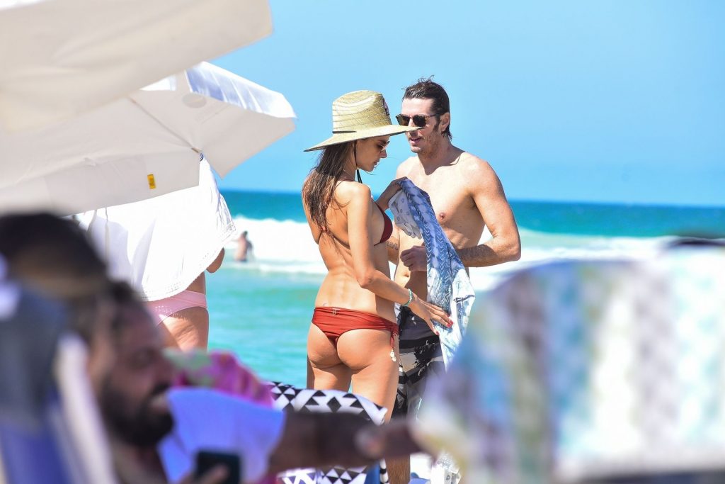 La impresionante modelo Alessandra Ambrosio va a la playa con su novio Nicolo Oddi en Florianópolis, en el sur de Brasil, 27/12/2019.