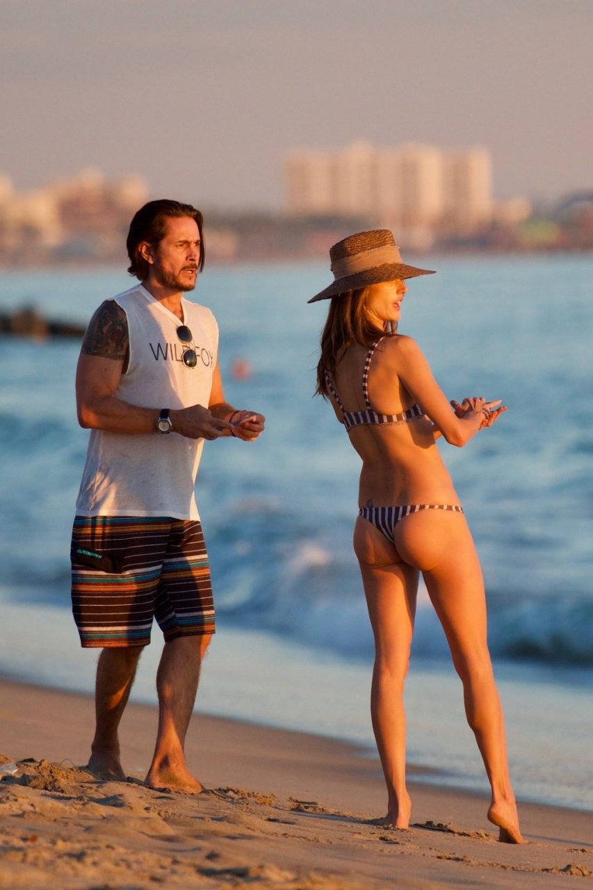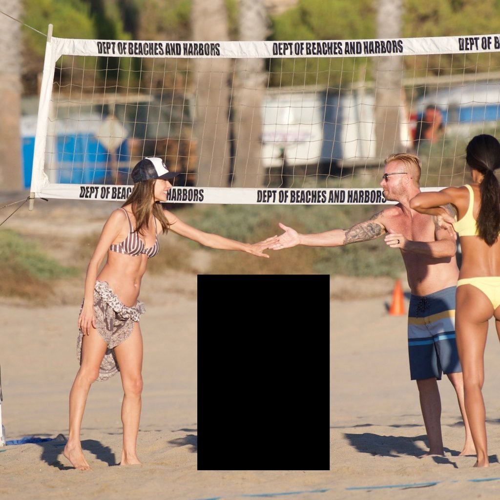 Alessandra Ambrosio de piernas largas disfruta del sol durante un día con su novio y amigos en la playa de Santa Mónica (2018). La supermodelo de Victoria’s Secret de 37 años presume su físico mientras juega voleibol y su pareja toma algunas fotos sensuales durante el atardecer.