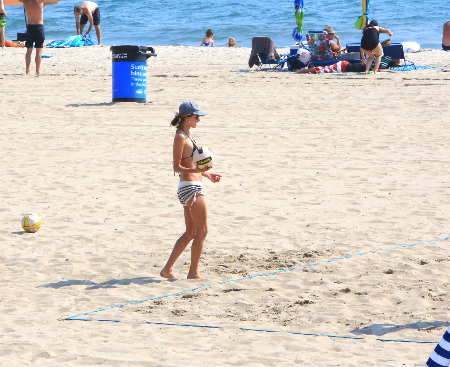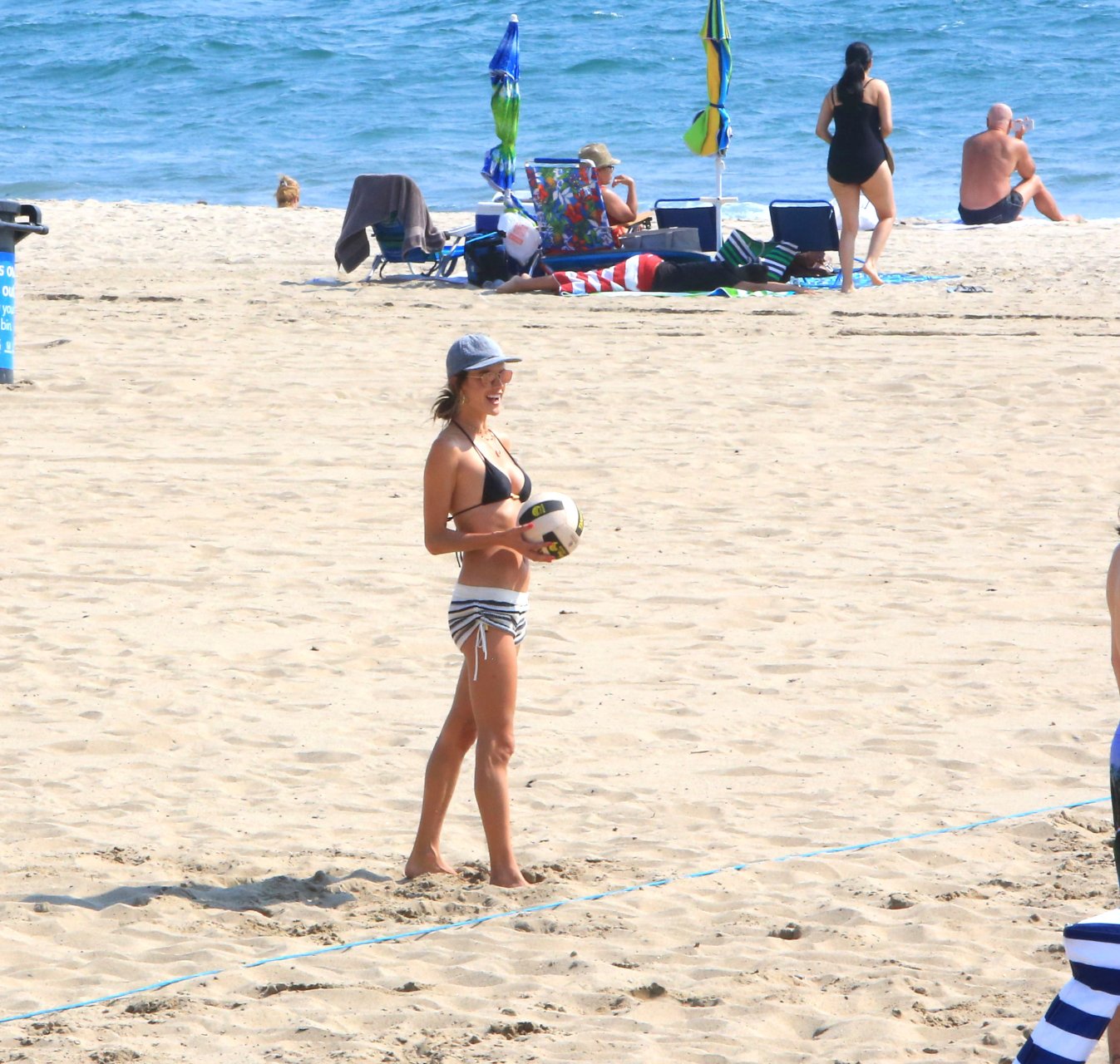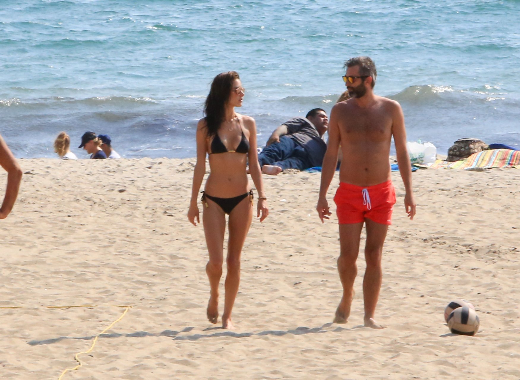 La supermodelo Alessandra Ambrosio disfruta del día en un diminuto bikini negro con sus amigas después de ser vista con su nuevo novio Nicolo Oddi en la playa de Los Ángeles, 11/08/2018.