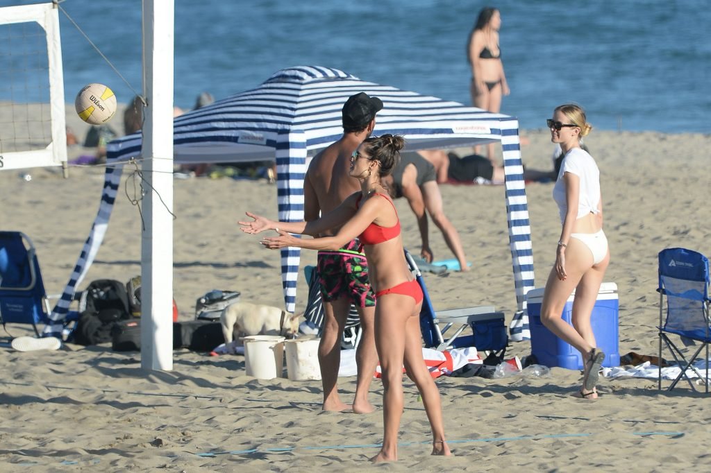 Alessandra Ambrosio aparece en fotos mientras juega voleibol de playa con amigos en Los Ángeles, 22/07/2018.