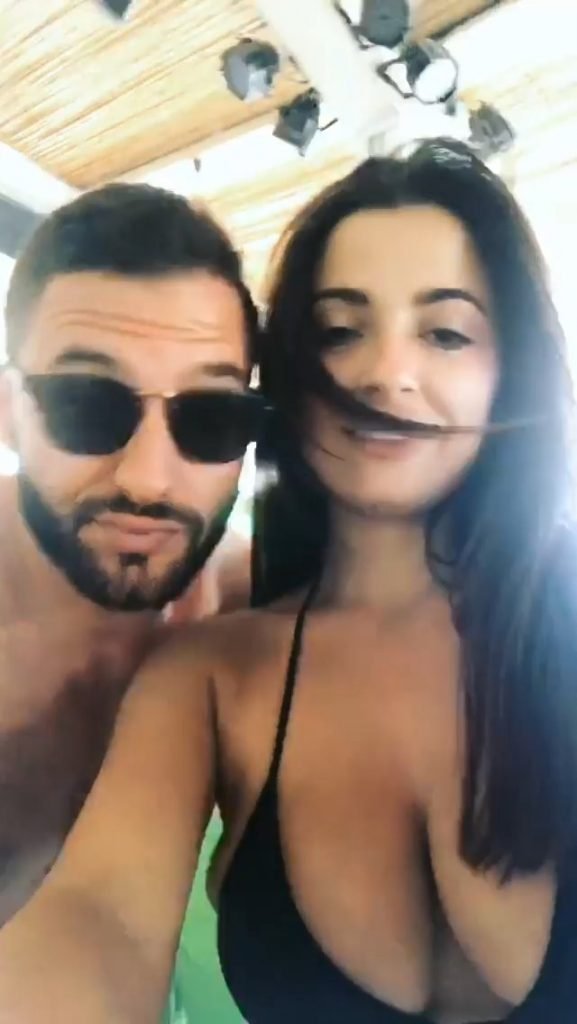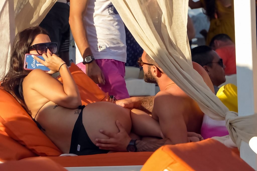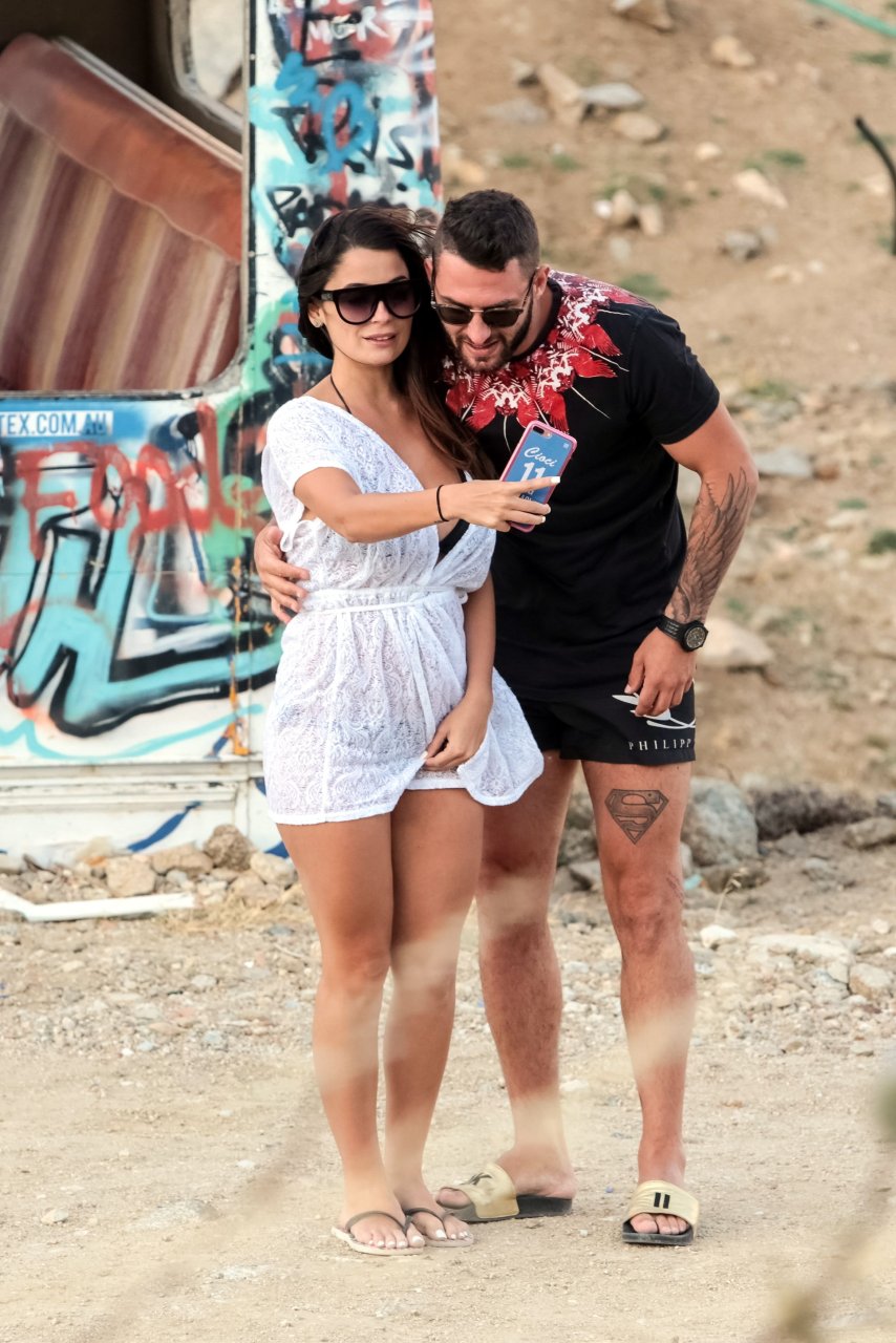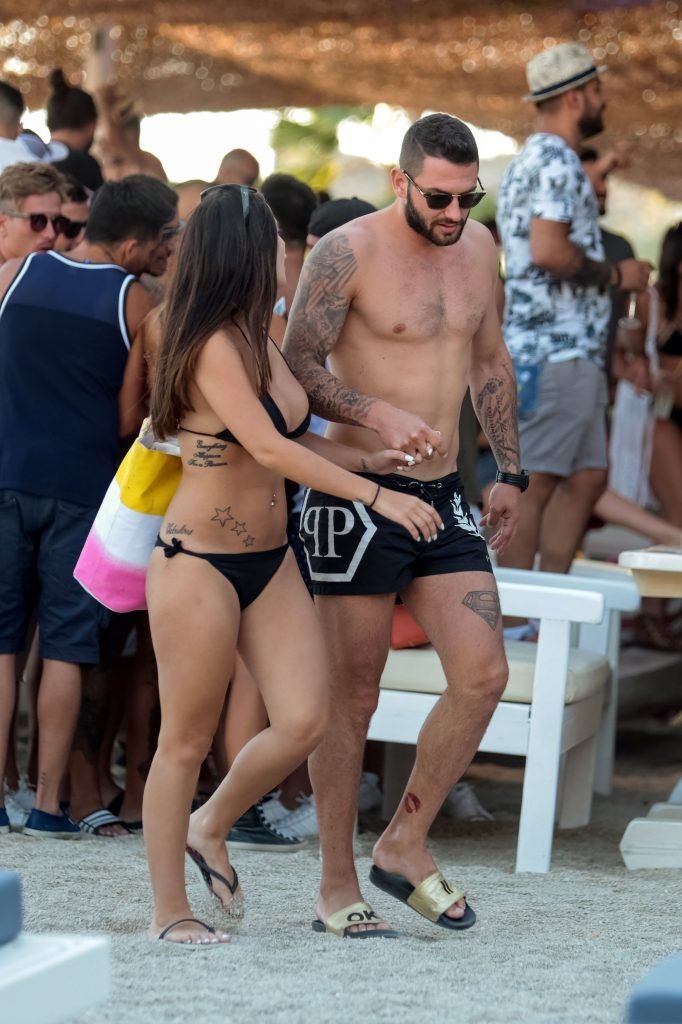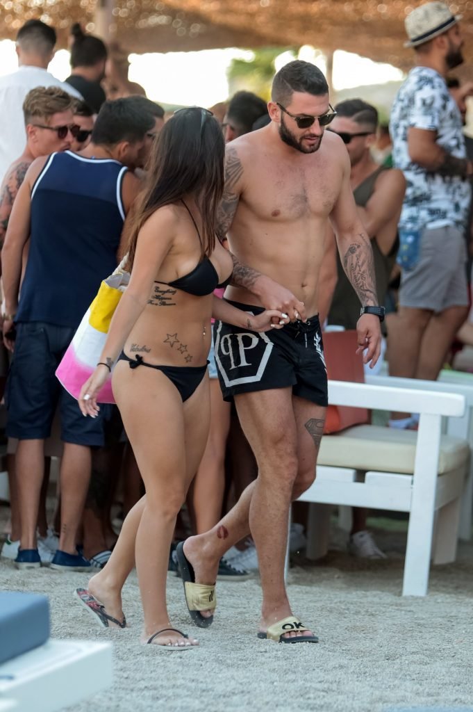 Alessia Macari vista divirtiéndose con Oliver Kragl en la playa de la isla de Mykonos, 07/08/2017. Alessia Macari es una modelo, cantante y estrella de televisión italo-irlandesa. Edad: 23.