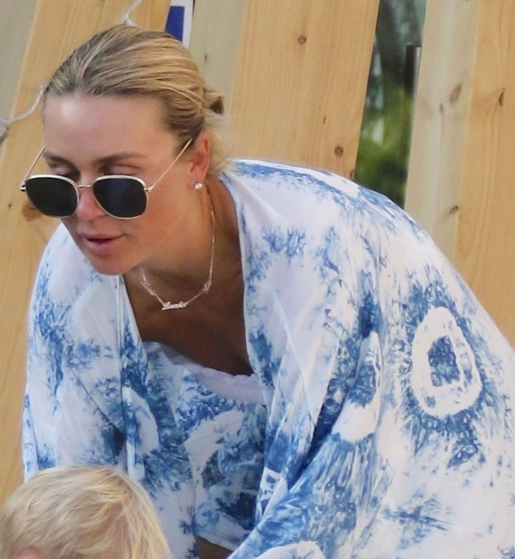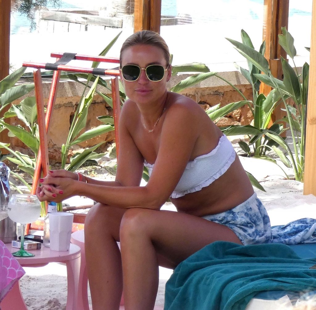 La esposa de Steven Gerrard, Alex Gerrard, se toma un descanso en sus vacaciones bajo el sol español en Ibiza, 28/07/2020.