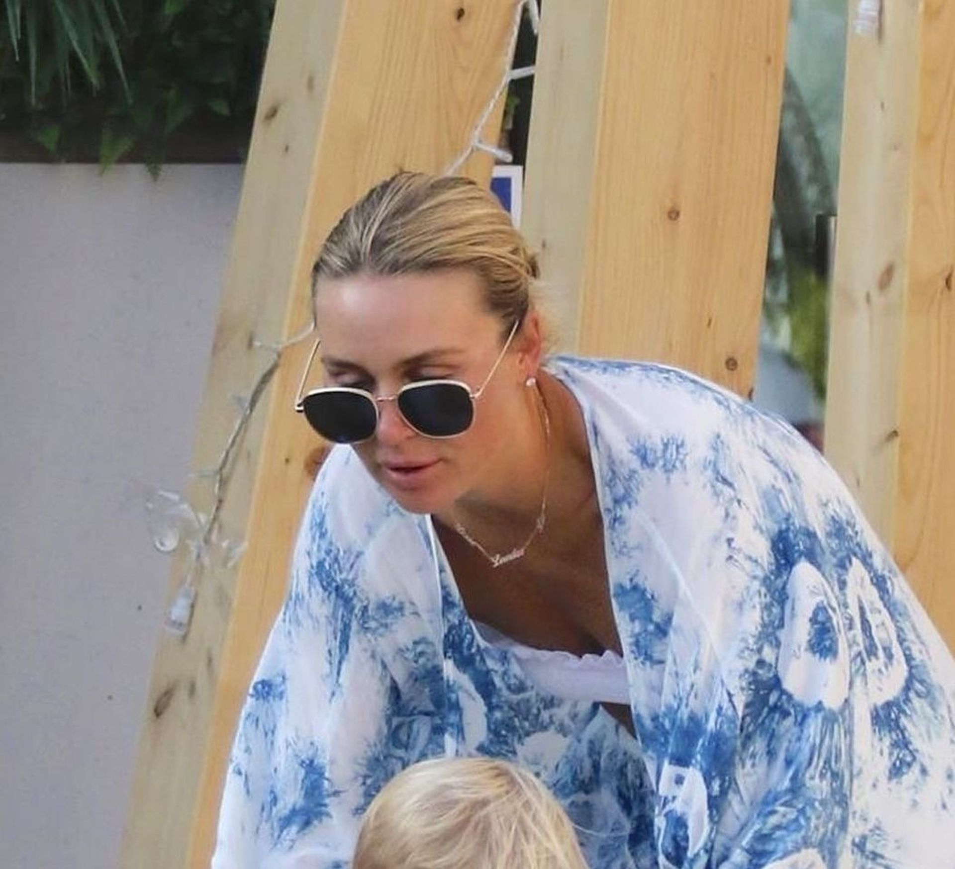 La esposa de Steven Gerrard, Alex Gerrard, se toma un descanso en sus vacaciones bajo el sol español en Ibiza, 28/07/2020.