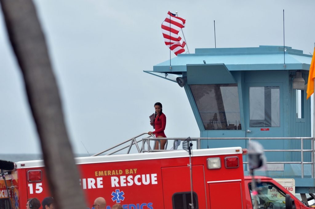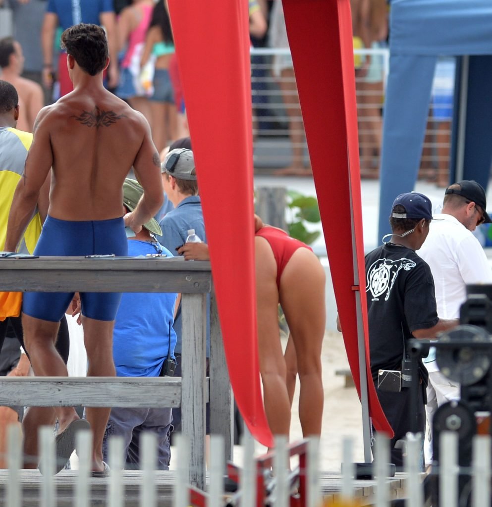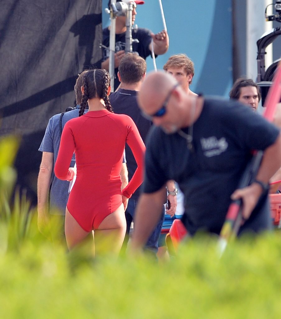 Alexandra Daddario, Ilfenesh Hadera y Kelly Rohrbach en la playa filmando una escena para ‘Baywatch’, 08/03/2016 + otro video BTS.
