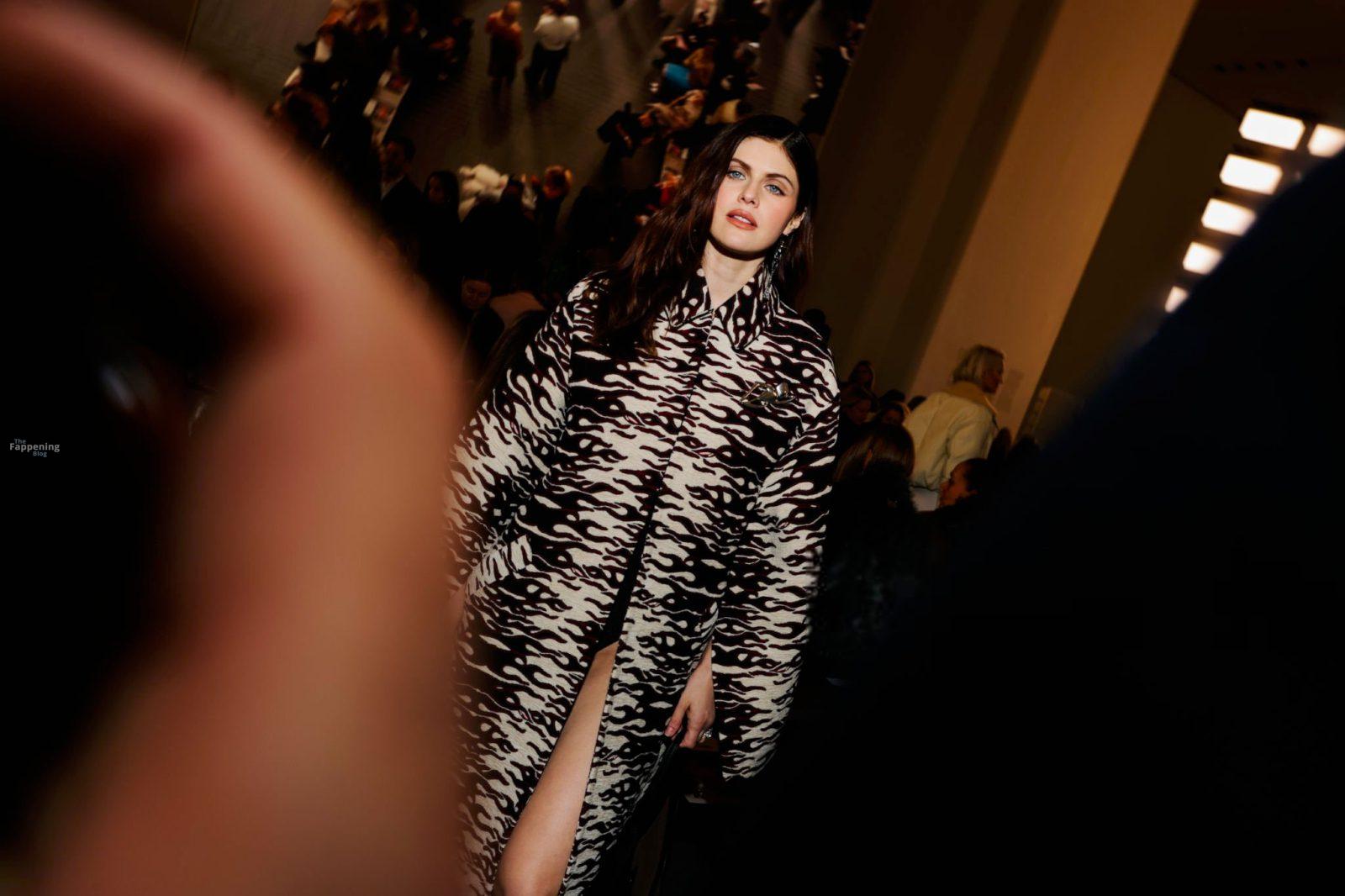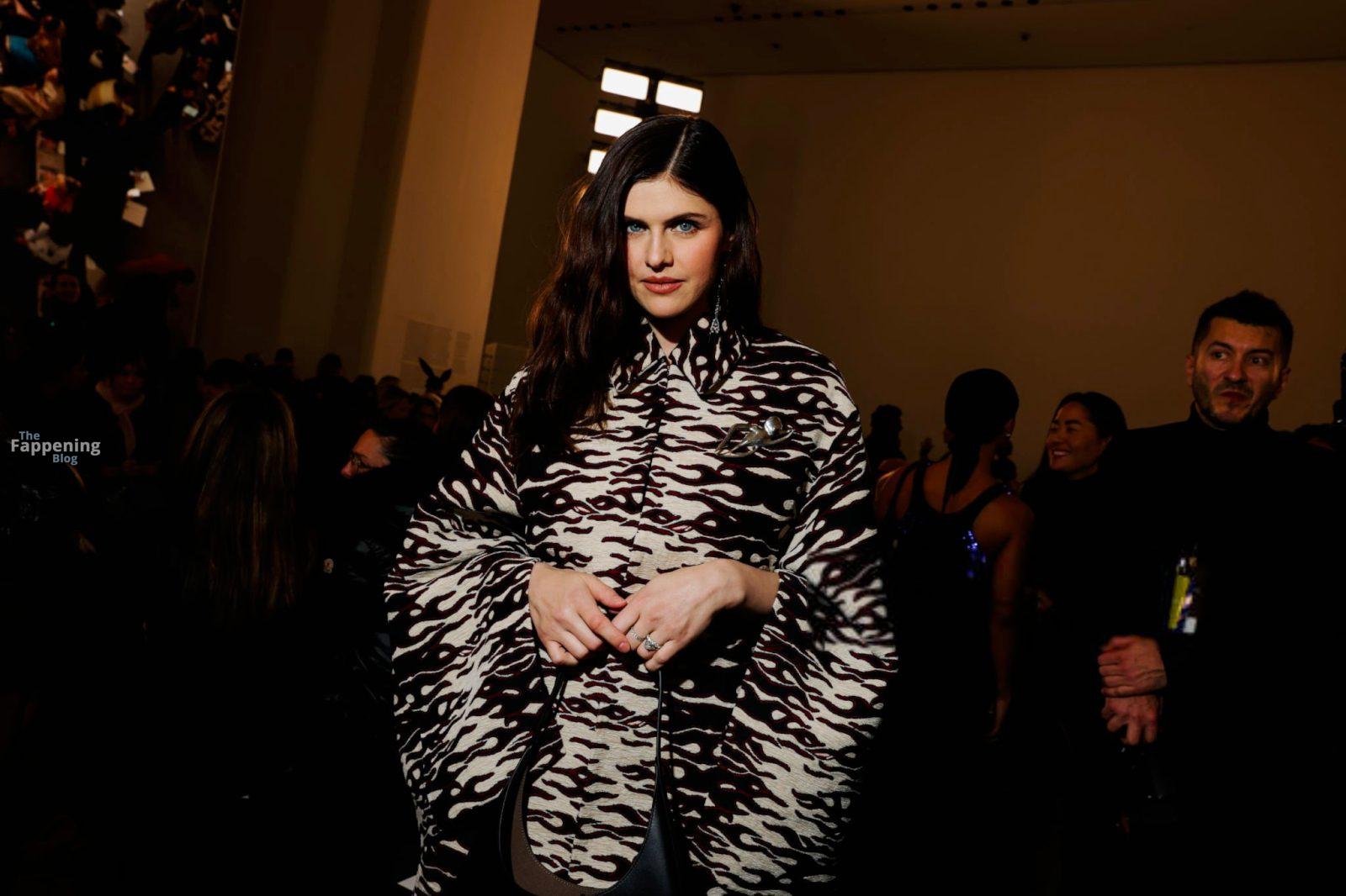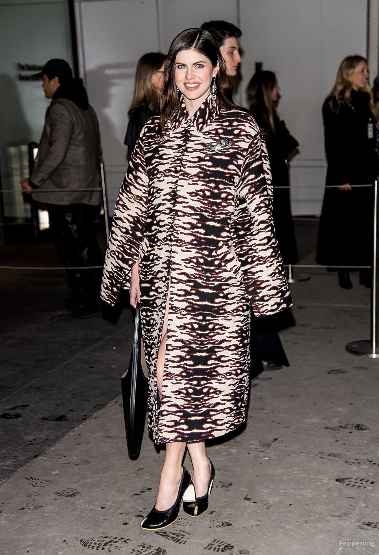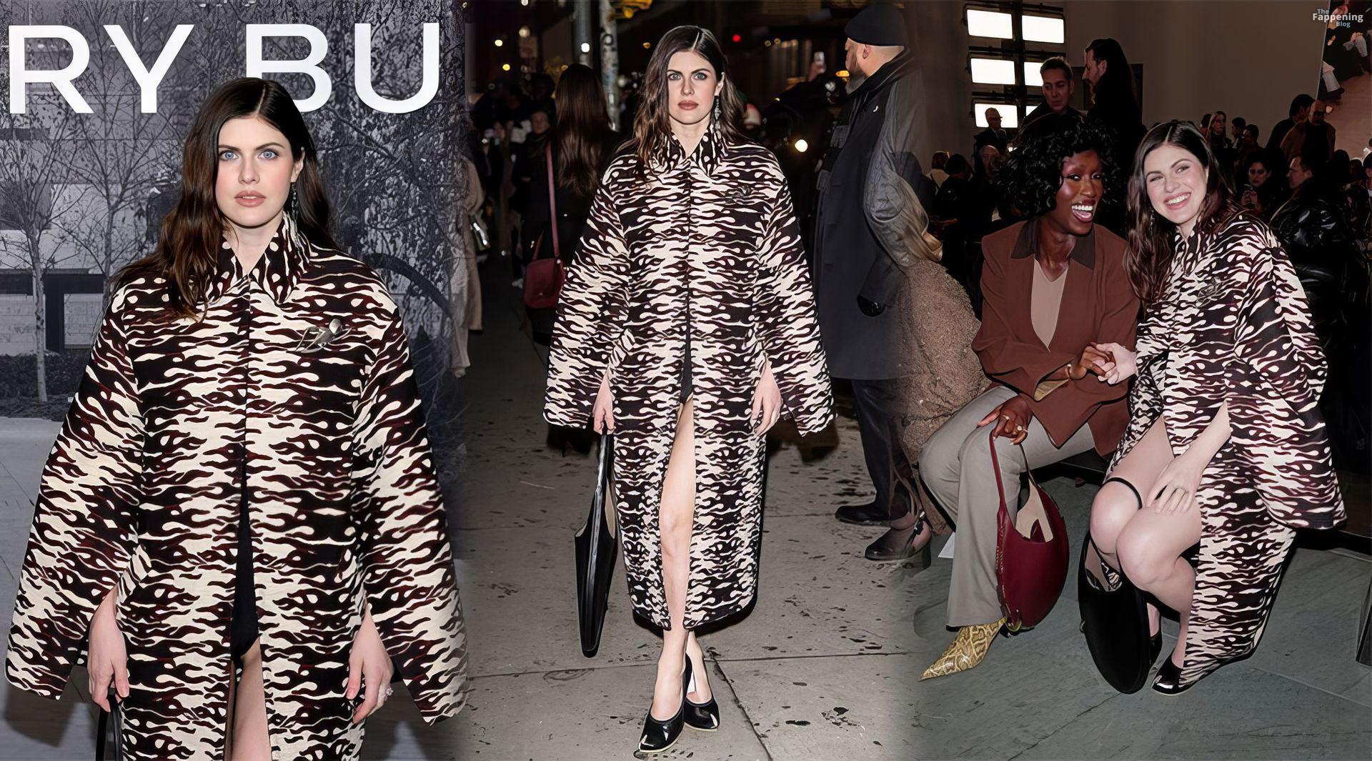 En primer lugar, es un atuendo que parece tonto. En segundo lugar, creo que Alexandra Daddario es sexy, pero lo que la hace sexy son sus pechos. Esta chaqueta/vestido/cosa los cubre, así que, por definición, no es sexy.