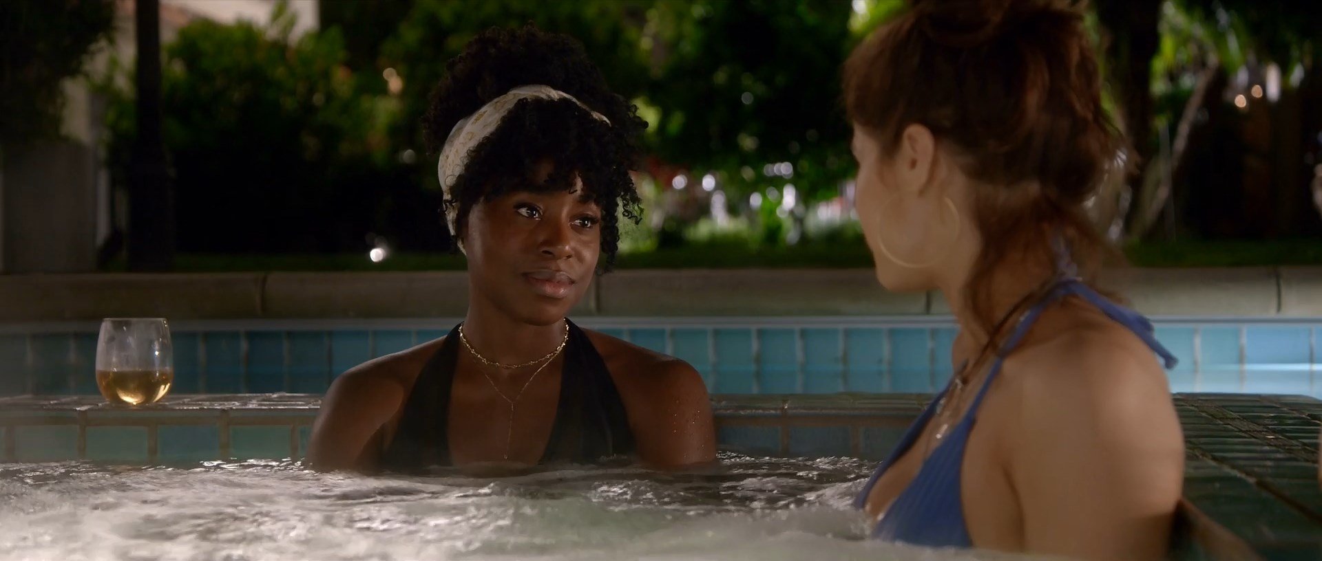 Mira otra escena caliente no desnuda de Alexandra Daddario en “Why Women Kill” (2019) Temporada 1 Episodio 2 (s01e02), donde puedes verla (como Jade) sentada en un jacuzzi con Kirby Howell-Baptiste (como Taylor Harding). Alexandra muestra escote con su bikini azul. Alex y Kirby casi se besan, interrumpidas por un hombre que se une a ellas en la bañera. ¡Oh, habrían hecho una buena escena interracial de sexo!