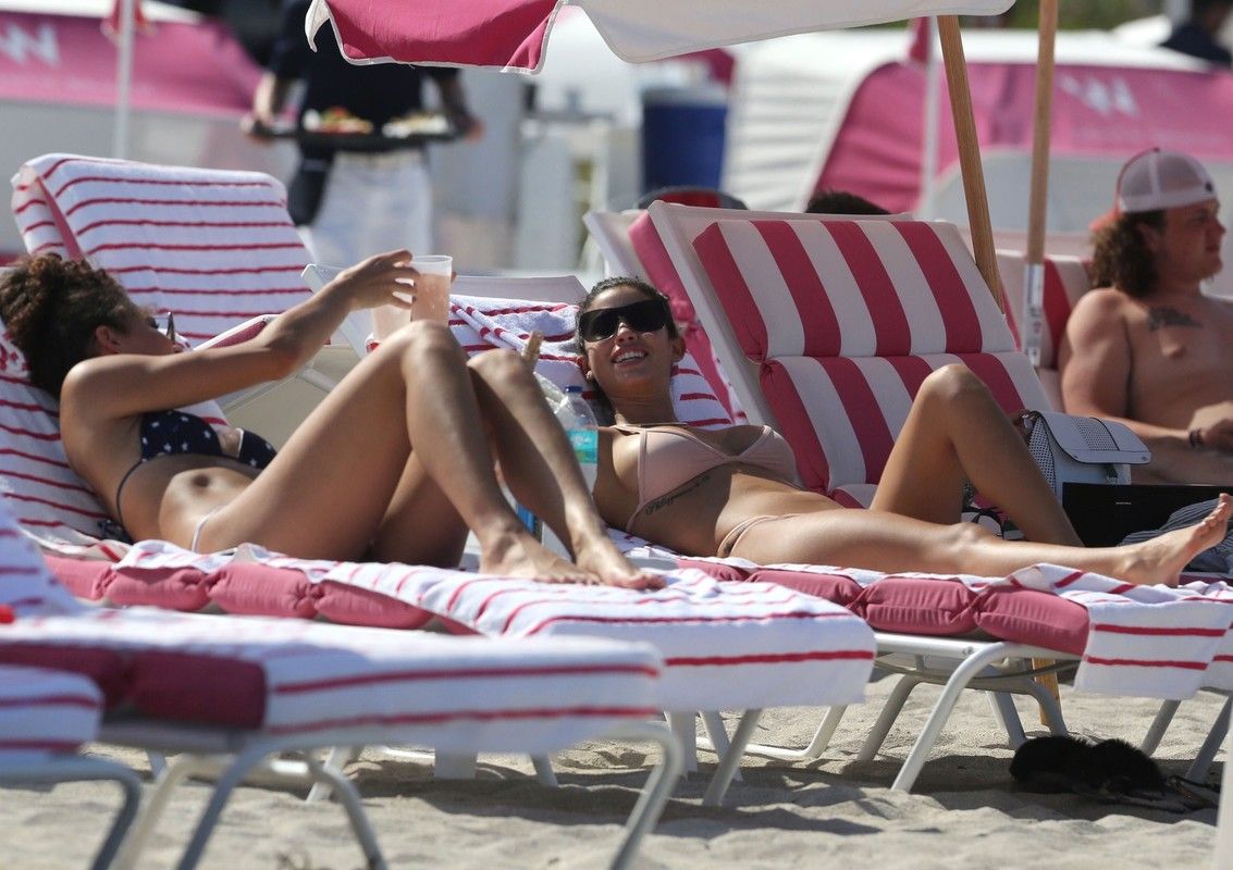 Alexandra Michelle muestra su cuerpo en bikini en la playa de Miami, 30/05/2017. Alexandra Michelle es modelo, ex de Justin Bieber. Edad: 20.