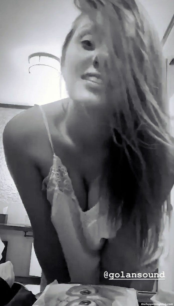 Alright, guys, so here is a clip of miss Alexandra Stan! She shared this clip of her singing! But, even though that she was naked, she thought no one would notice because she was filming only her face! Luckily for us, she seemed to forget it, so we had a brief viewing of her tits and hard nipples! She also noticed it soon, and she took the video down, but we managed to get it saved by then!