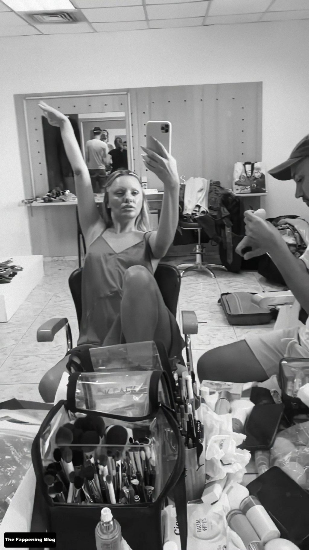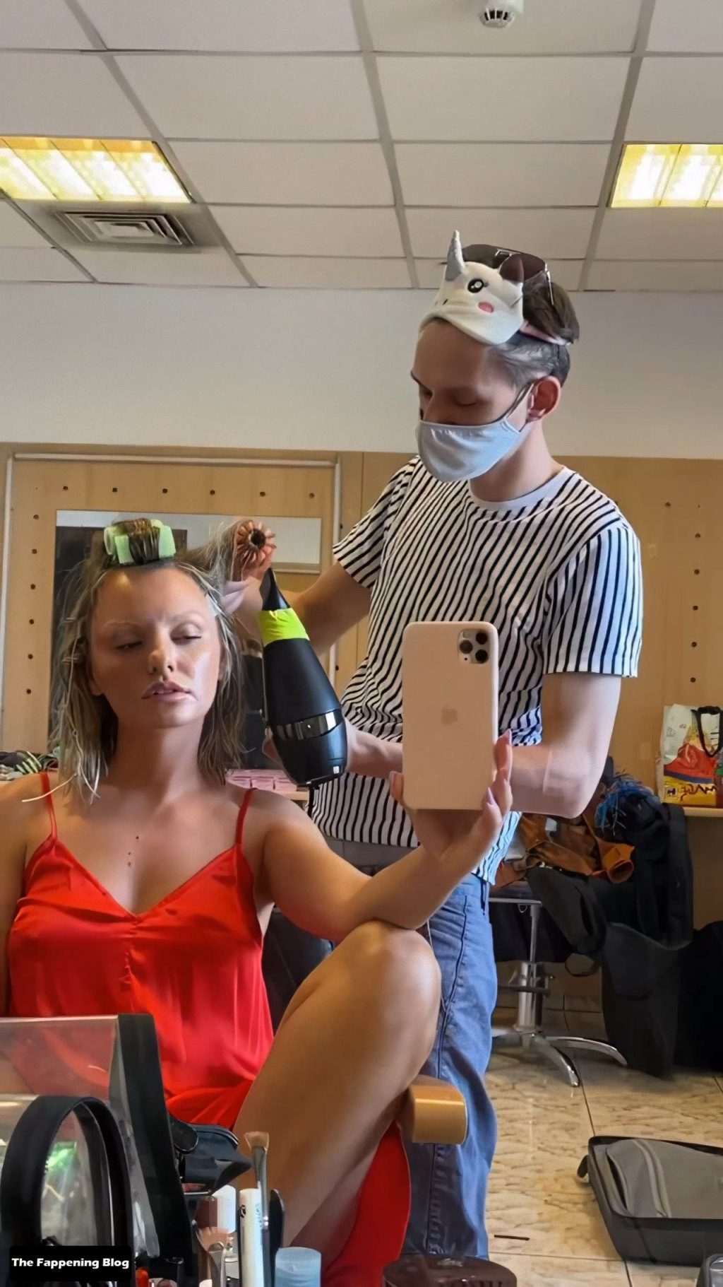 Alexandra Stan se está preparando para una sesión de fotos y muestra sus pechos desnudos.
