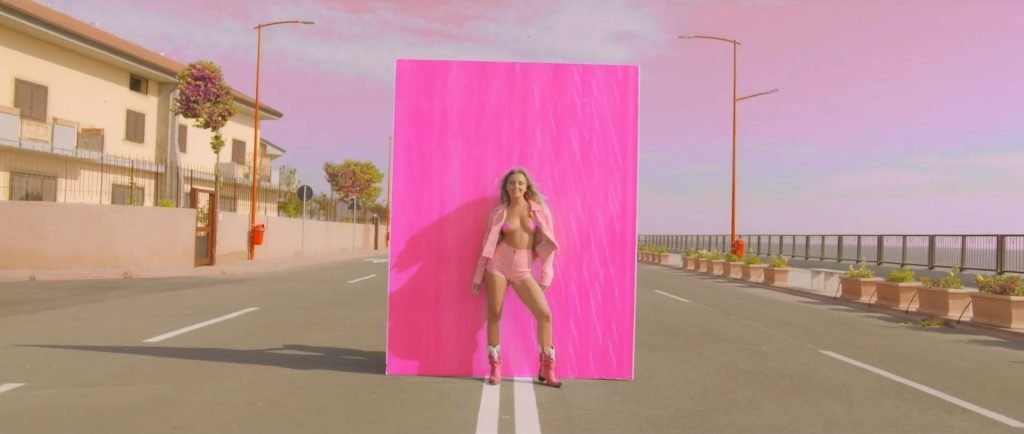 Alexandra Stan presenta su nuevo video musical “I Think I Love It” (julio de 2019). La cantante rumana de 30 años mostró su sexy trasero con atuendos rosas y verdes y sus pechos cubiertos con pasties.