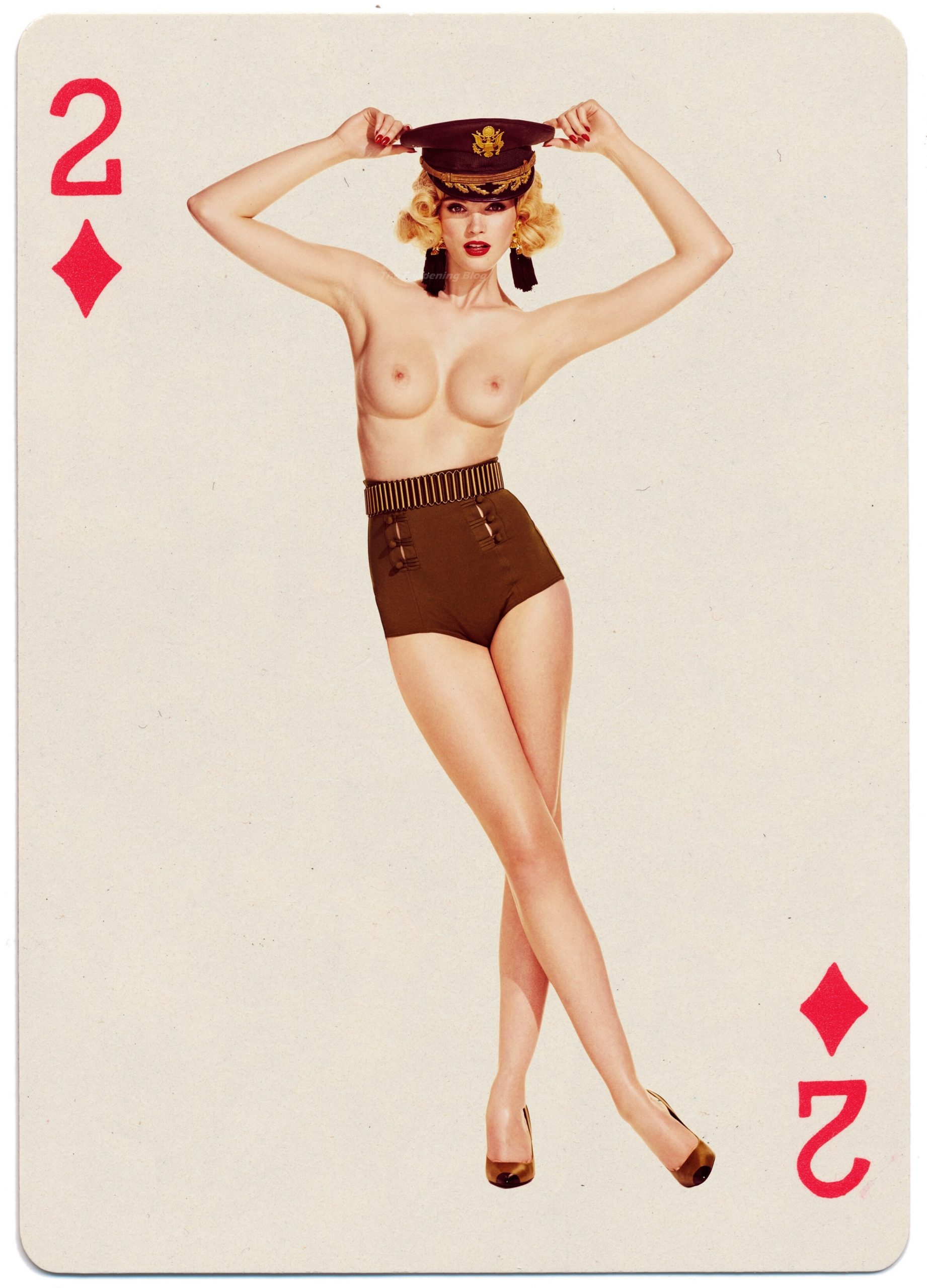 La modelo Alexina Graham posa topless y con un body transparente, mostrando sus pechos desnudos en una sesión de fotos llamada “Reina de Corazones” por Marian Sell. ¡Estas cartas podrían usarse para un juego de póker con The Fappening Stars!