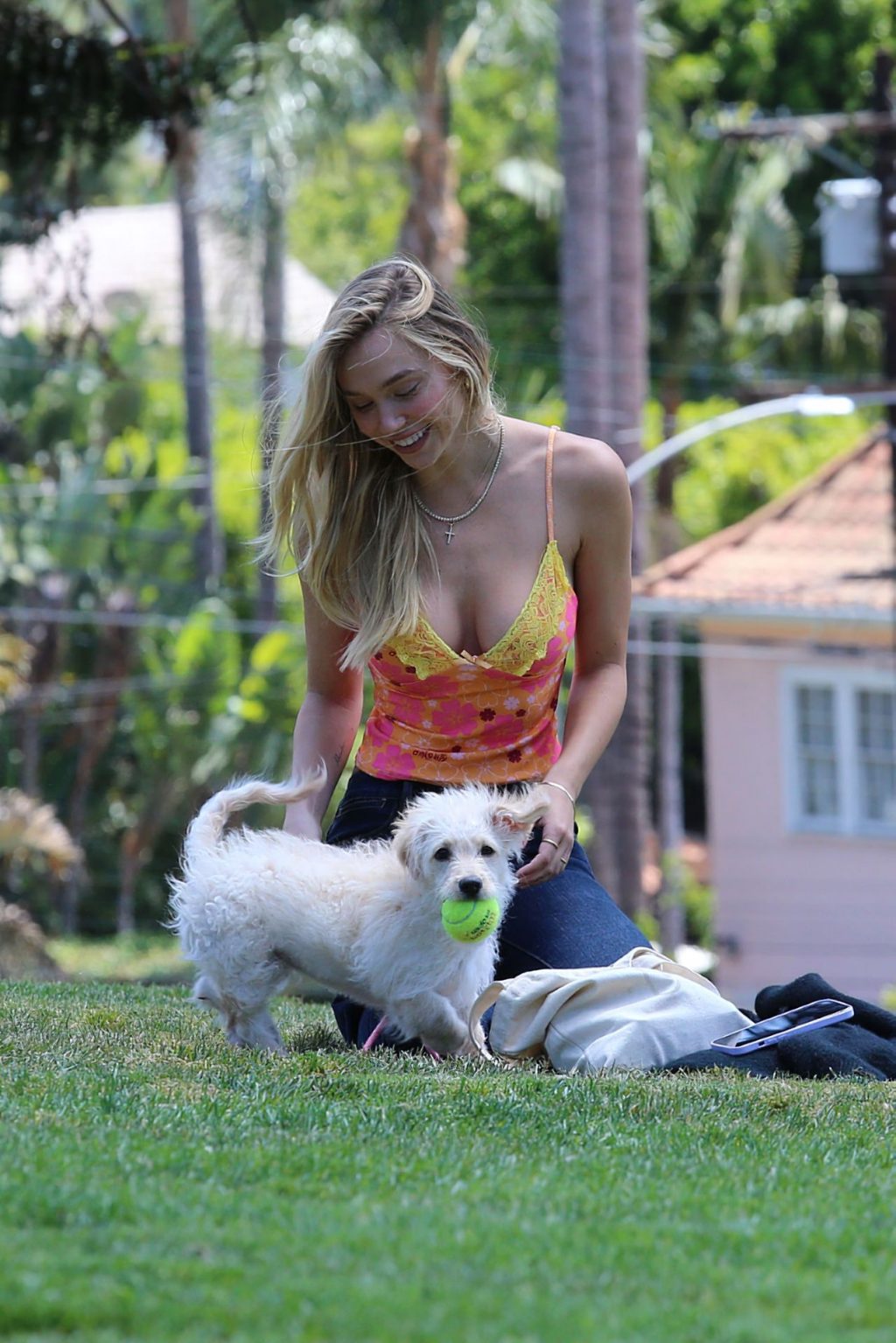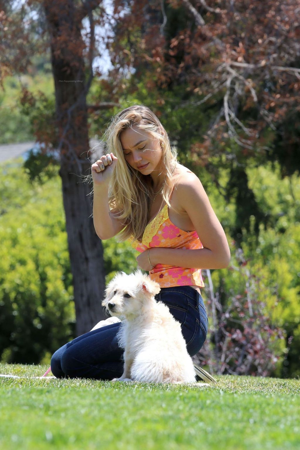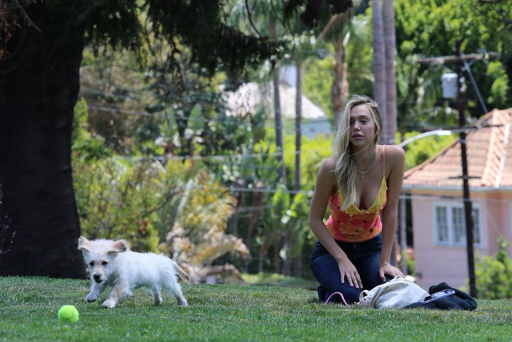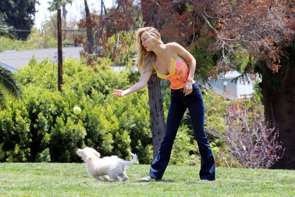 Alexis Ren se ve pasando un buen rato con su cachorro Angel en un parque local, 28/04/2021.