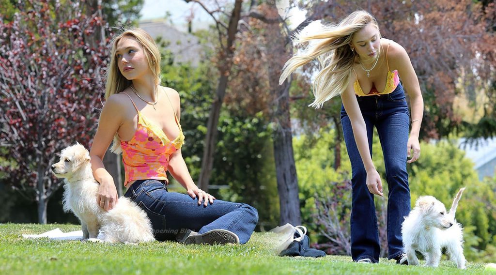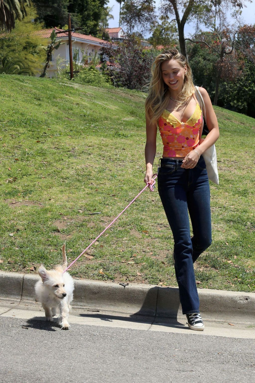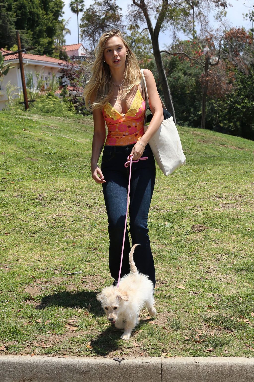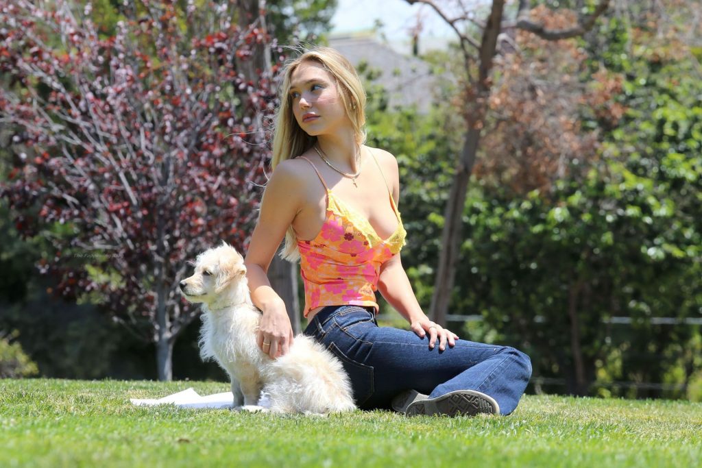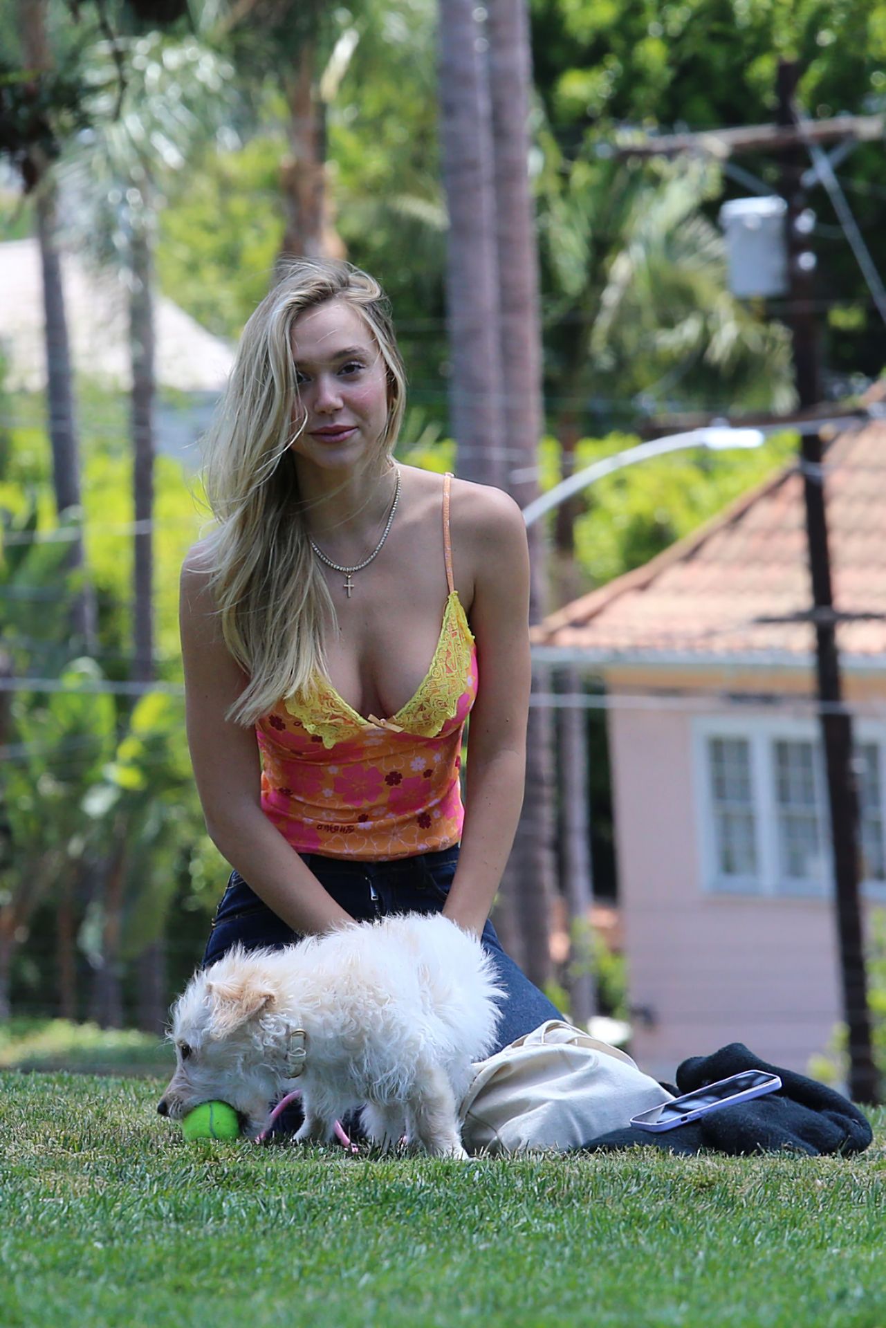 Alexis Ren se ve pasando un buen rato con su cachorro Angel en un parque local, 28/04/2021.