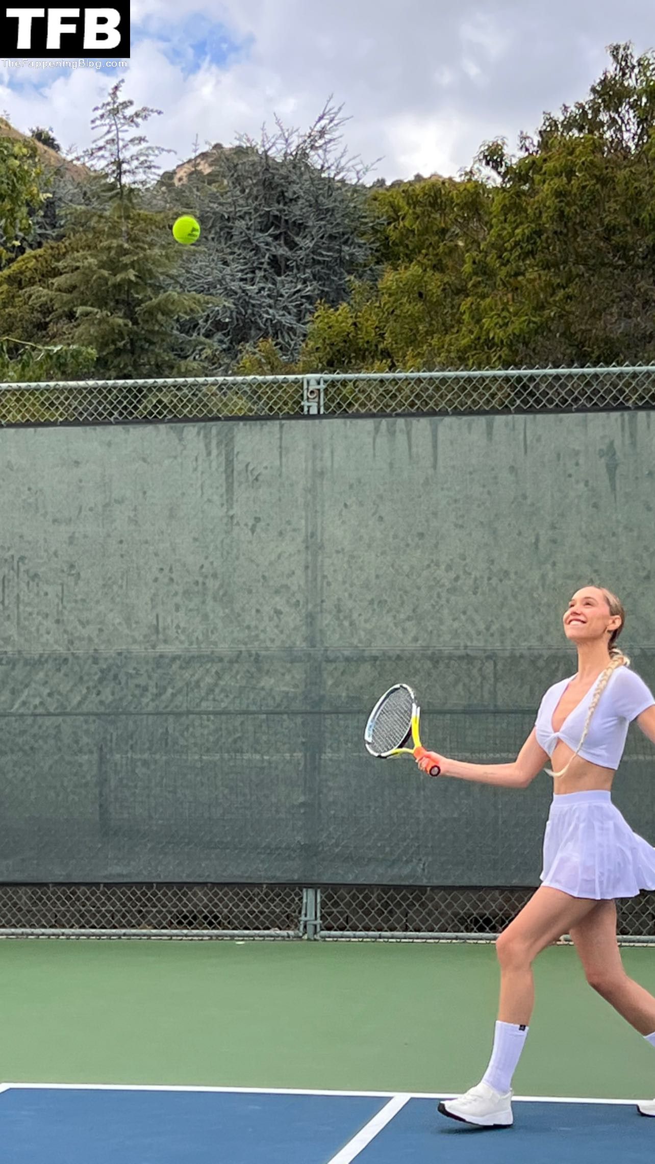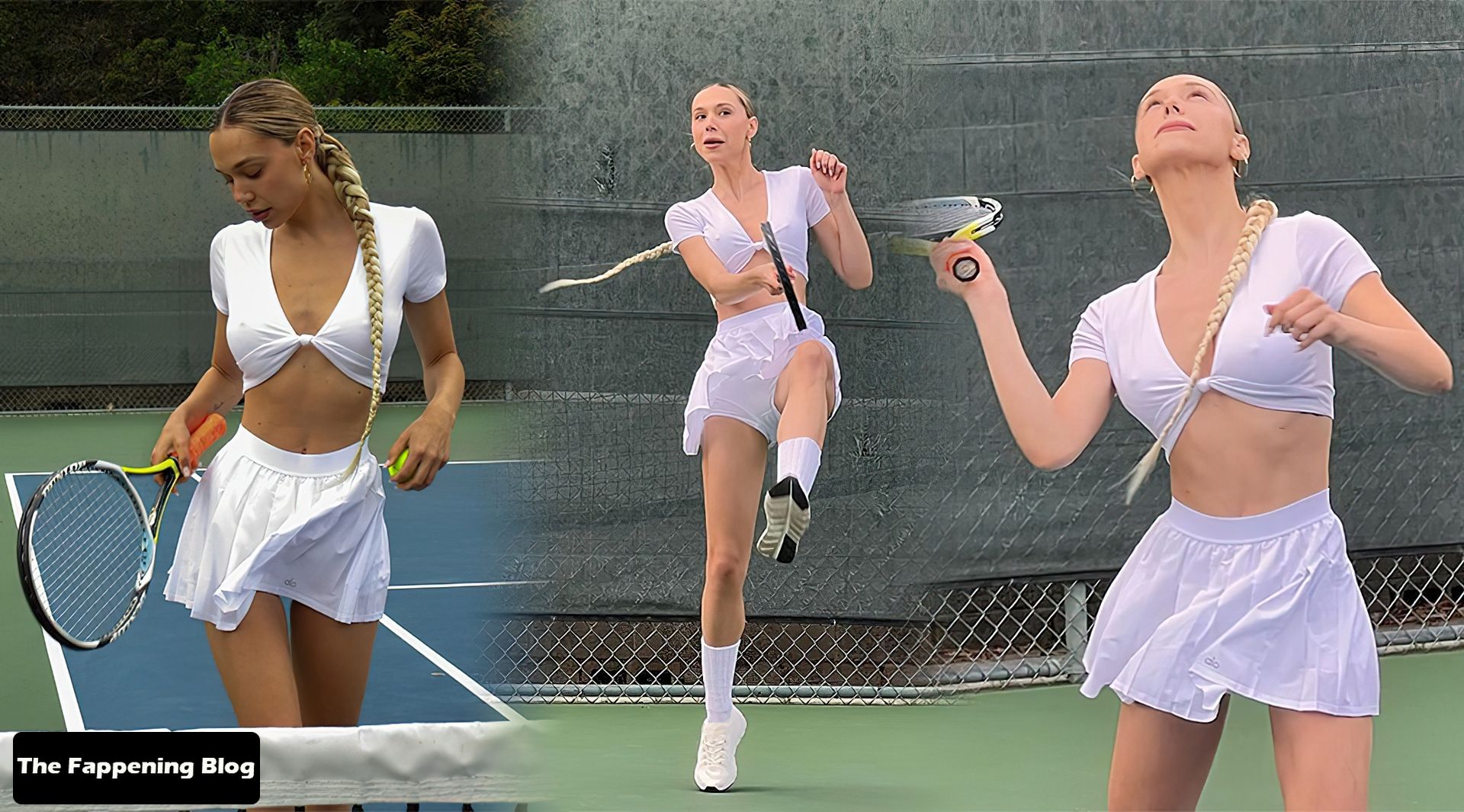 Alexis Ren posa sin sostén, mostrando sus pechos y cameltoe en una nueva sesión de fotos para alo en una cancha de tenis – Instagram (abril de 2022).