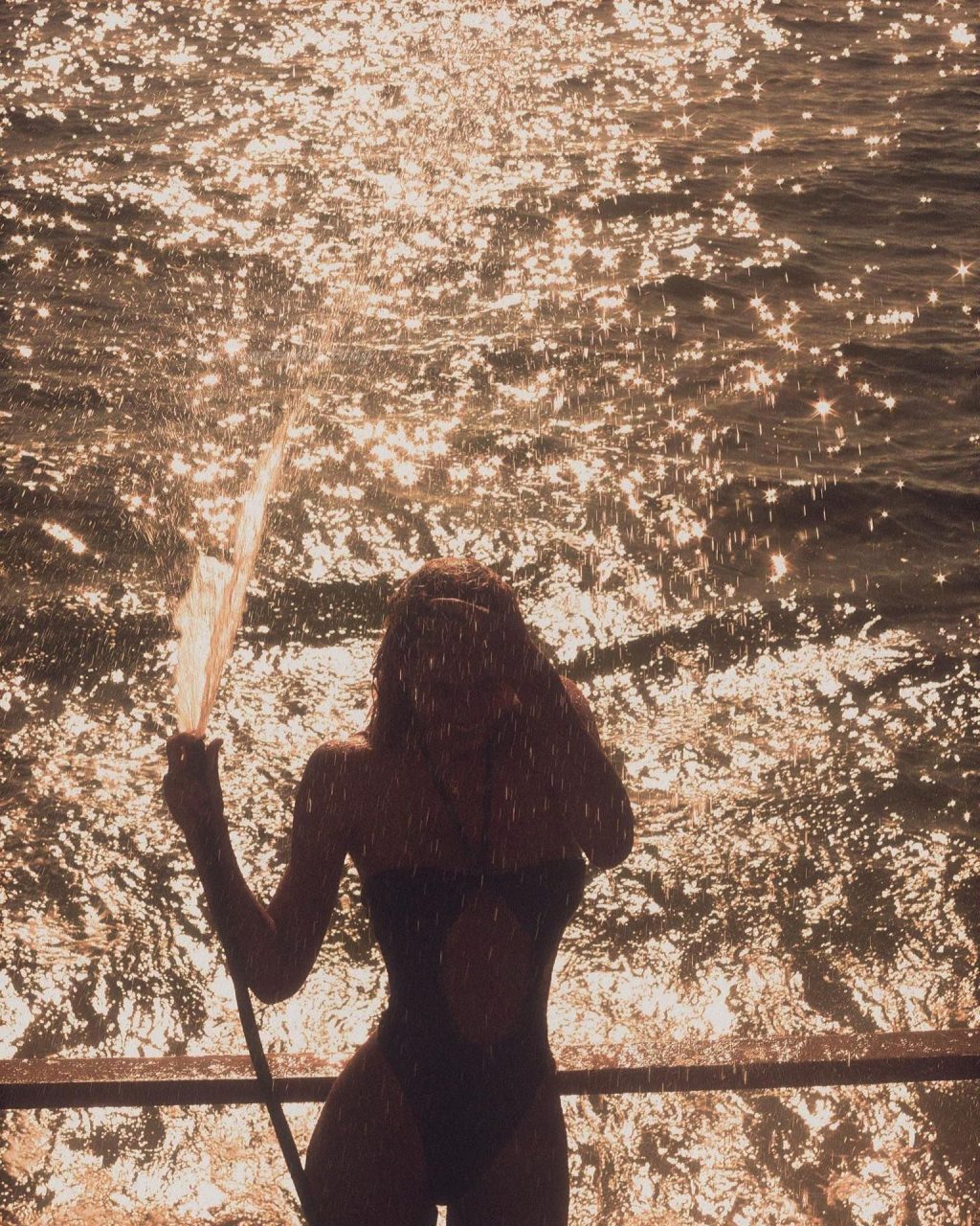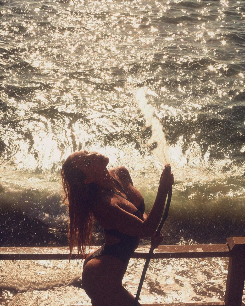 La modelo/bailarina Alexis Ren muestra su apretado trasero y sus bonitos pechos posando con un traje de baño tanga para la sesión de fotos de Melissa Cartagena en St. Barths (2021).